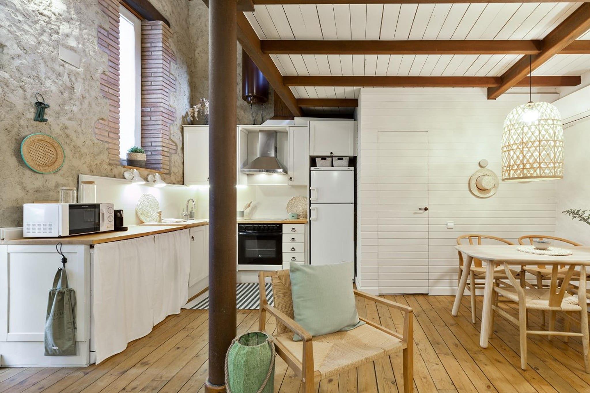 Første etasje: (Inngang(tilgjengelig fra utsiden), åpent kjøkken(komfyr med kokeplater, vannkoker, brødrister, kjøkkenvifte, kaffetrakter, stekovn, mikrobølgeovn, oppvaskmaskin, kjøleskap med fryser), Stue/spisestue(dobbel sovesofa, TV(flatskjerm), spisebord, sittehjørne), bad(dusj, håndvask, toalett), klimaanlegg, terrasse(privat), ) i 2. etasje: (soveværelse(dobbeltseng), klimaanlegg, ) vaskemaskin, strykebrett, strykejern