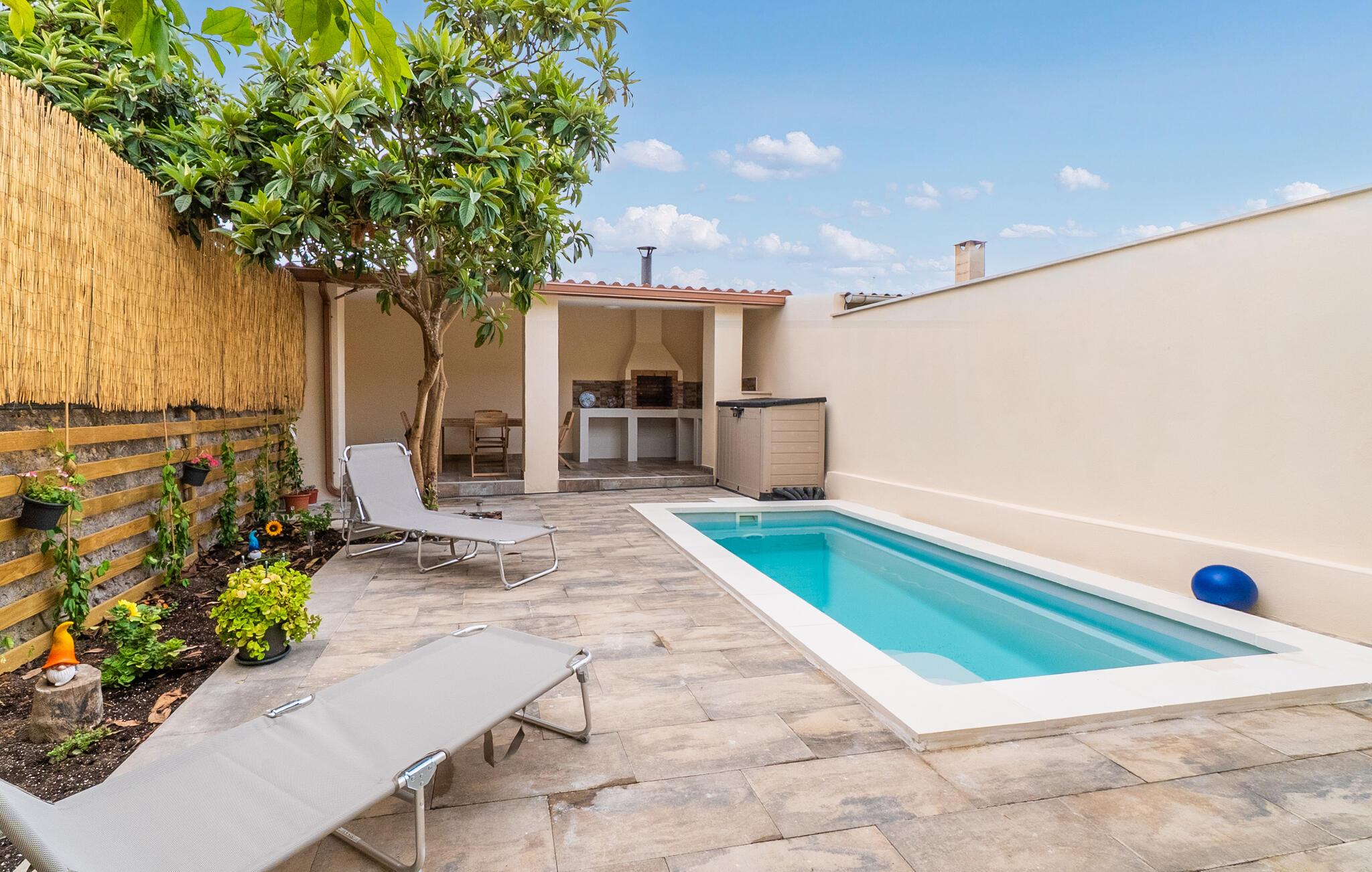 Nyt solen utendørs, bassenget byr på behagelige forfriskninger på varme dager, og om kvelden kan du samle hele familien til et deilig måltid på terrassen.