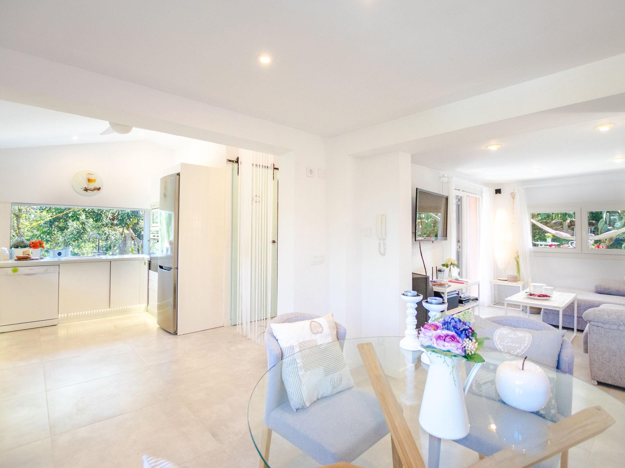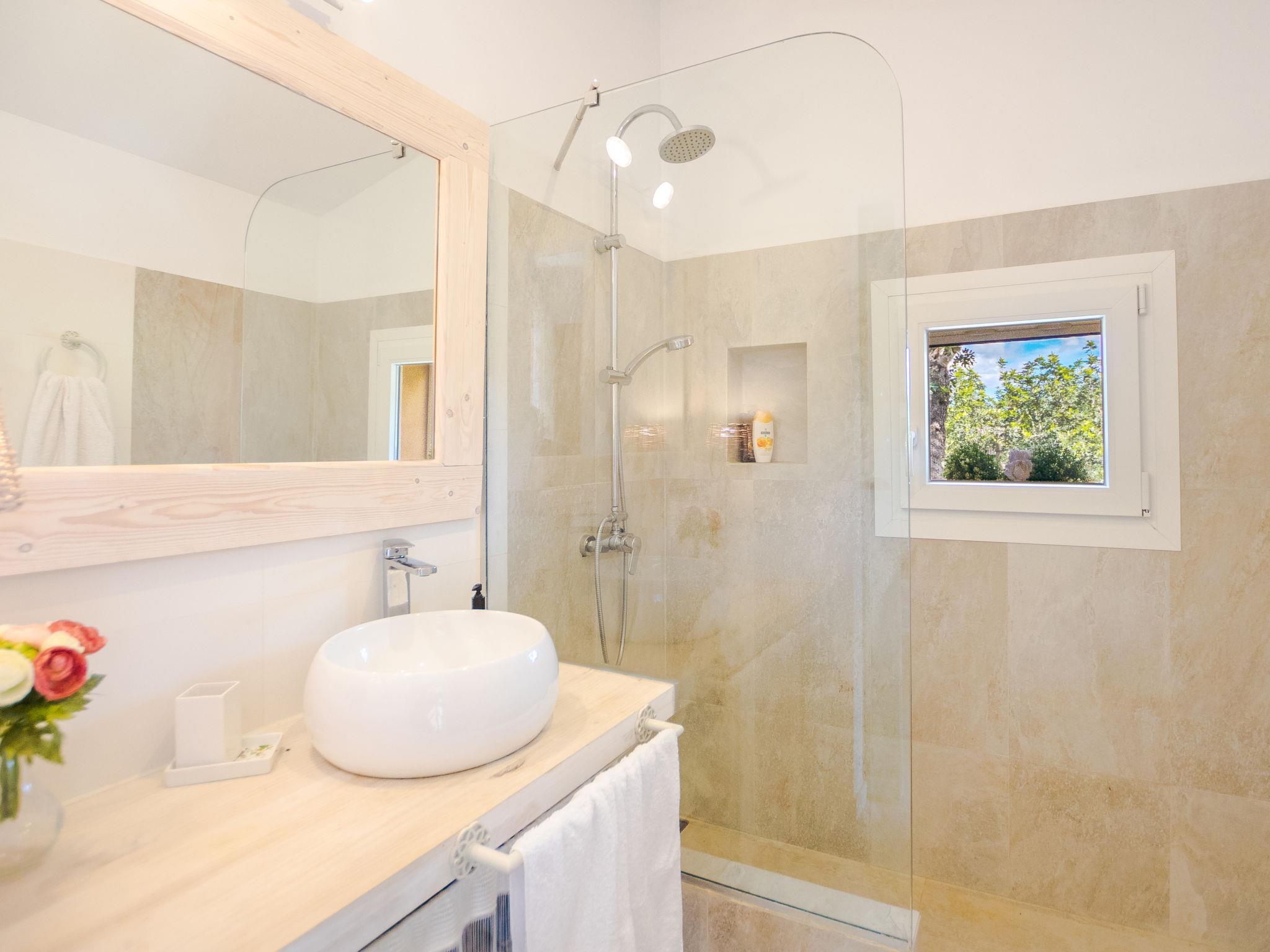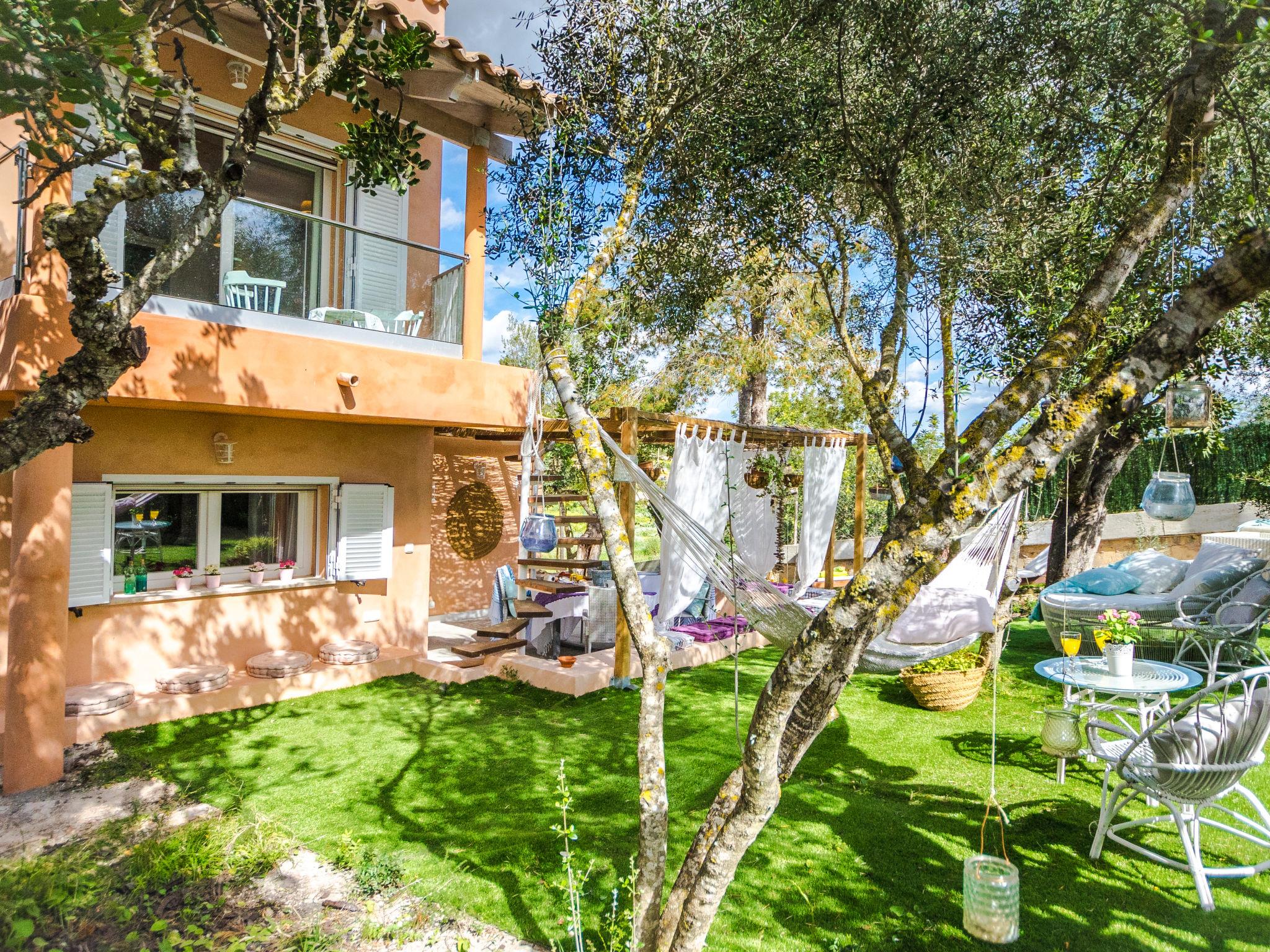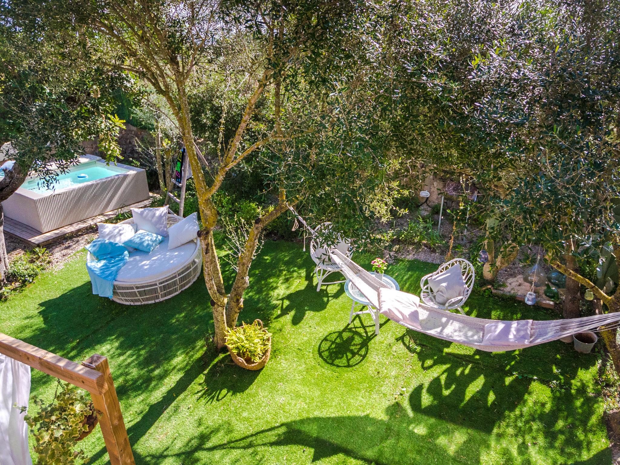 Villafranca de Bonany: Very beautiful, comfortable farm estate "Can Marc", 2 storeys, renovated in 2018, surrounded by meadows. Outside the resort, 950 m from the centre of Villafranca, in a quiet position on top of a hill, 24 km from the sea, 24 km from the beach, in the woods. Private: natural state property with wildlife garden and trees, beautiful garden to relax. Outdoor shower, hot tub, patio, arbour, garden furniture, barbecue. In the house: internet access, WiFi, storage room for bicycles, washing machine. Steep motor access. Parking at the house on the premises. Shop 950 m, supermarket 980 m, restaurant 900 m, bar 800 m, bakery 800 m, 10 minute walk to the centre, bus stop 900 m, sandy beach "Portocristo" 24 km, rocky beach "Cala Manacor" 24 km. Sports harbour 24 km, marina 24 km, golf course (18 hole) 31 km. Nearby attractions: Cala Magrana, Cala Mendia, Cala Romantic 23 km, Cala Varques 22 km, Manacor Ciudad 9.5 km. Please note: car recommended. Suitable for families, suitable for seniors. Object suitable for 2 adults groups of teenagers on request only. Loading and unloading of baggage is possible at the holiday house. Animals in the neighbourhood. Airfield 37 km from the property.