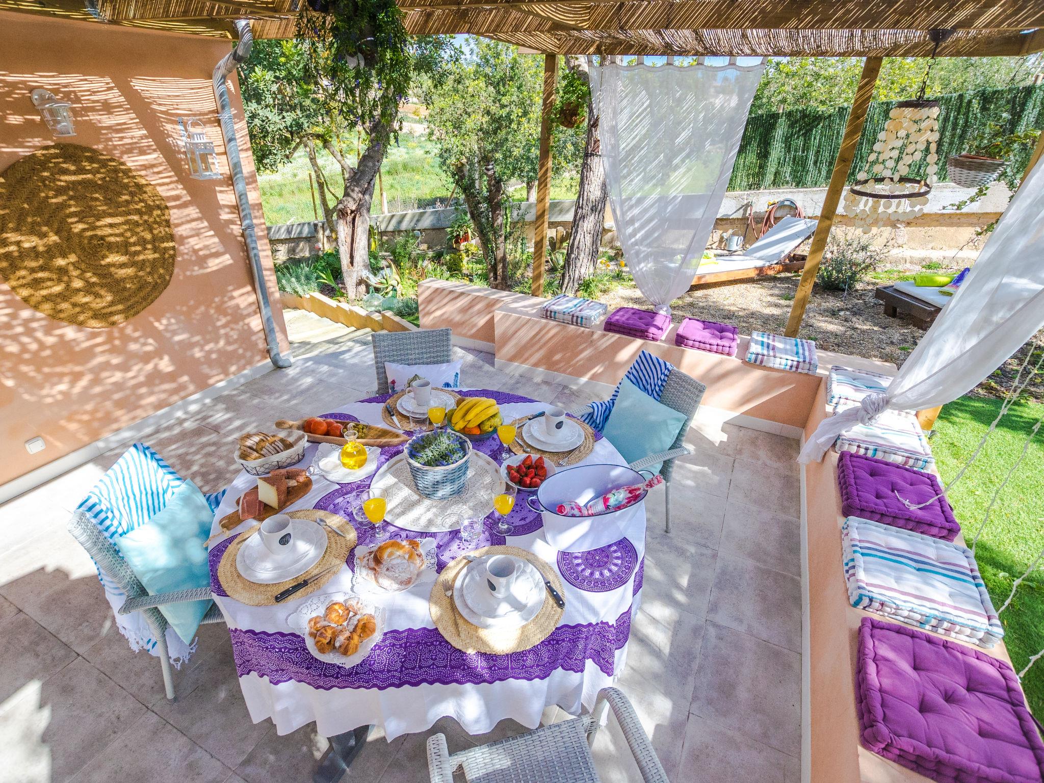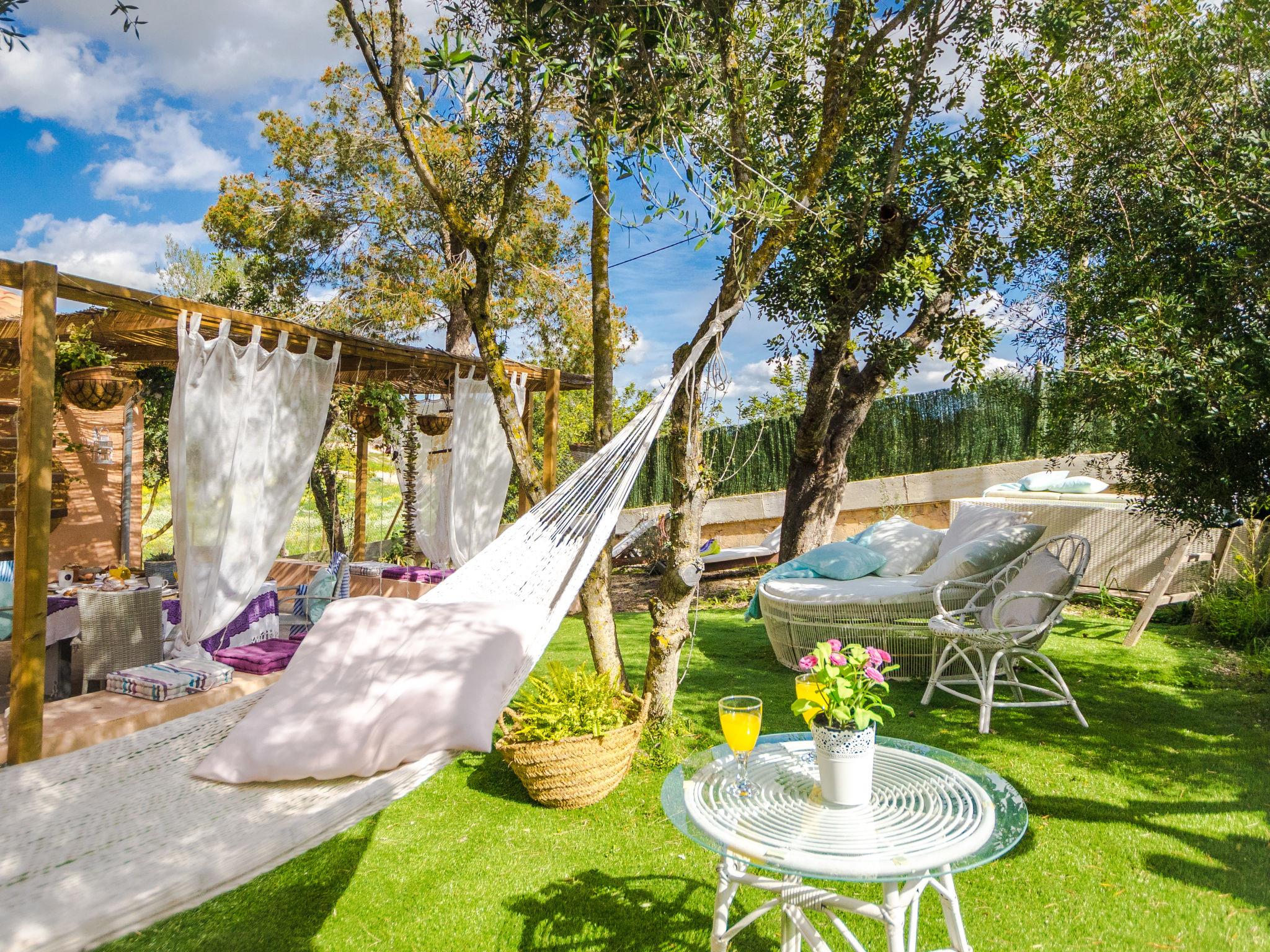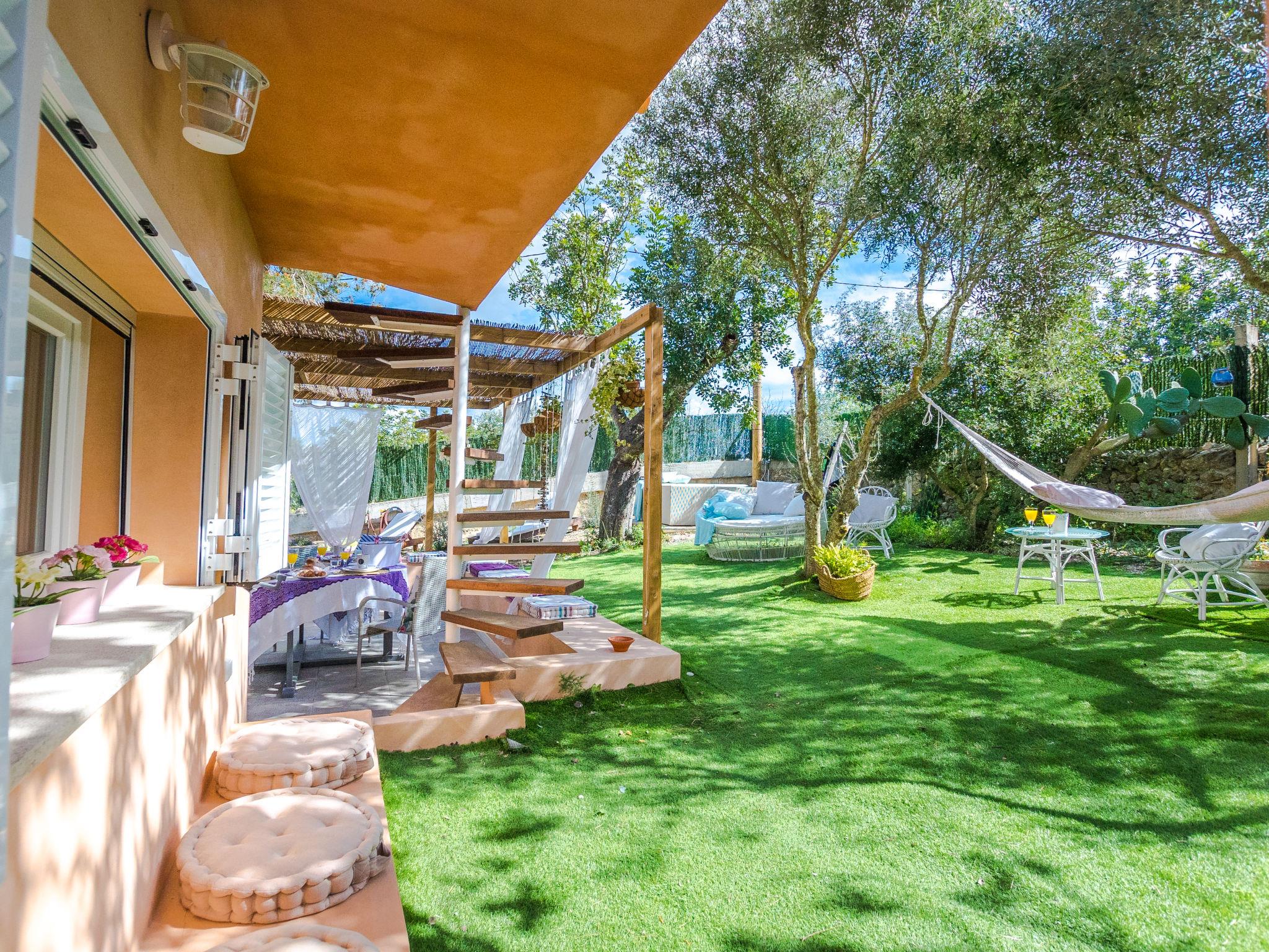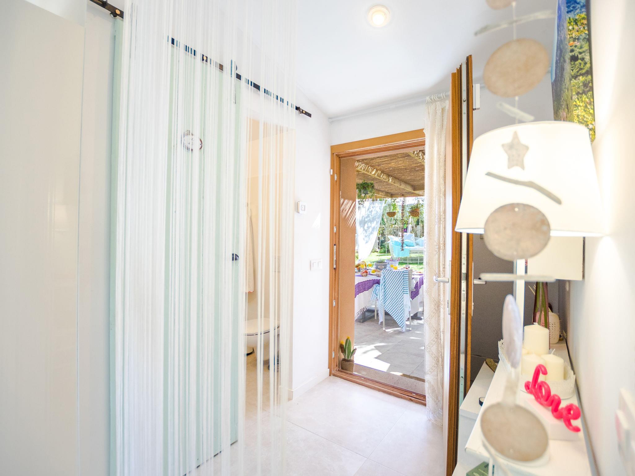 Villafranca de Bonany: Very beautiful, comfortable farm estate "Can Marc", 2 storeys, renovated in 2018, surrounded by meadows. Outside the resort, 950 m from the centre of Villafranca, in a quiet position on top of a hill, 24 km from the sea, 24 km from the beach, in the woods. Private: natural state property with wildlife garden and trees, beautiful garden to relax. Outdoor shower, hot tub, patio, arbour, garden furniture, barbecue. In the house: internet access, WiFi, storage room for bicycles, washing machine. Steep motor access. Parking at the house on the premises. Shop 950 m, supermarket 980 m, restaurant 900 m, bar 800 m, bakery 800 m, 10 minute walk to the centre, bus stop 900 m, sandy beach "Portocristo" 24 km, rocky beach "Cala Manacor" 24 km. Sports harbour 24 km, marina 24 km, golf course (18 hole) 31 km. Nearby attractions: Cala Magrana, Cala Mendia, Cala Romantic 23 km, Cala Varques 22 km, Manacor Ciudad 9.5 km. Please note: car recommended. Suitable for families, suitable for seniors. Object suitable for 2 adults groups of teenagers on request only. Loading and unloading of baggage is possible at the holiday house. Animals in the neighbourhood. Airfield 37 km from the property.