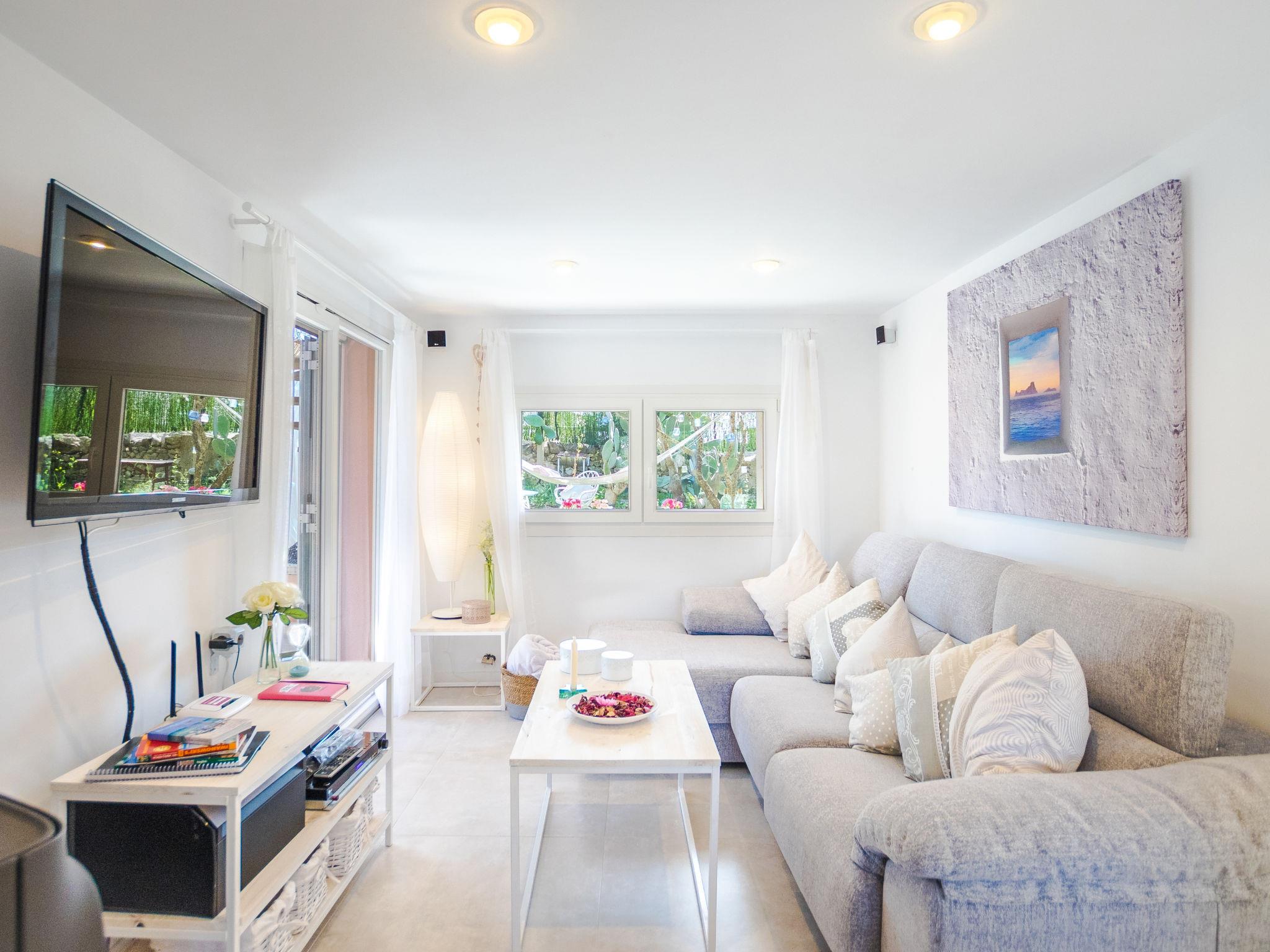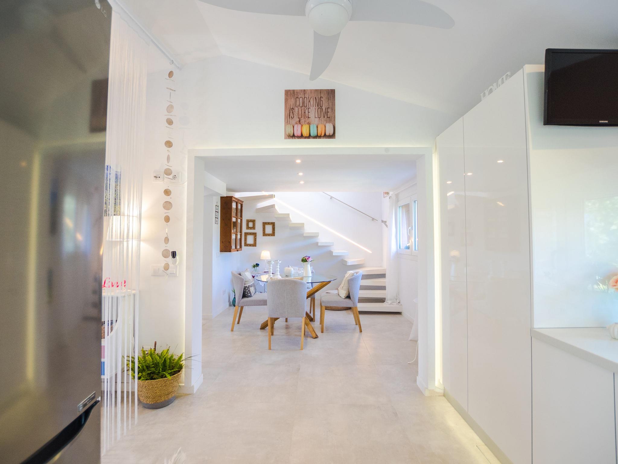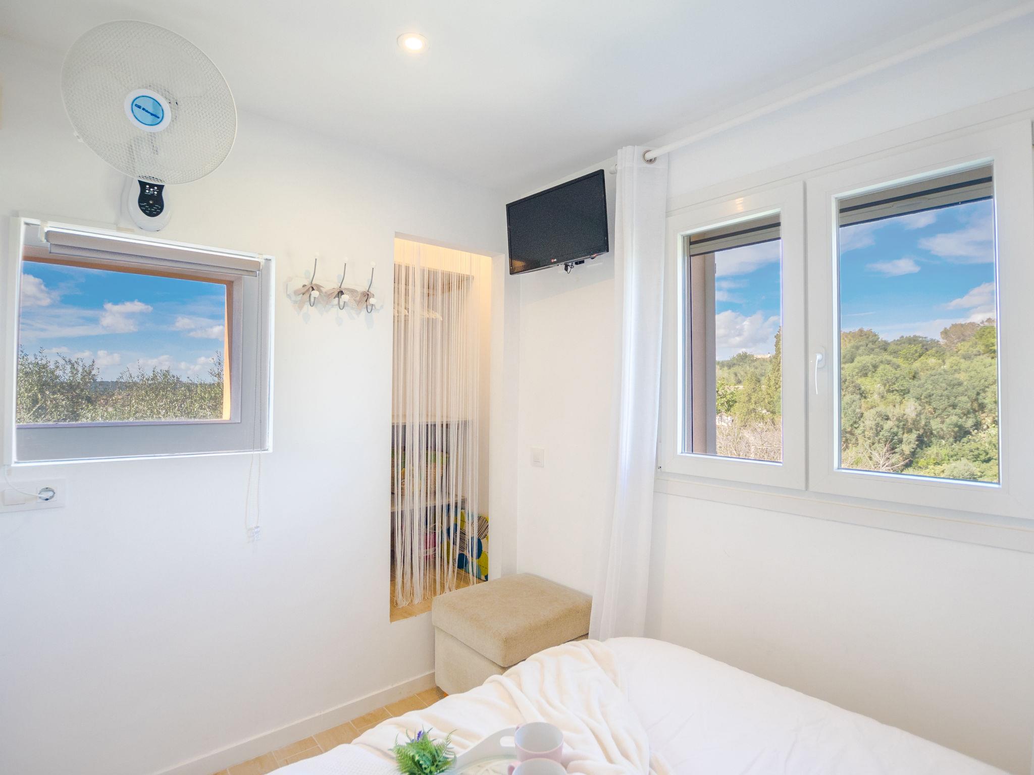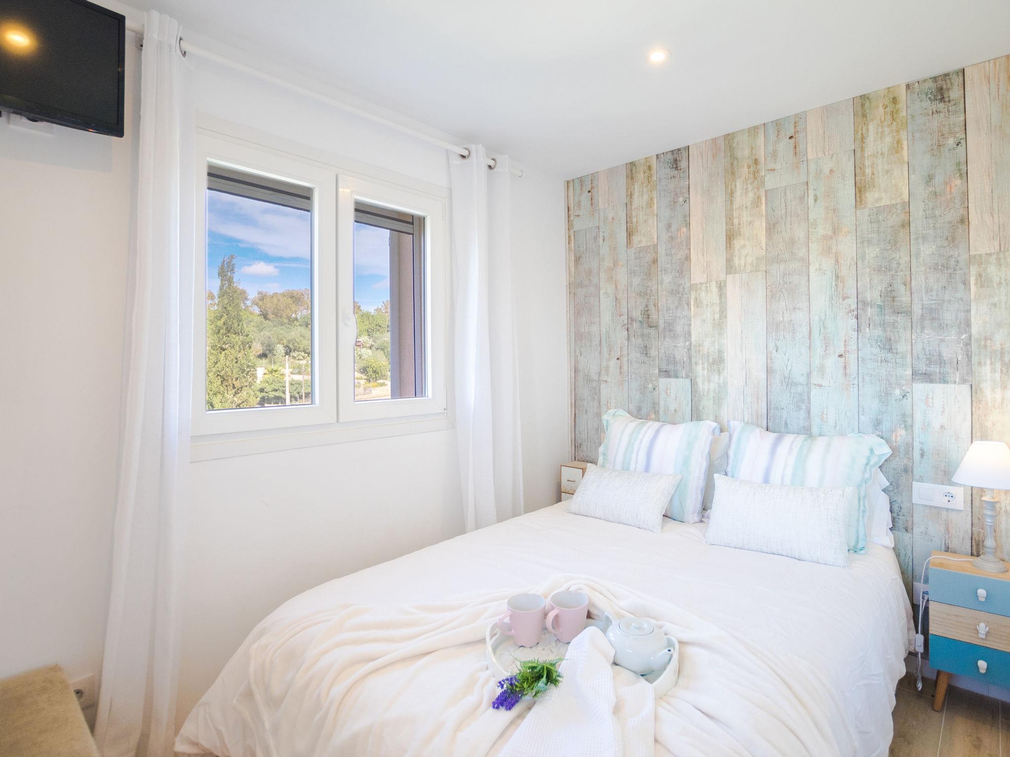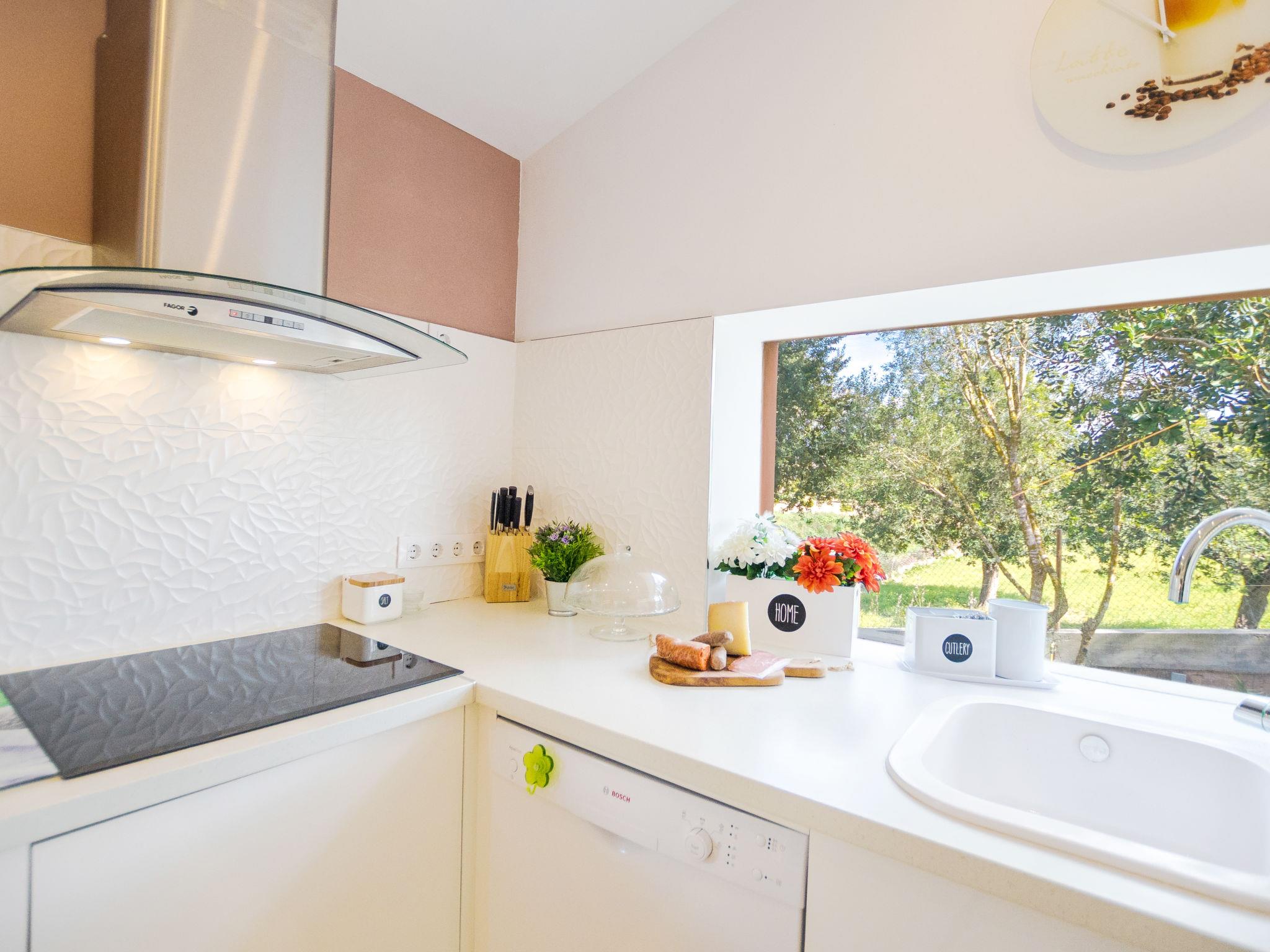 "Can Marc", 3-room house 80 m2 on 2 levels. Object suitable for 2 adults. Fully renovated, very cosy and romantic furnishings: open living/dining room with sliding door, panoramic window with open-hearth fireplace, TV, international TV channels, flat screen, air conditioning and forced-air heating. Exit to the patio, to the swimming pool. Open kitchen (oven, dishwasher, 3 ceramic glass hob hotplates, toaster, kettle, microwave, freezer, electric coffee machine). Exit to the patio. Bath/shower/WC. Upper floor: 1 double bedroom with sliding door with 1 french bed (150 cm), air conditioning, fan and forced-air heating. Exit to the balcony. 1 double bedroom with panoramic window with 1 french bed (135 cm), fan. Bath/shower/WC. Balcony, patio, porch. Terrace furniture, balcony furniture, barbecue, deck chairs. View of the mountains and the countryside. Facilities: washing machine, iron, mosquito net, hair dryer. Internet (WiFi, free). Parking (fenced). Suitable for families. Maximum 1 pet/ dog allowed. ETV9259 // Reg. Nr.: ESFCTU00000702900033314000000000000000000000ETV/92597