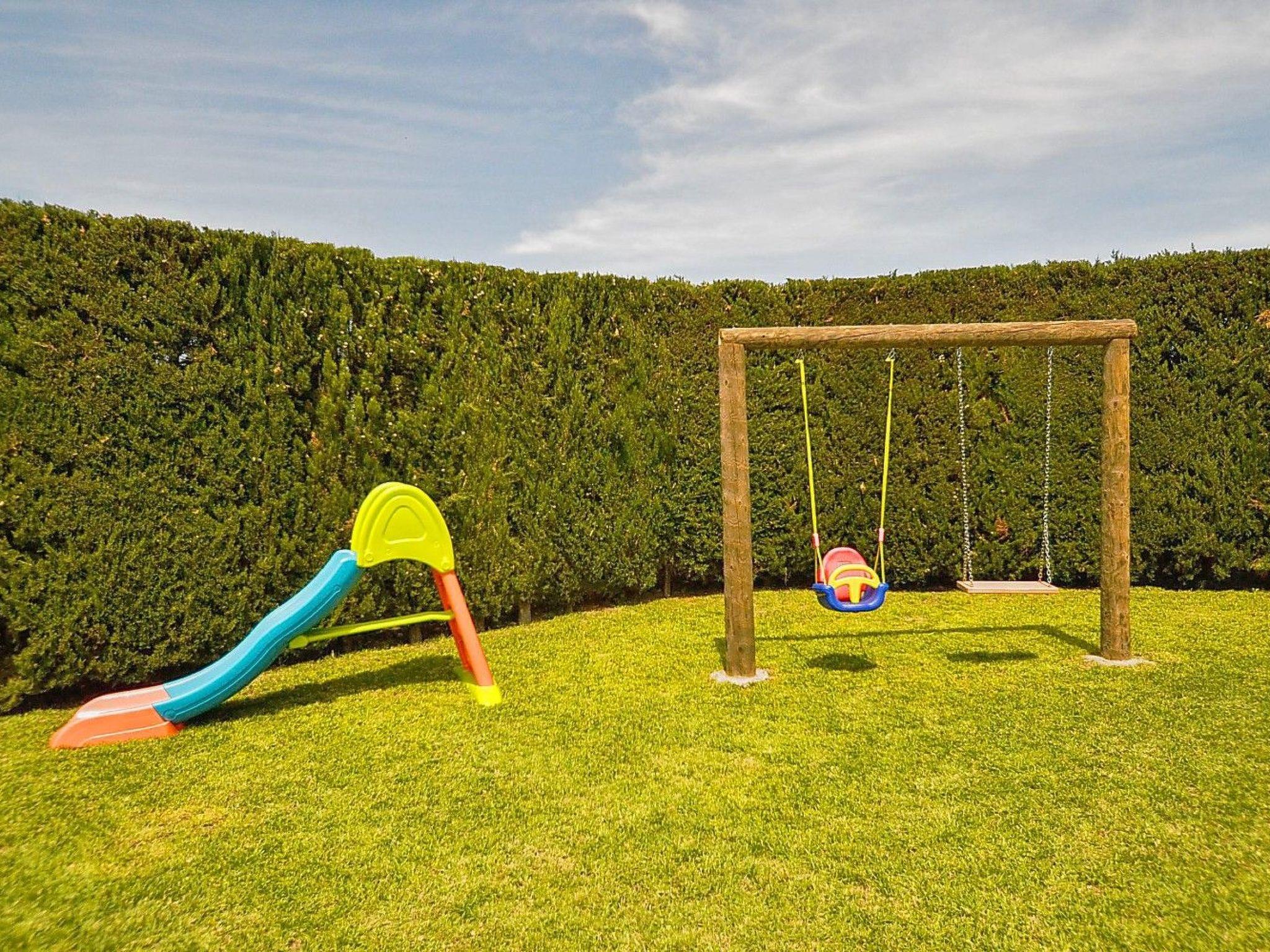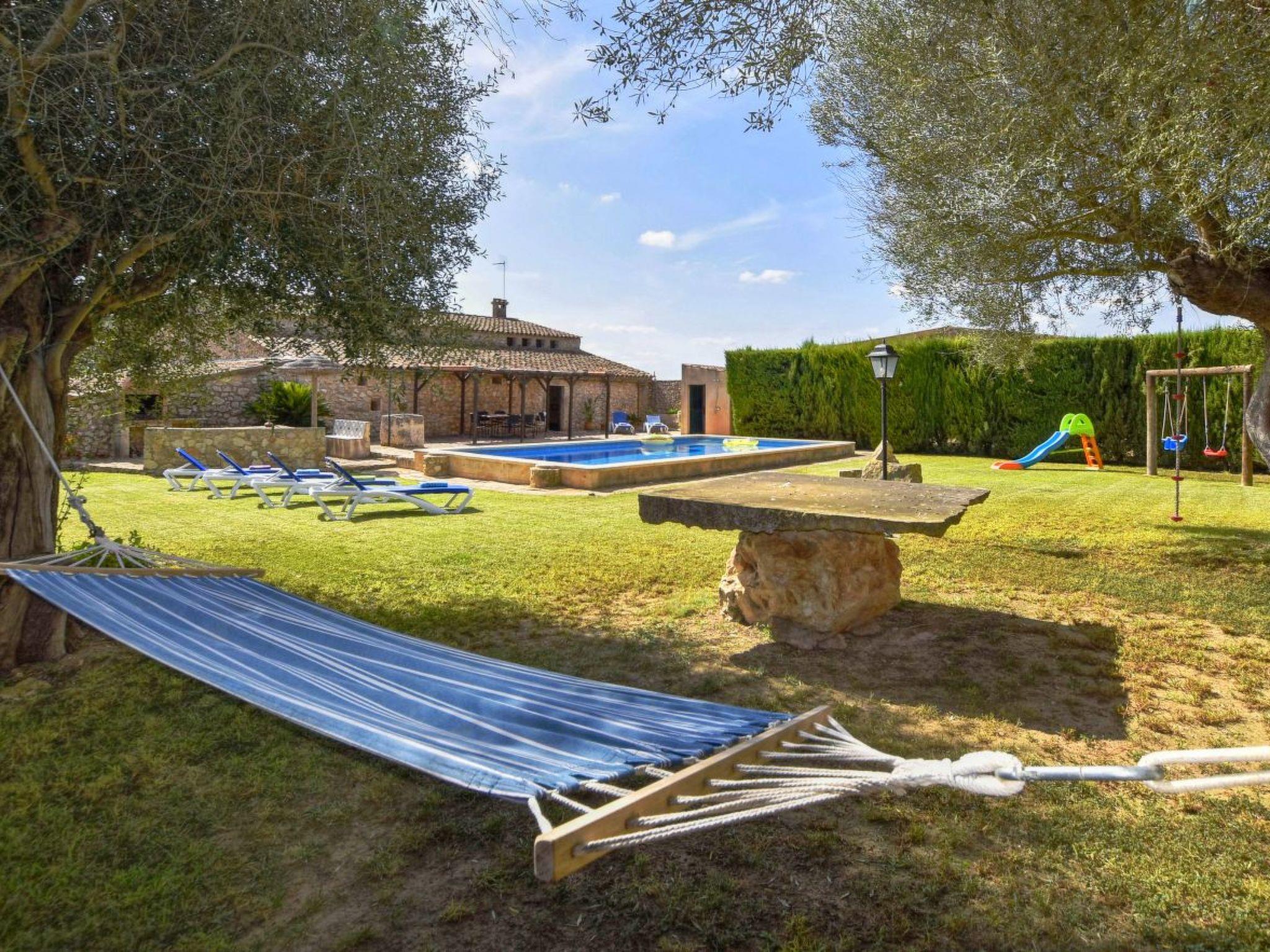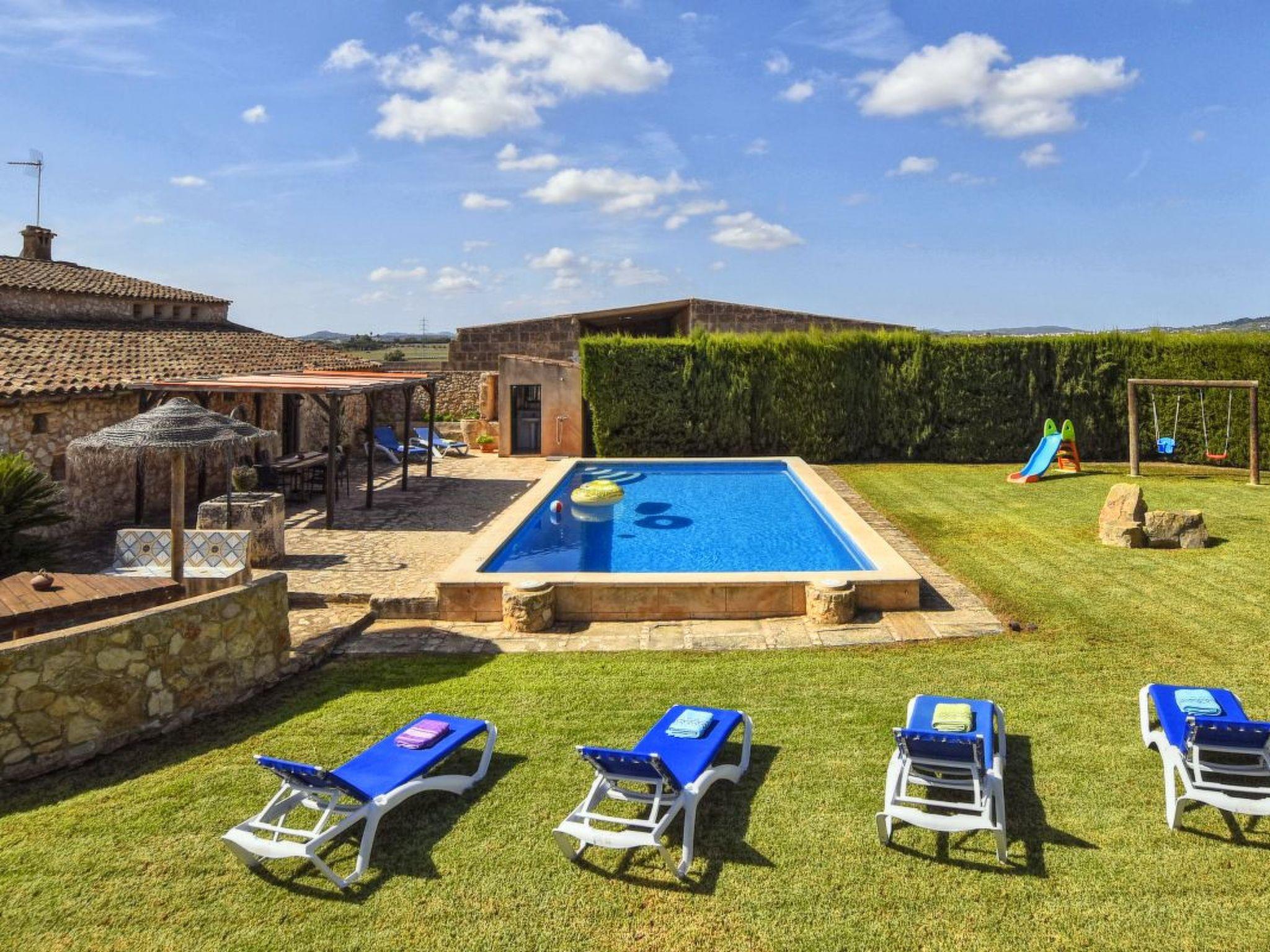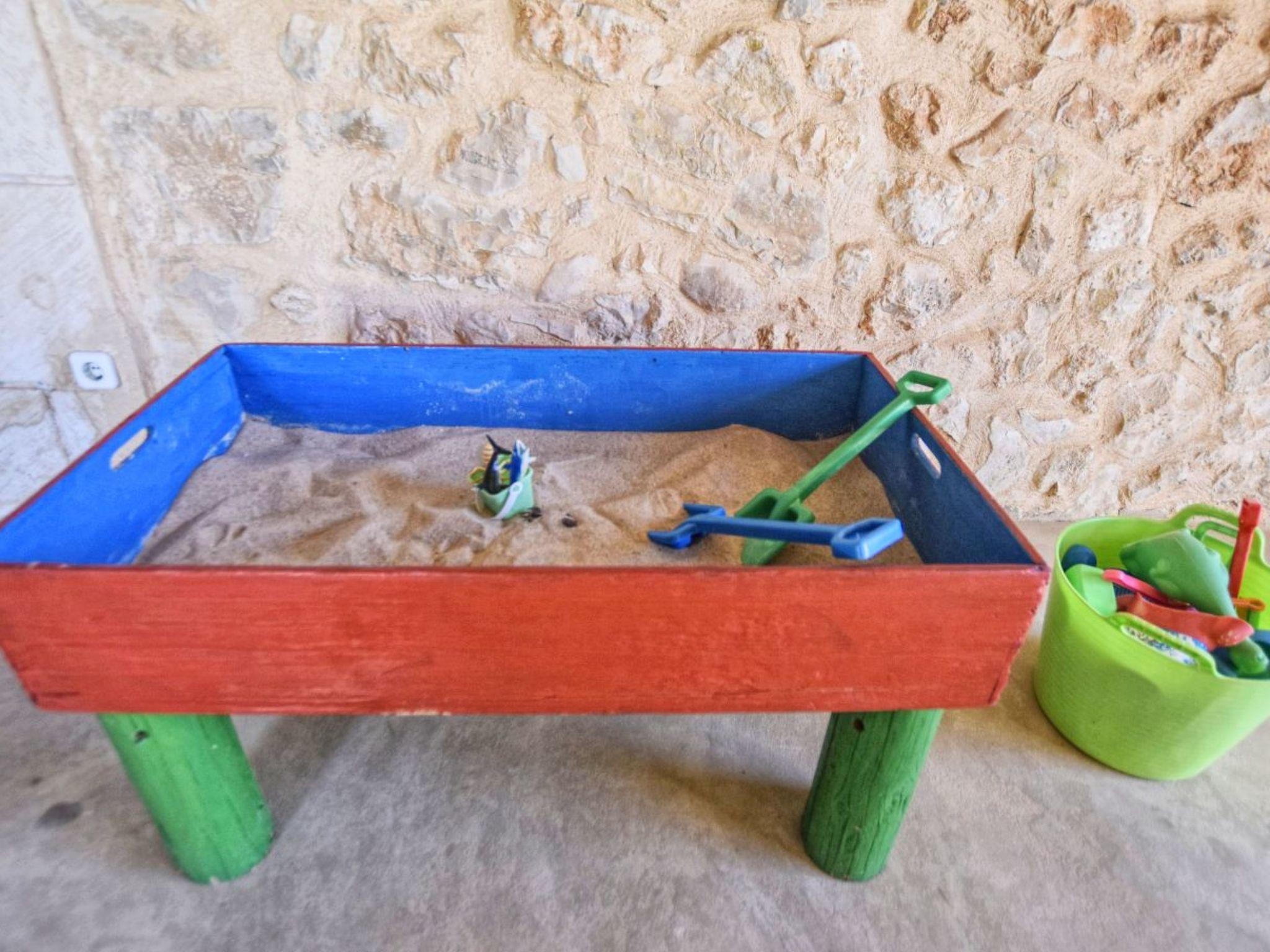 The finca has a wonderful, huge garden with lots of lawn, a children's slide with a swing for the little ones, a brick barbecue area with an umbrella and a bench right next to the covered dining area in front of the pool. The 10 m x 5 m swimming pool has a depth of 1.40 x 2.00 m provides the necessary refreshment and the sun loungers invite you to soak up the sun. At the pool there is an outdoor shower and also a toilet with a sink. For some sporting activity, there is a table tennis table in the converted stable and there is also a mobile sandpit for the little ones.