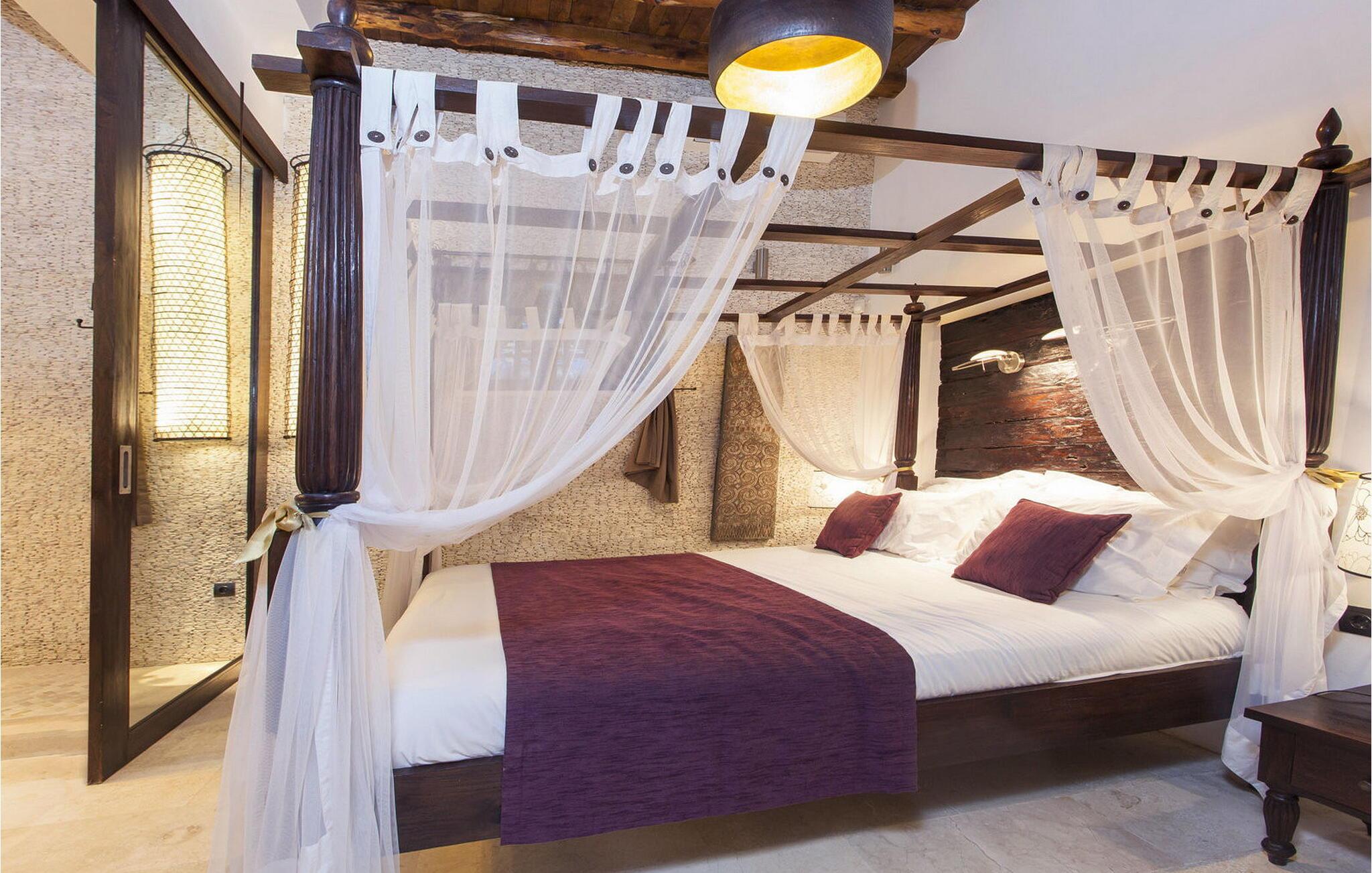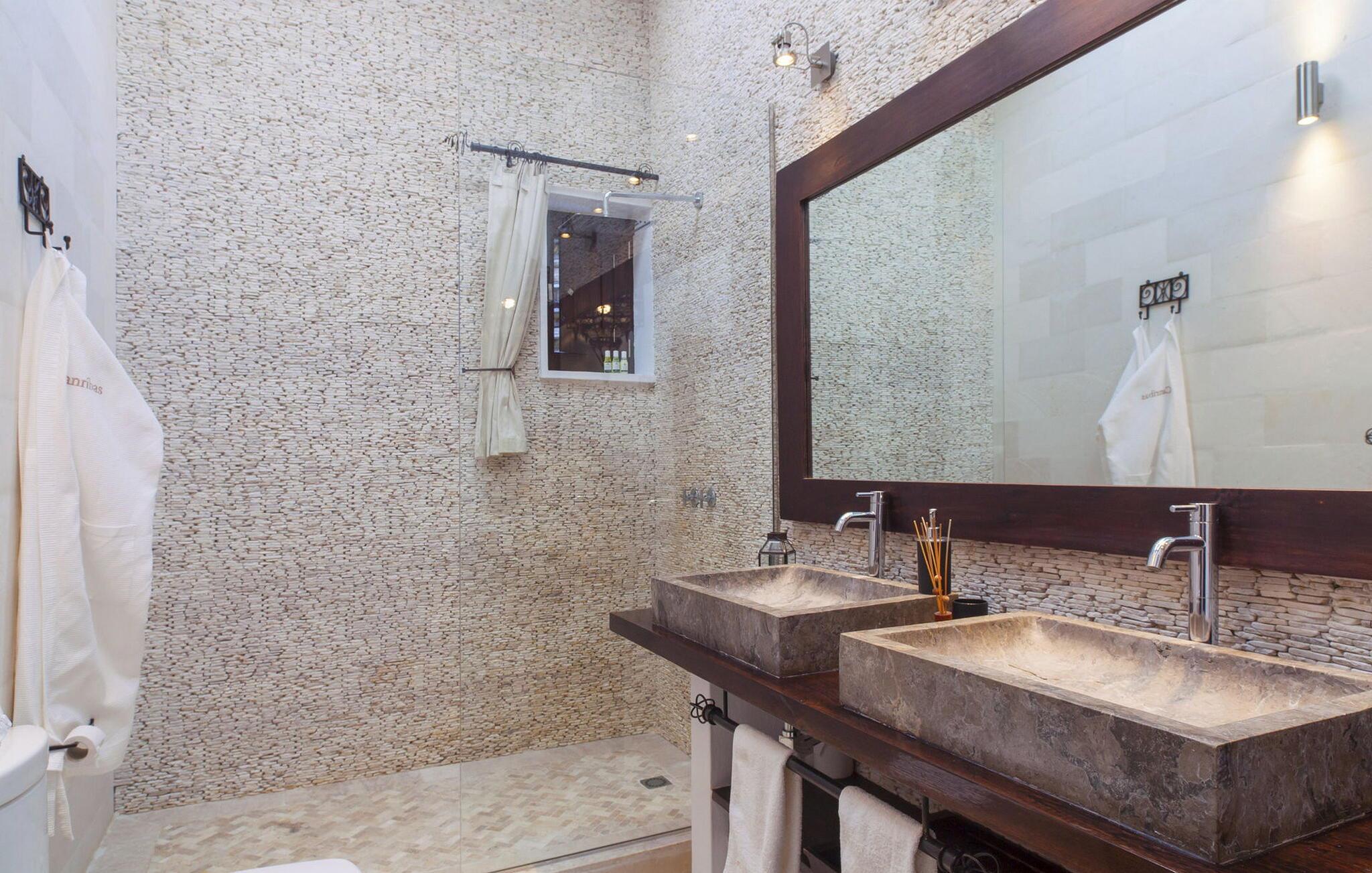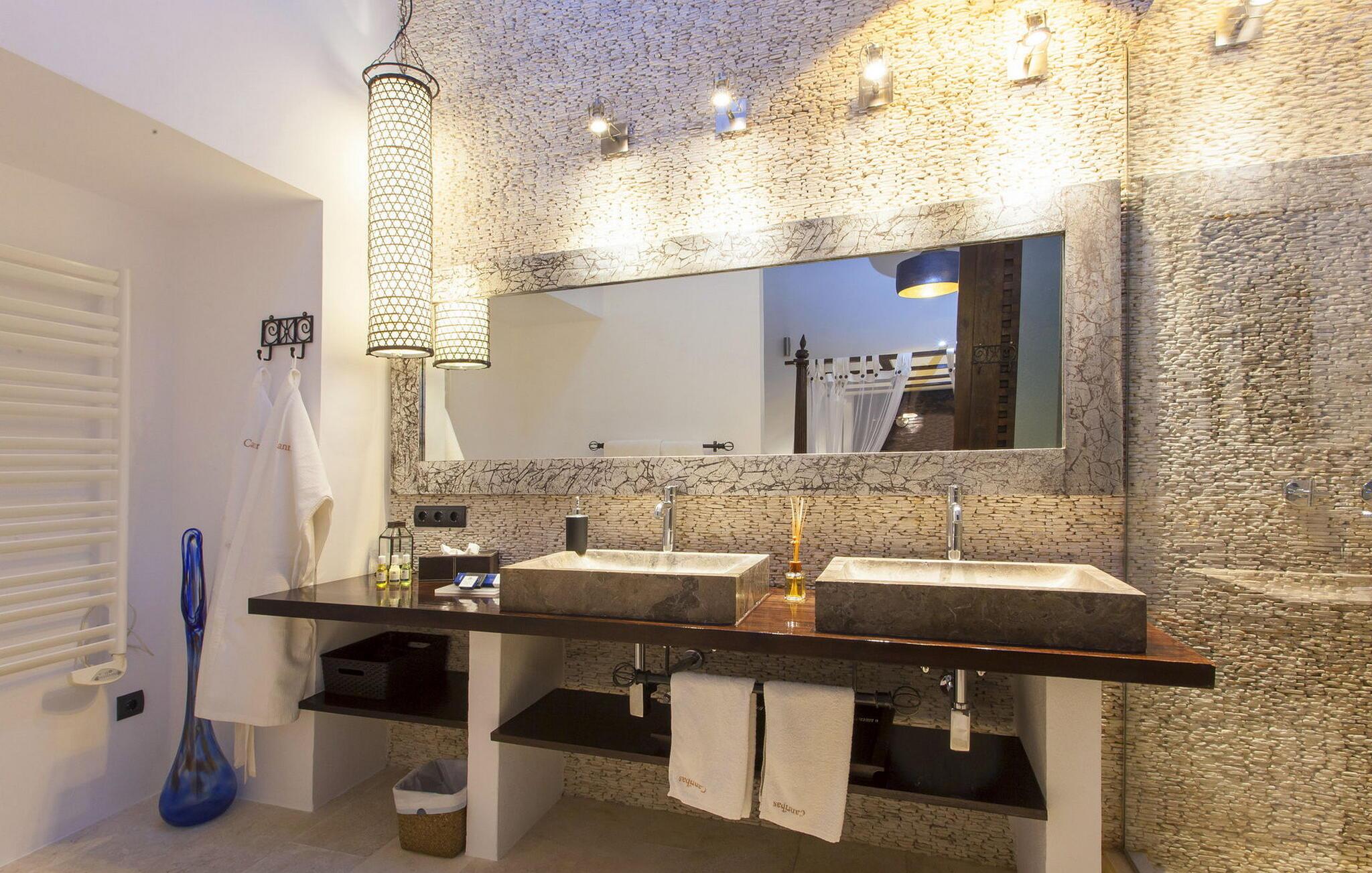 Uthus: I første etasje er det et dobbelt soverom med eget bad og en liten terrasse. I øverste etasje er det et annet soverom med dobbeltseng og eget bad. Det er safe i alle rommene.