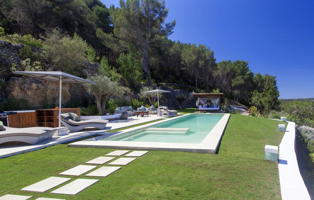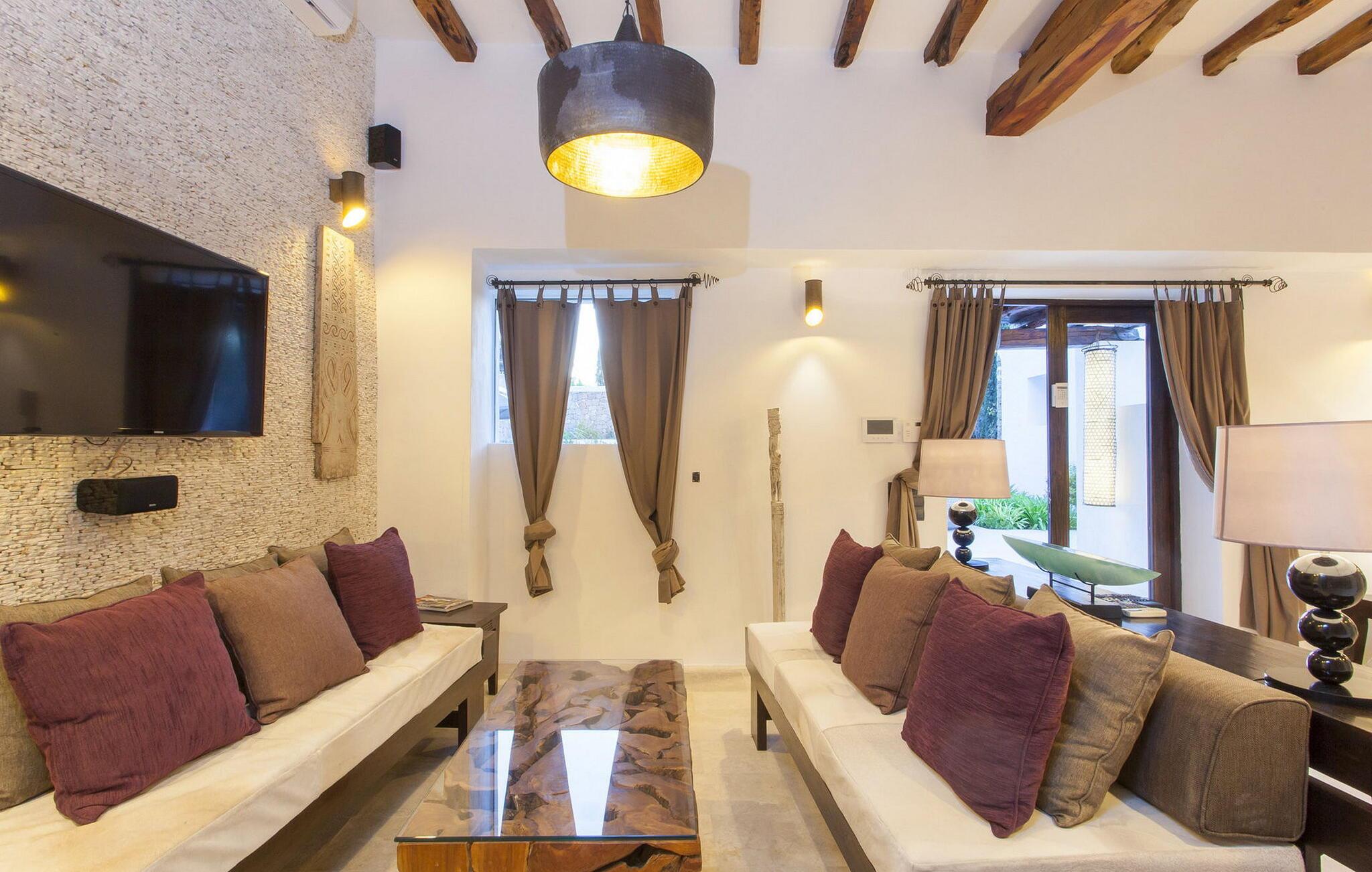Vakkert luksushus i Ibiza-stil på 300 m2 på en tomt på ca. 17.500m2 nord på øya, veldig nær Agroturismo Atzaró. I et veldig rolig og unikt område av Ibiza. Flott panoramautsikt over Morna-dalen fra bassengområdet. Santa Eulalia ligger en 10-minutters kjøretur unna.