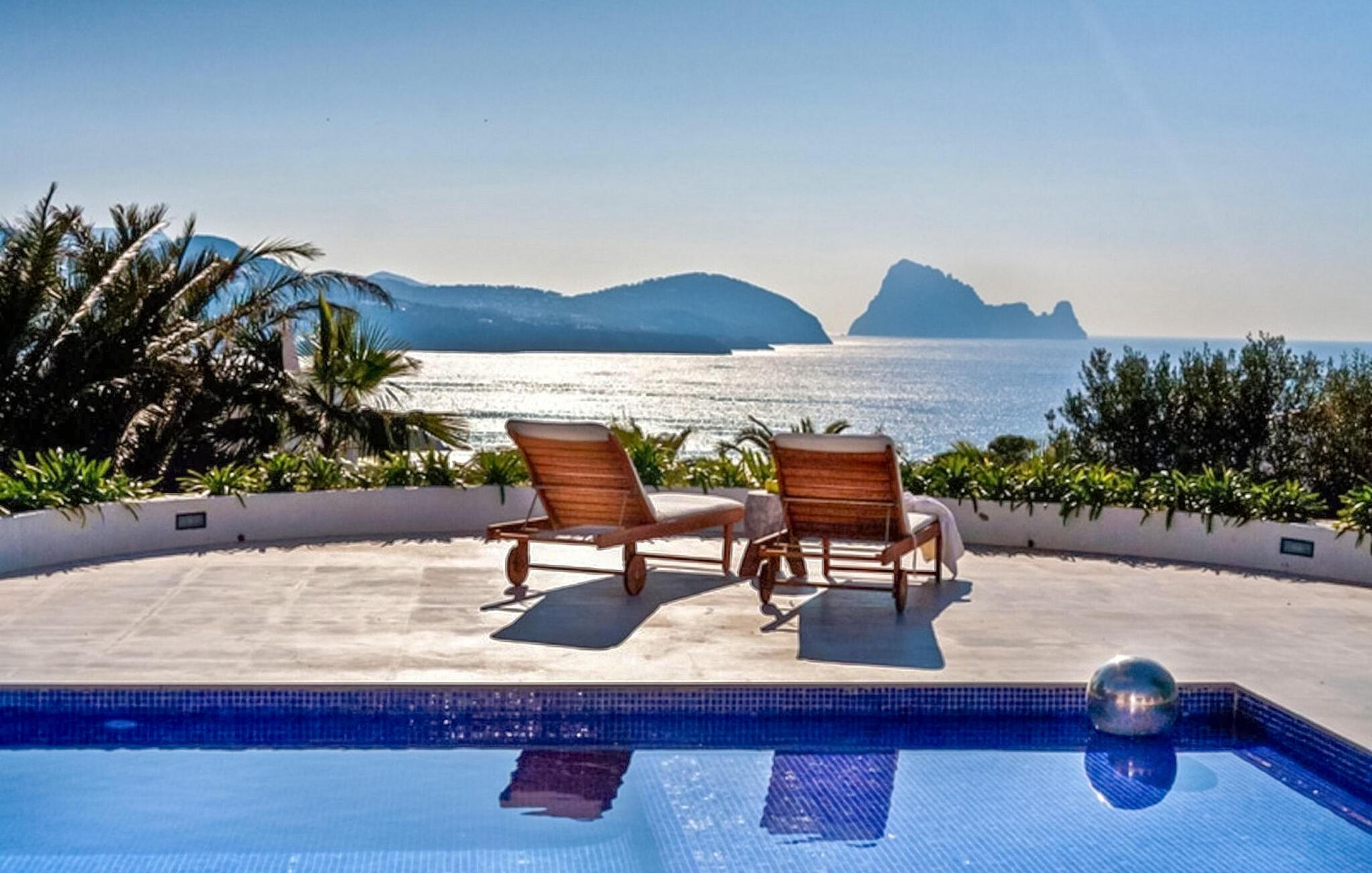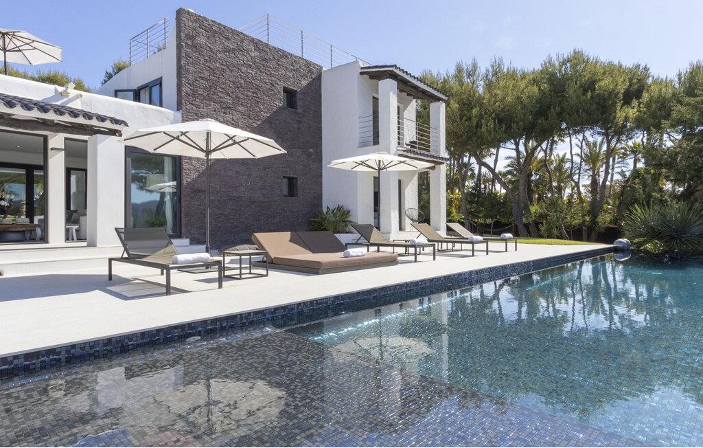 Denne fantastiske villaen på 340 m2 ligger på en tomt på 3300 m2, bare 250 meter fra sjøen, og har en spektakulær utsikt over havet og Es Vedrá. Den ligger i et rolig område like i nærheten av Cala Codolar og strendene i Cala Comte, som ligger bare en kort spasertur fra huset.