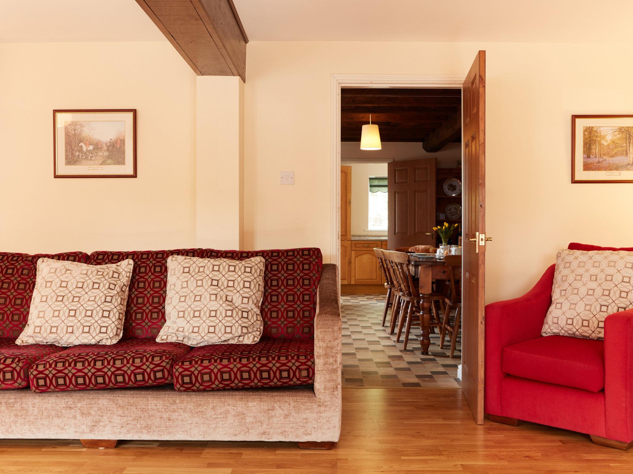 "Willow Barn", 9-room house 300 m2. Object suitable for 14 adults. Living room with open-hearth fireplace, TV and DVD. 1 room with 2 beds. 1 room with 1 french bed. 1 room with 1 french bed. 1 room with 2 beds. 1 room with 1 french bed. 1 room with 2 beds. 1 room with 2 beds. Playroom. Kitchen (oven, dishwasher, toaster, kettle, microwave, freezer). 2 baths/WC, 5 showers/WC. Barbecue. View of the garden. Facilities: washing machine. Internet (WiFi, free). Please note: non-smokers only. Smoke alarm.