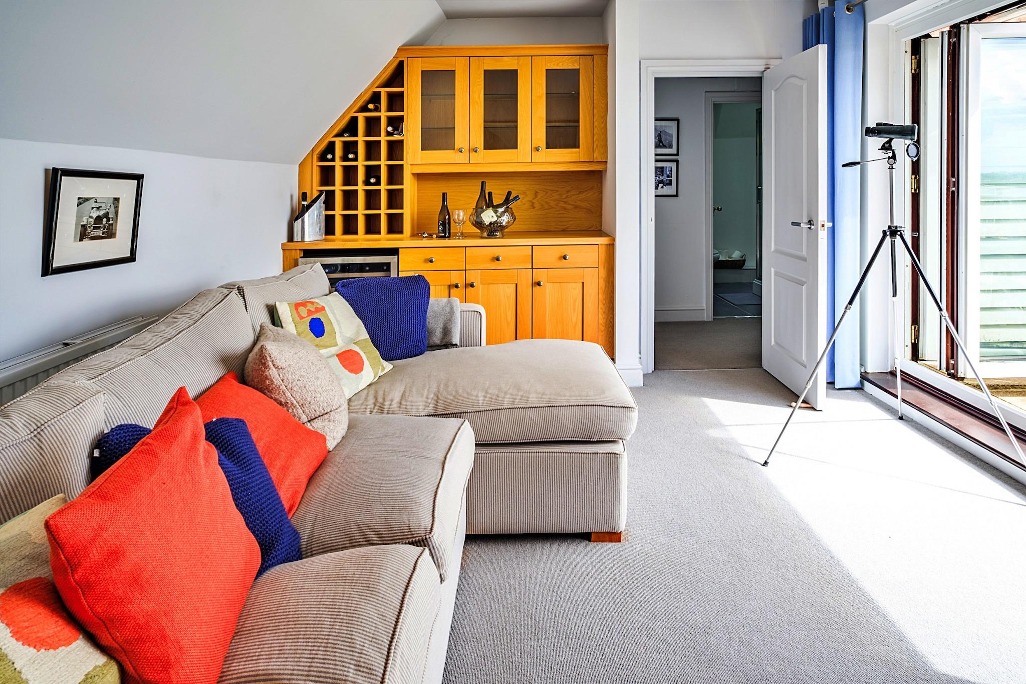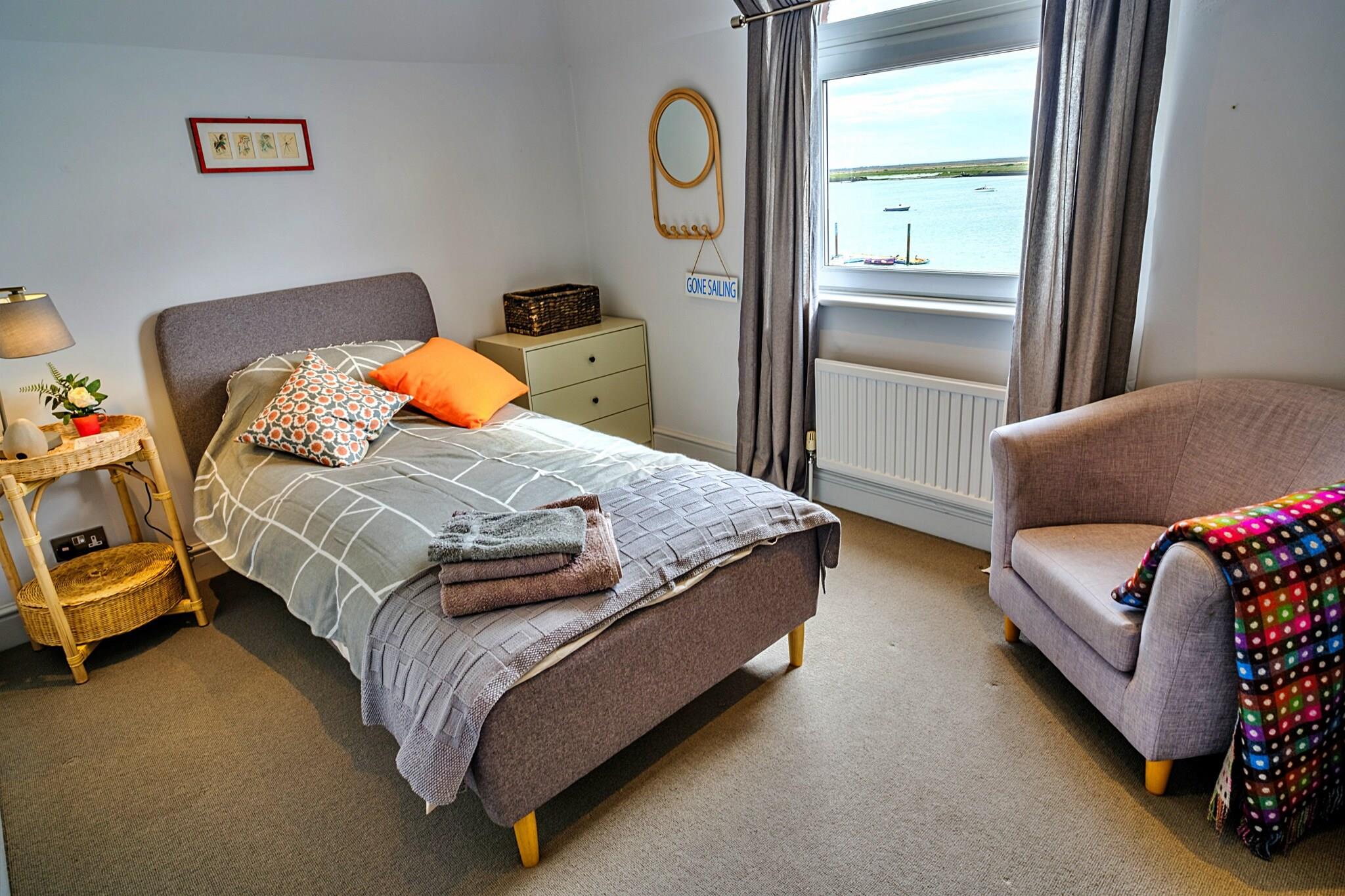 Denne romslige, kjæledyrvennlige leiligheten har plass til opptil 6 personer fordelt på 3 soverom, noe som gjør den til et ideelt valg for familier eller små grupper. Den har en king-size-seng på hovedsoverommet, en dobbeltseng i det andre og en enkeltseng i det tredje rommet. Det er to bad, begge velutstyrte med massasjedusj, servant og WC. Eiendommen tilbyr fantastisk utsikt over elven Crouch og har flere balkonger, inkludert en i stuen og en annen utenfor den andre stuen. Ytterligere fasiliteter inkluderer satellitt-TV, internettilgang og en koselig stue perfekt for avslapning. Kjæledyr er velkomne mot en ekstra avgift, for å sikre at ingen familiemedlemmer blir etterlatt. Denne eiendommen ligger i den rolige byen Burnham-on-Crouch, og tilbyr et fredelig tilfluktssted, samtidig som den er praktisk forbundet med London sentrum via en hyppig togforbindelse. Området er kjent som en av de "fredeligste byene i England", og er ideelt for rolige spaserturer og lokale kafeer, restauranter og butikker. Den nærliggende vannkanten tilbyr vakker utsikt over Themsens elvemunning, perfekt for fugletitting, båtracing og avslapning ved elven. For historieentusiaster er stedet gjennomsyret av maritim historie, med det opprinnelige båtverftet som fortsatt er restaurert i nærheten. Leilighetens kjøkken er fullt utstyrt med induksjonstopp, stekeovn, mikrobølgeovn og oppvaskmaskin, noe som sikrer bekvemmelighet for de som ønsker å spise i. Den romslige spisestuen har komfortabel plass til seks, og de store stuene, med panoramautsikt, gir et utmerket sted for både avslapning og sosialt samvær. Enten du nyter et måltid eller nipper til kaffen på balkongen, tilbyr hjemmet den perfekte rammen for et minneverdig opphold.
