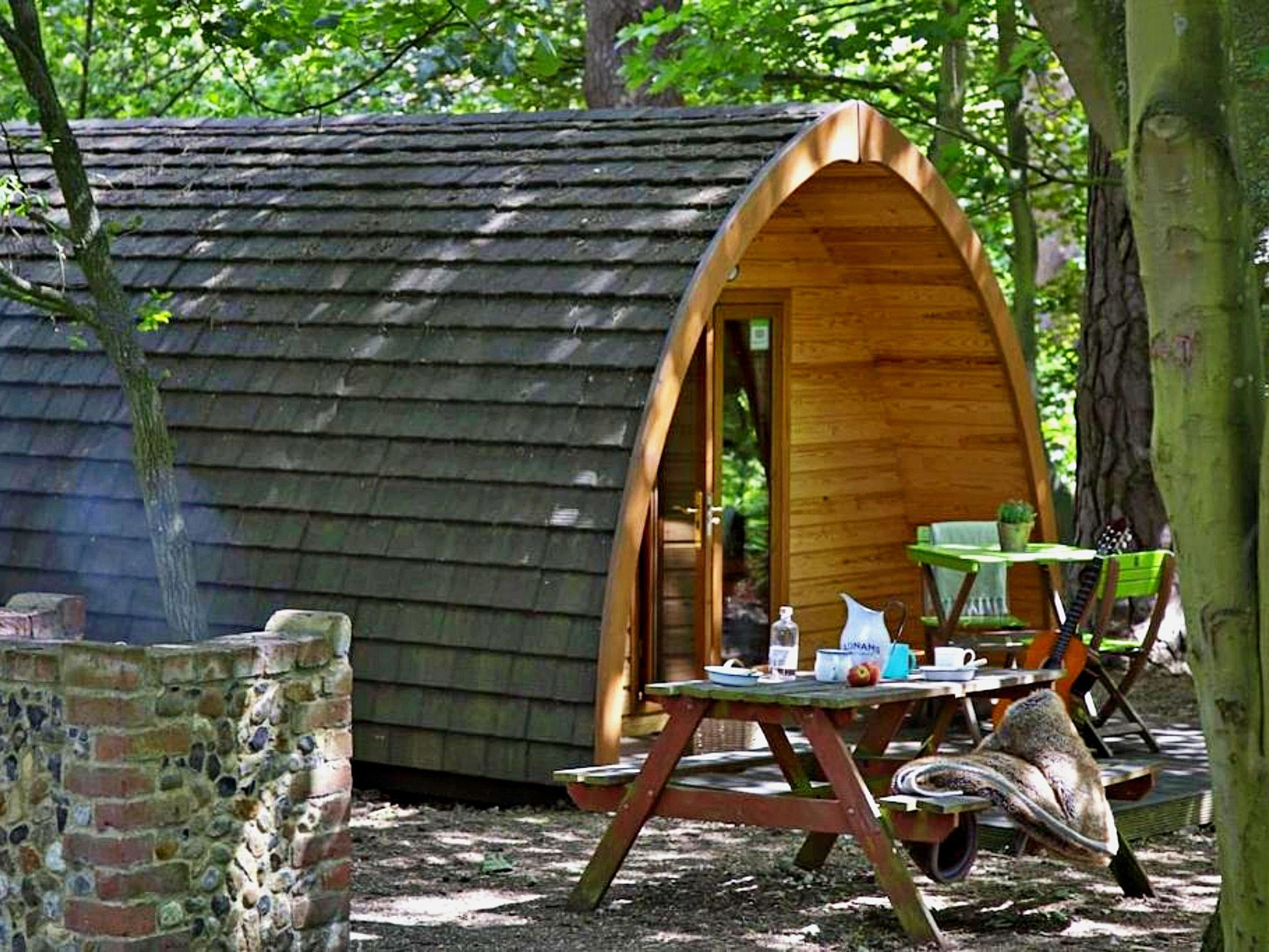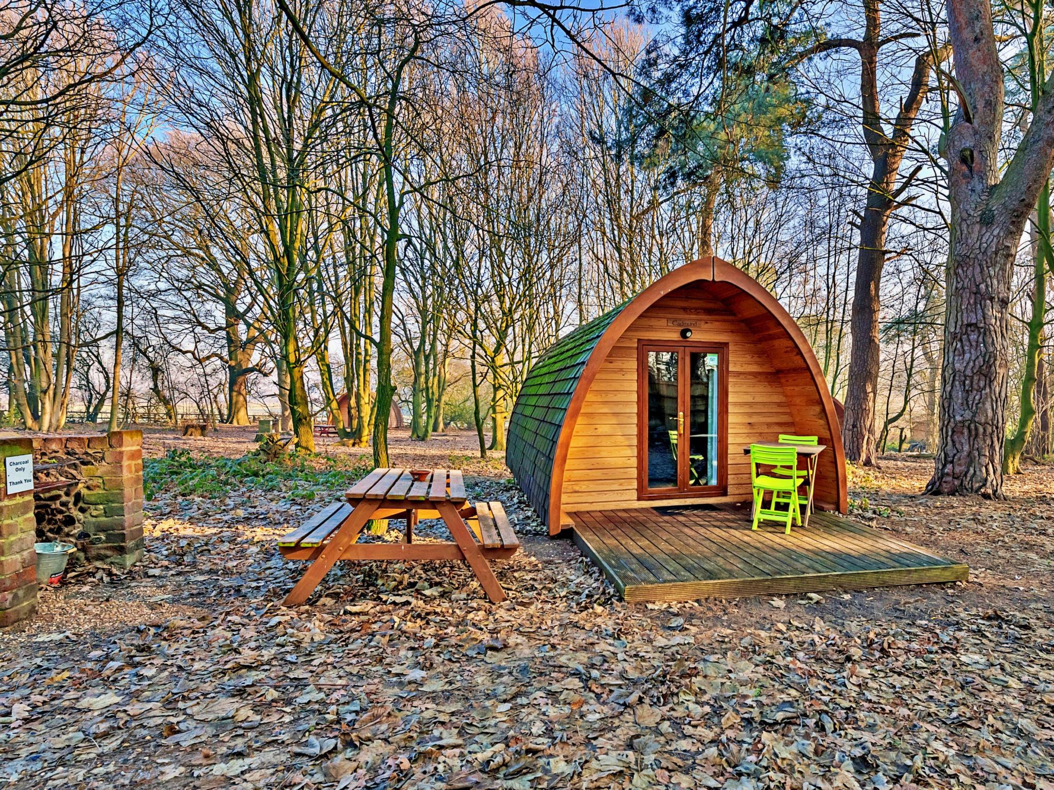 "Wulfrun Pod", 2-room chalet 15 m2, on the ground floor. Object suitable for 4 adults. Living room with 1 sofabed and 1 pull-out bed. 1 room with 1 double bed. Small kitchen (toaster, kettle, microwave). Shower/WC. Terrace. Barbecue. Facilities: Internet (WiFi, free). Please note: non-smokers only. 2 pets/ dogs allowed.