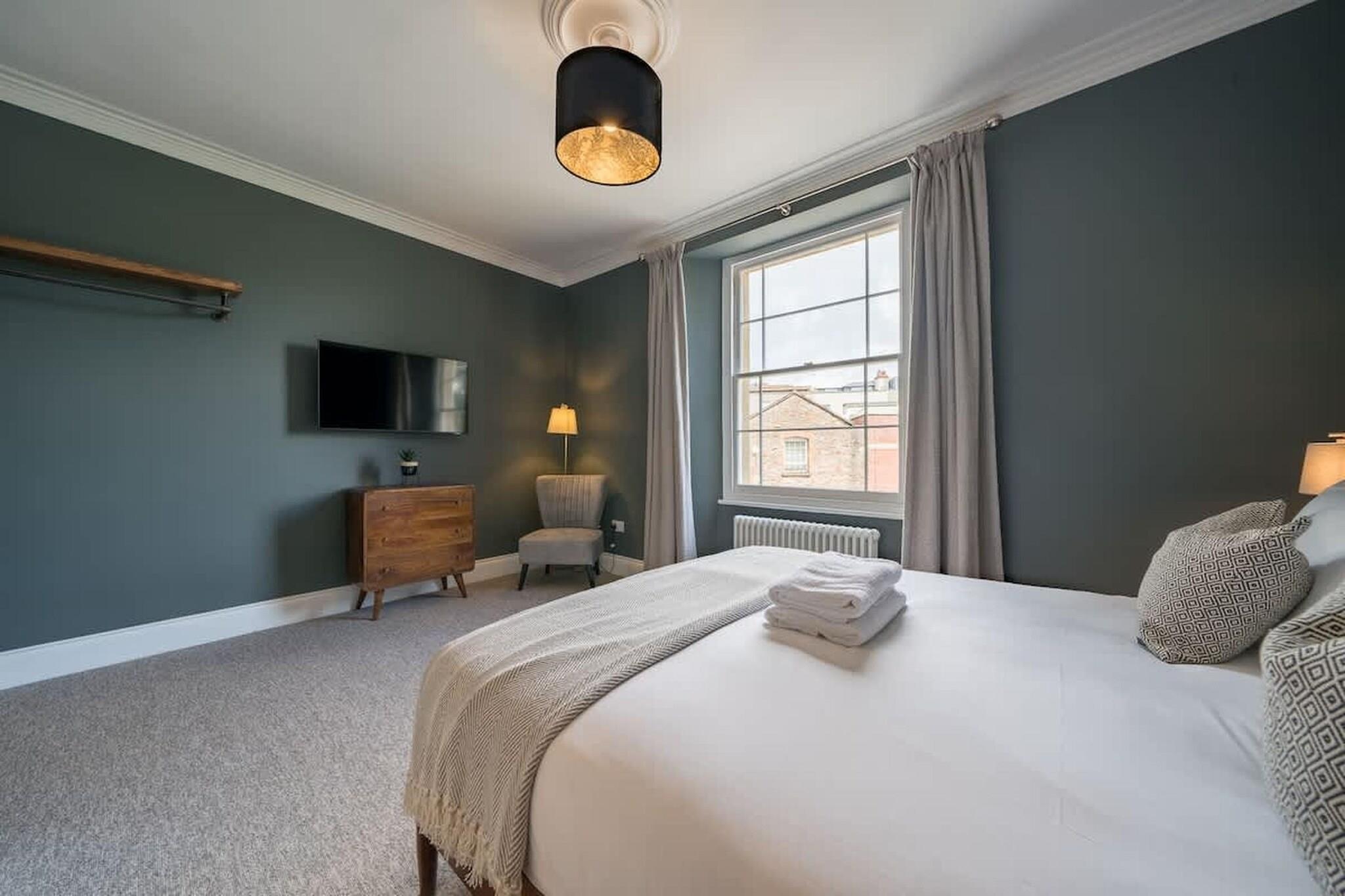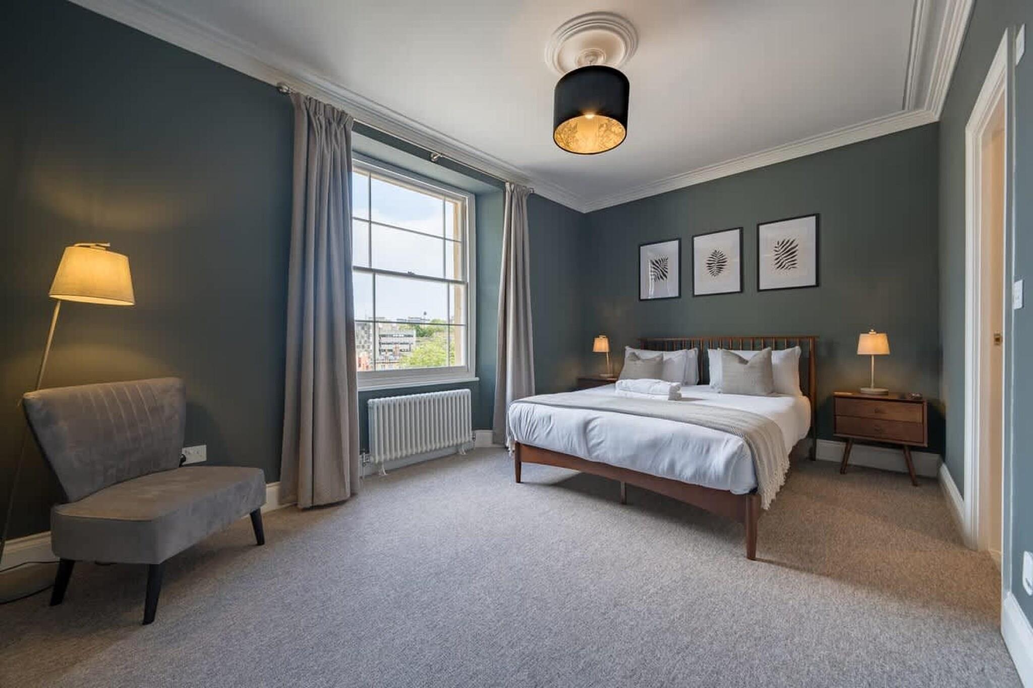Dette romslige, frittliggende rekkehuset for åtte gjester ligger i det elegante georgianske kvarteret Clifton i Bristol, og er designet for gruppeopphold der komfort, privatliv og felles øyeblikk teller like mye. Enten du besøker med familie, venner eller for en spesiell anledning, tilbyr planløsningen plass til å samles og plass til å slappe av. Innvendig byr stuen på en avslappet atmosfære med komfortable sitteplasser og en stor TV for rolige kvelder, mens en separat spisestue med et stort bord blir det naturlige knutepunktet for måltider, spill og lange samtaler. Det åpne kjøkkenet er fullt utstyrt med stekeovn, oppvaskmaskin og kjøleskap/fryser, noe som gjør det enkelt og sosialt å lage mat i fellesskap, snarere enn overfylt. Alle fire soverommene har dobbeltsenger, og det første soverommet tilbyr også en TV for ekstra komfort. Tre fullt funksjonelle bad med badekar sikrer behagelige morgener og rolige kvelder for alle i gruppen. En privat hage for felles øyeblikk og soling. Boligen er omhyggelig utstyrt for lengre opphold og blandede behov, inkludert Wi-Fi, et eget arbeidsområde, vaskemaskin/tørketrommel, oppvarming, barnestol, mørkleggingsgardiner og et innendørs lekeområde. Offentlig parkering i nærheten gir praktisk bekvemmelighet på denne sentrale beliggenheten. Gå ut, og du er bare noen øyeblikk unna den ikoniske Clifton Suspension Bridge, naturskjønne turstier over Avon Gorge og de grønne utsiktspunktene på Brandon Hill i Bristol. Den livlige Bristol Harbourside ligger også innen rekkevidde, fylt med kafeer, restauranter, båtturer og kulturelle steder. Dette er et opphold som kombinerer bykarakter, historisk sjarm og den enkle plassen til en godt planlagt base for grupper.