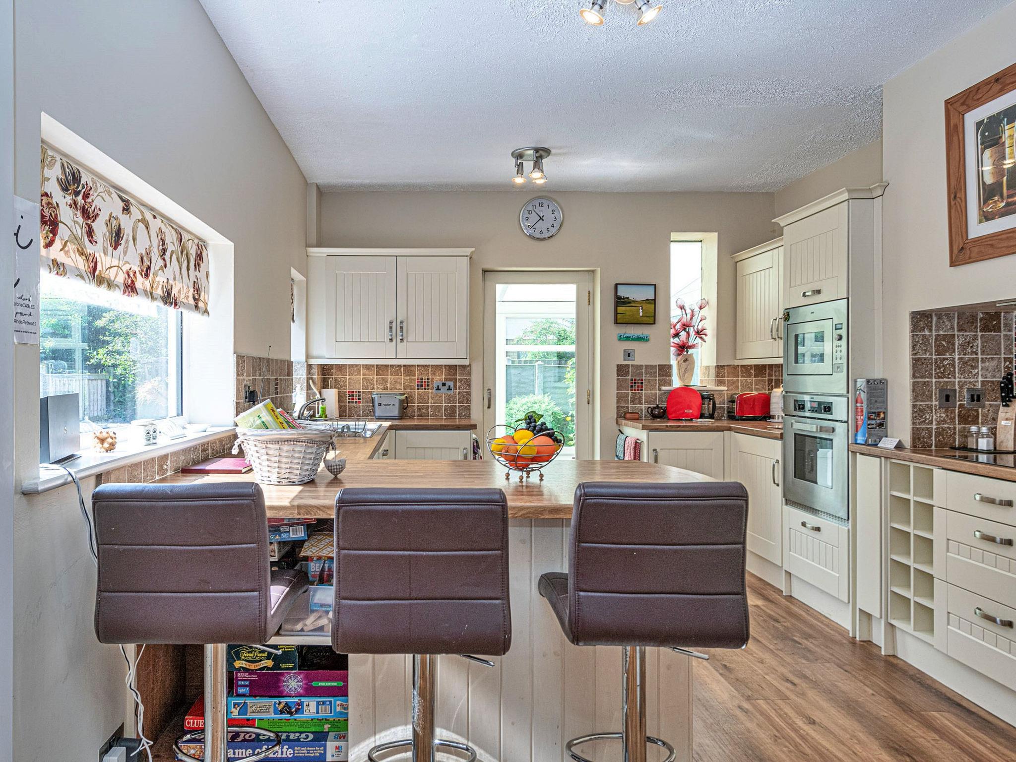 "Penrhyn Avenue", 4-room house 140 m2. Object suitable for 6 adults. Living room with TV. 1 room with 1 double bed and TV. 1 room with 1 double bed and TV. 1 room with 1 double bed. Kitchen (oven, dishwasher, toaster, kettle, microwave, freezer). Bath/WC, sep. WC. Facilities: washing machine. Internet (WiFi, free). Please note: non-smokers only. Smoke alarm.