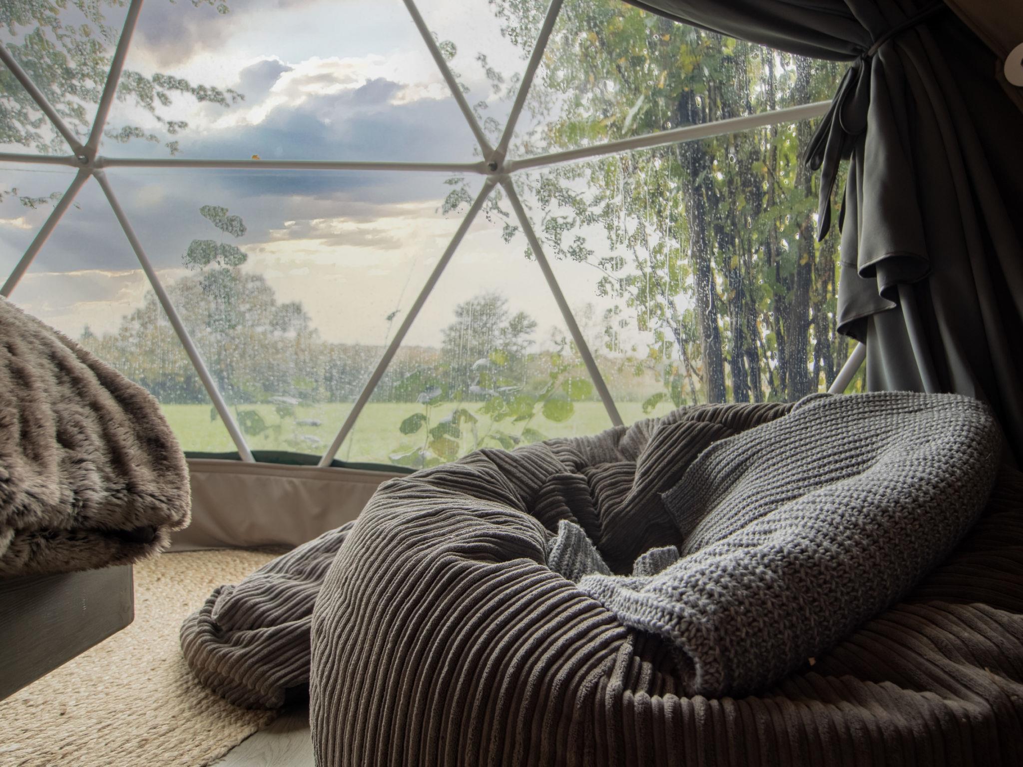 "Chartwell Luxury Dome", 2-room chalet 30 m2. Object suitable for 4 adults. Living room with open-hearth fireplace. 1 room with 2 french beds. Kitchen (toaster, kettle, microwave, electric coffee machine). Shower/WC. Barbecue. Facilities: iron. Internet (WiFi, free). Parking (2 cars). Please note: non-smokers only. 2 pets/ dogs allowed. Smoke alarm.