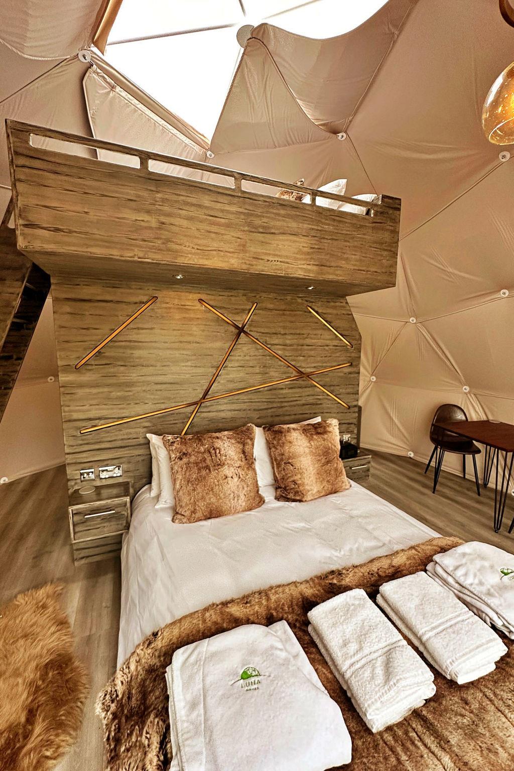 "Ashdown Luxury Dome", 2-room chalet 30 m2. Object suitable for 4 adults. Living room with open-hearth fireplace. 1 room with 2 french beds. Kitchen (toaster, kettle, microwave, electric coffee machine). Shower/WC. Terrace. Barbecue. Facilities: iron. Internet (WiFi, free). Parking (2 cars). Please note: non-smokers only. Smoke alarm.