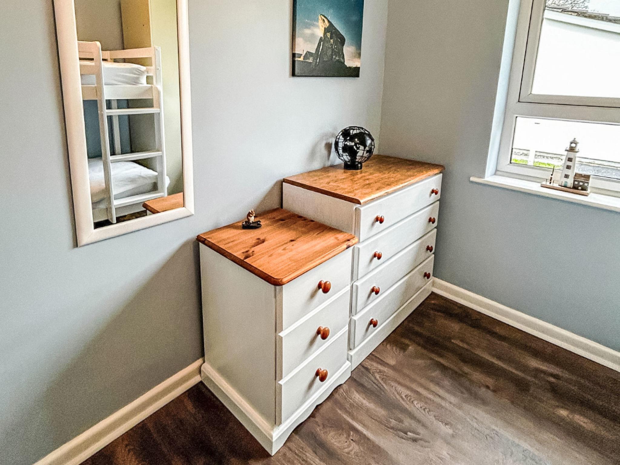 "Kingfishers Lodge", 3-room chalet 46 m2. Modern and tasteful furnishings: open living/dining room with dining table, TV and DVD collection available. 1 double bedroom with 1 double bed. 1 room with 1 x 2 bunk beds. (4 ceramic glass hob hotplates, toaster, kettle, freezer). Shower/WC. Facilities: children's high chair. Internet (WiFi). Parking. Please note: suitable for families. Maximum 2 pets/ dogs allowed. TV only EN.