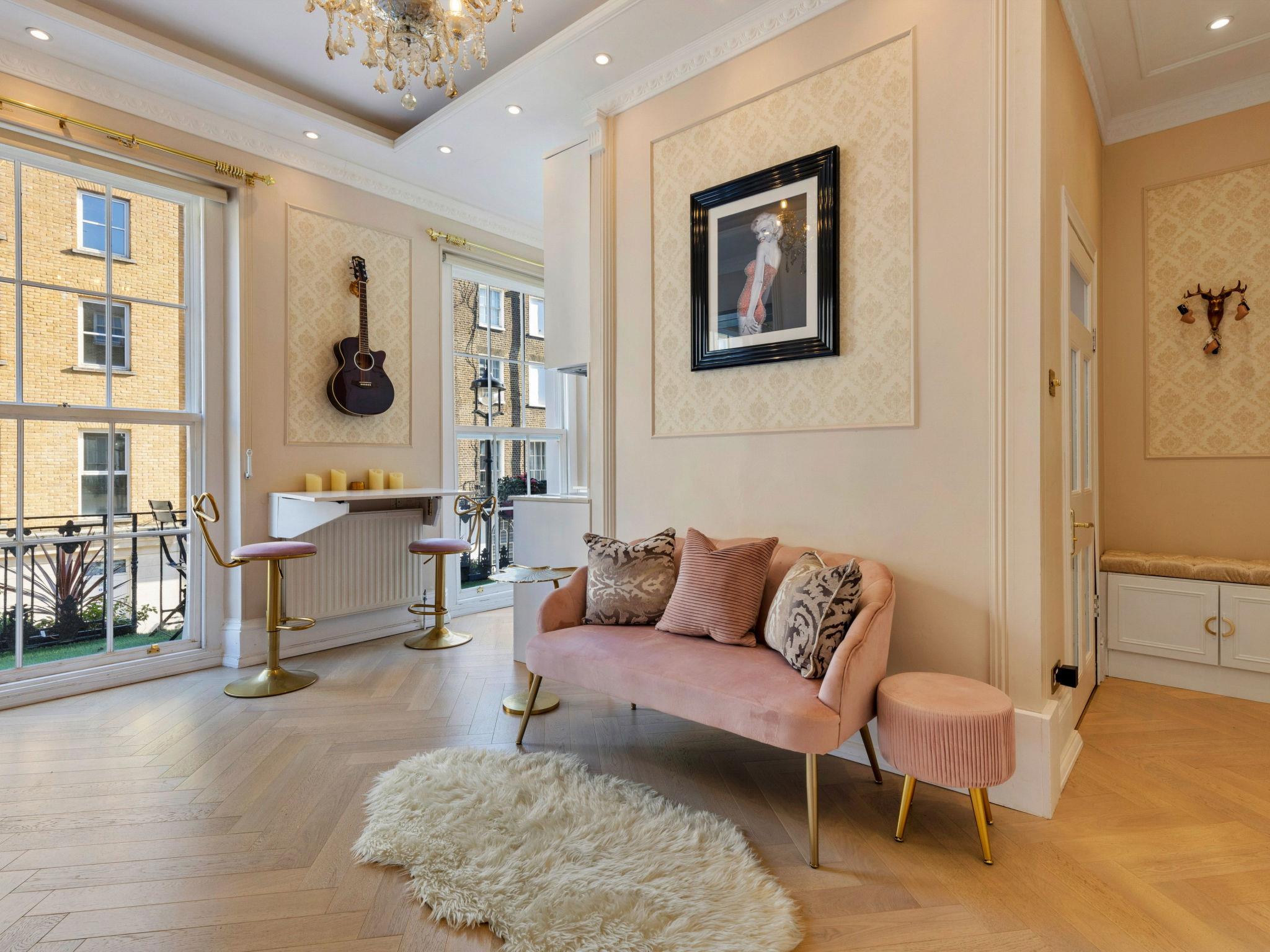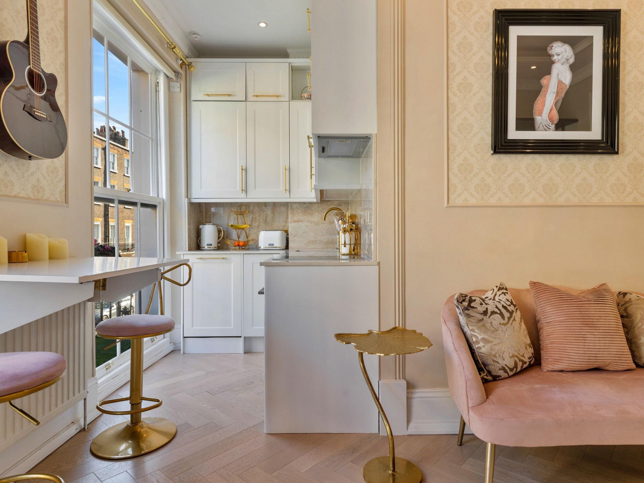 "The Marylebone Marilyn", 2-room apartment 36 m2 on 1st floor. Object suitable for 2 adults. Living room with TV. 1 room with 1 french bed. Kitchen (oven, dishwasher, toaster, kettle, microwave, freezer). Bath/WC. Balcony. Facilities: washing machine, dryer, iron, hair dryer. Internet (WiFi, free). Please note: non-smokers only.