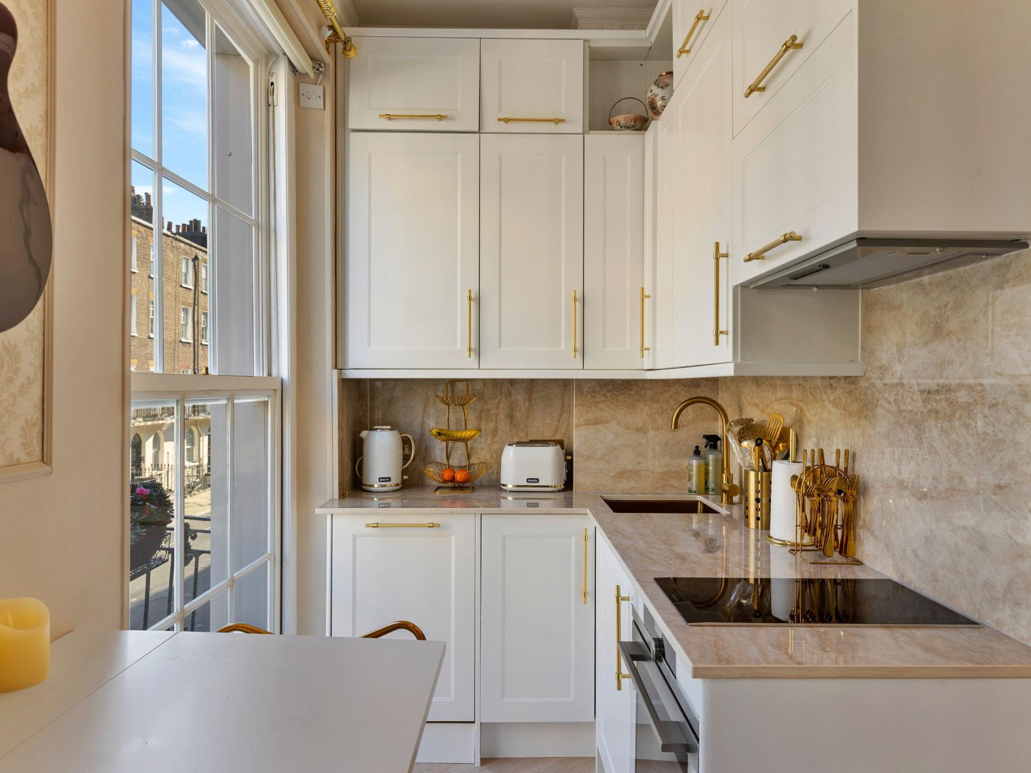 London: Apartment block. Public parking. Restaurant 100 m, railway station 161 m.