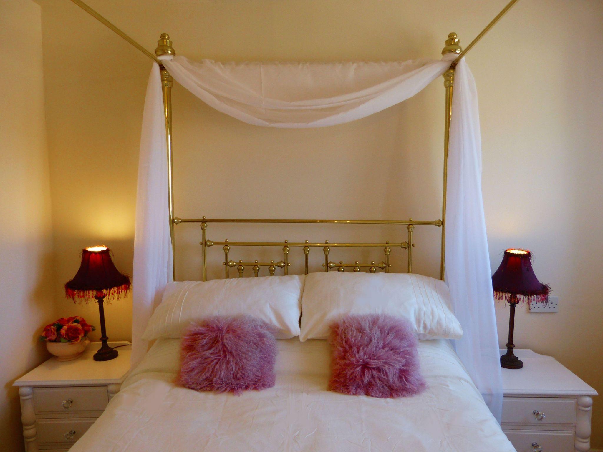 There are two floors with a double and a single bedroom and a bathroom on the first floor. The double room features a four poster bed, wardrobe and chest, the single room has a period style single bed, built in wardrobe and chest. The bathroom is equipped with a bath tub with shower over, toilet and wash basin.