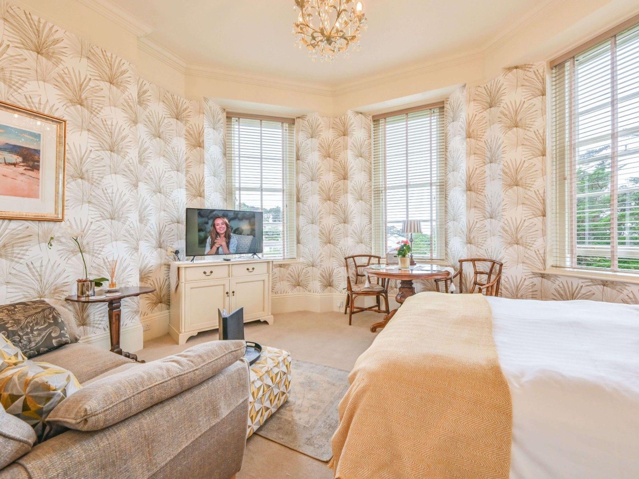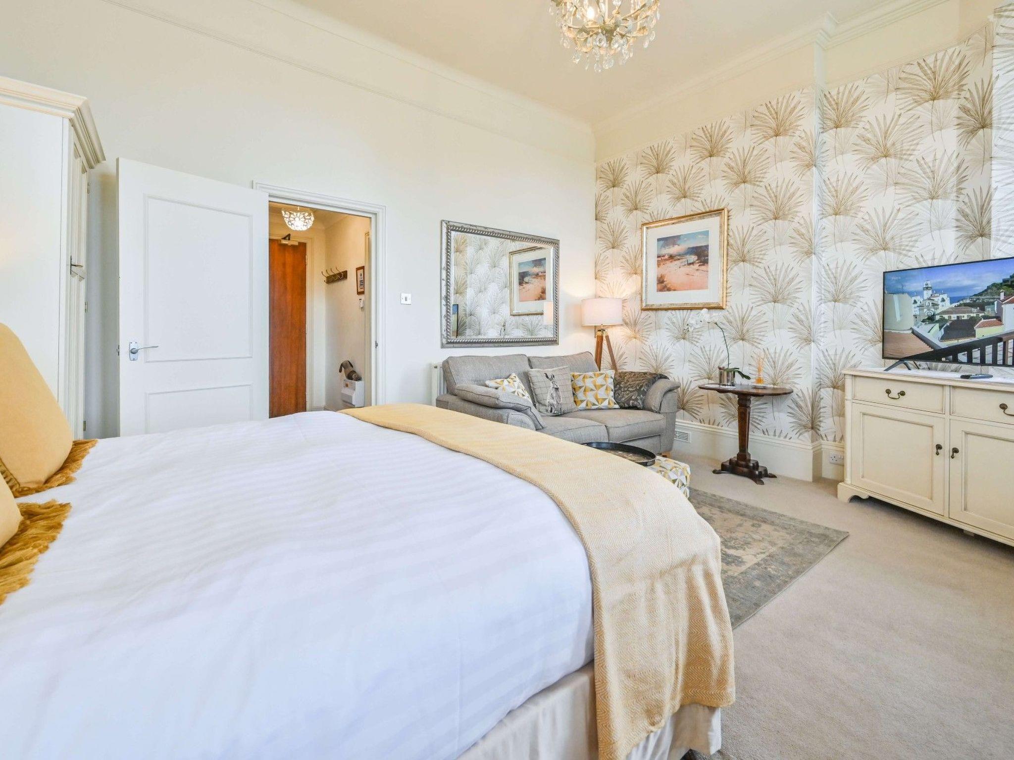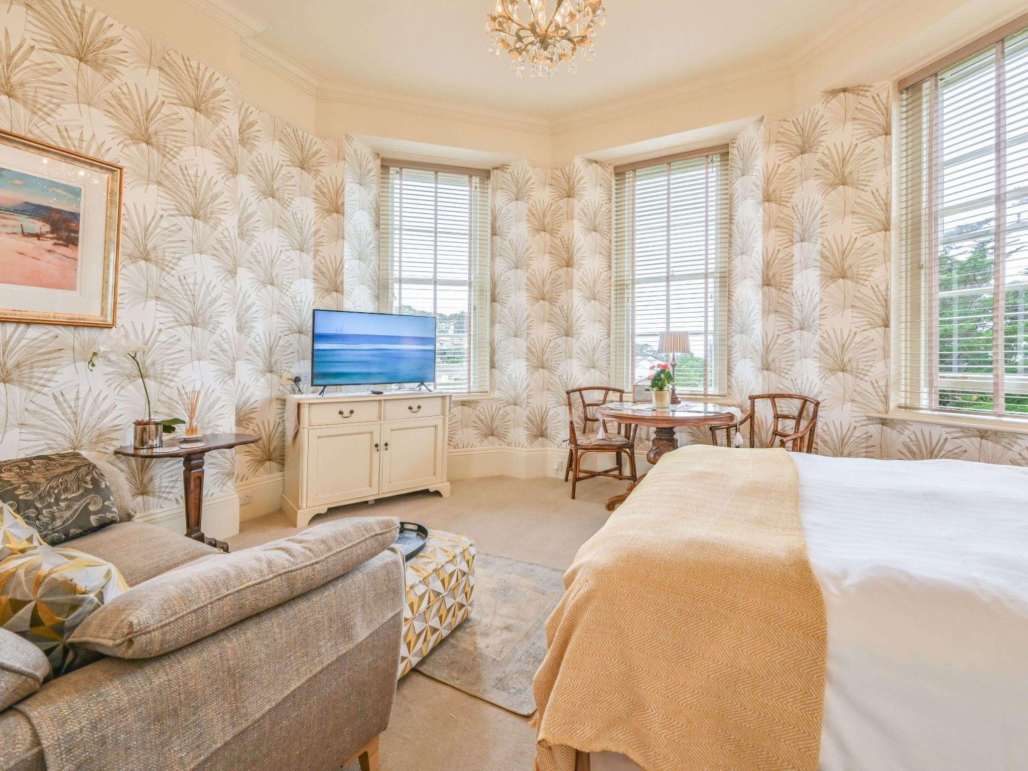 Spacious First Floor Studio Apartment with distant sea glimpses The studio apartment is located on the first floor of the grand Victorian villa which was built for one of Torquay's Members of Parliament. It is accessed via the grand sweeping staircase and the hallways that feature ornate original plaster work. The building itself is located in the Wellswood area of Torquay. This is a desirable, leafy residential area just a few minutes' drive from Torquay harbour and town centre. Beaches and coves are also within easy walking distance as is the area locally known as "Wellswood Village" which has wonderful amenities such as a pub, delicatessen, patisserie, pharmacy, post office, beauty salons, bistro, cafe, restaurant, boutique, florist and much much more. It is ideally placed to take advantage of all that the English Riviera has to offer including the World Famous Kent's Cavern which is just a ten minute walk from the apartment. Other local attractions include Babbacombe Model Village, Torre Abbey, Agatha Christie's house at Greenway, Torquay Museum and Paignton Zoo.