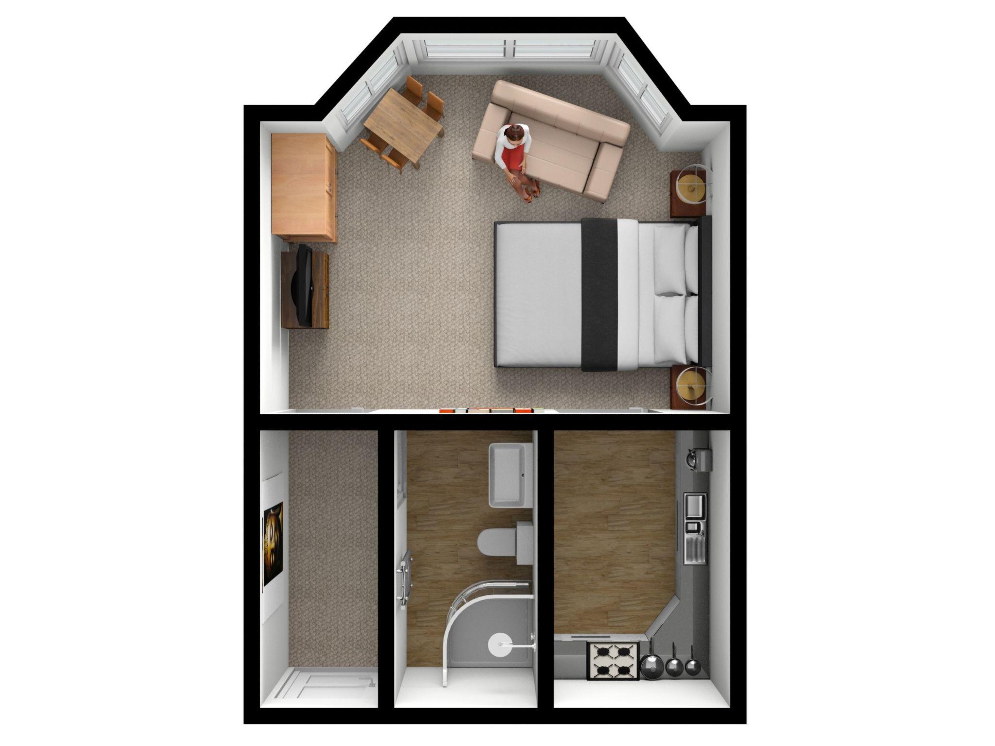 - Number of bedrooms: Studio apartment (no separate bedroom)