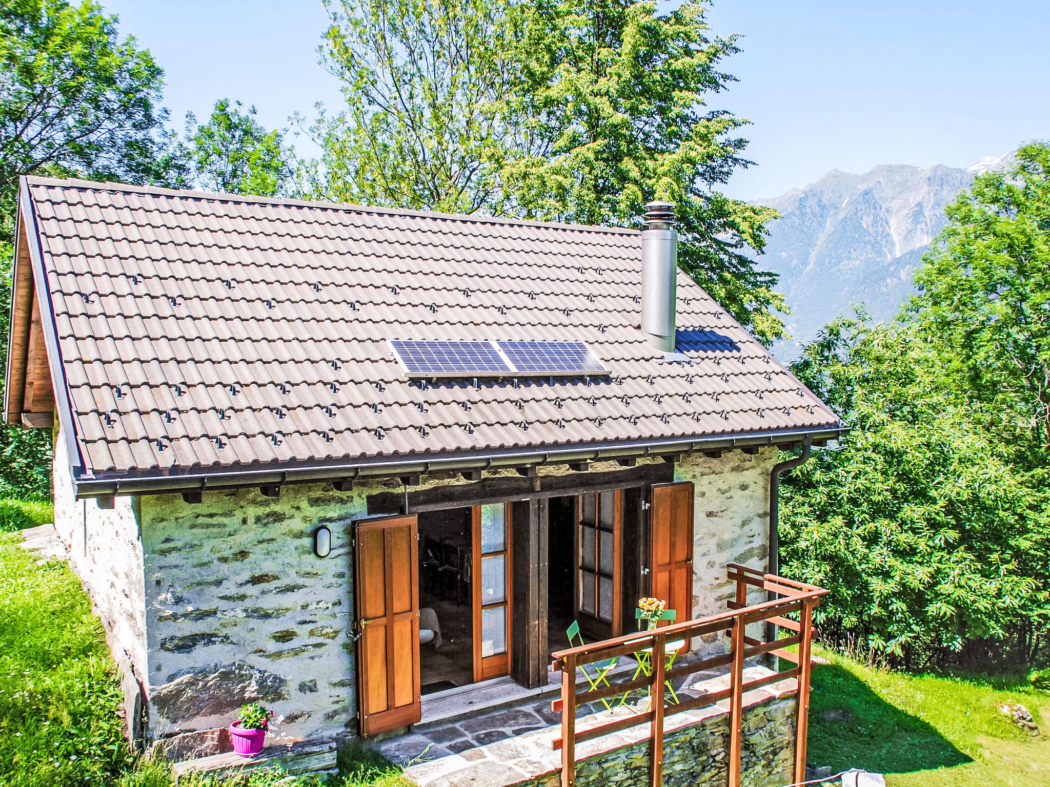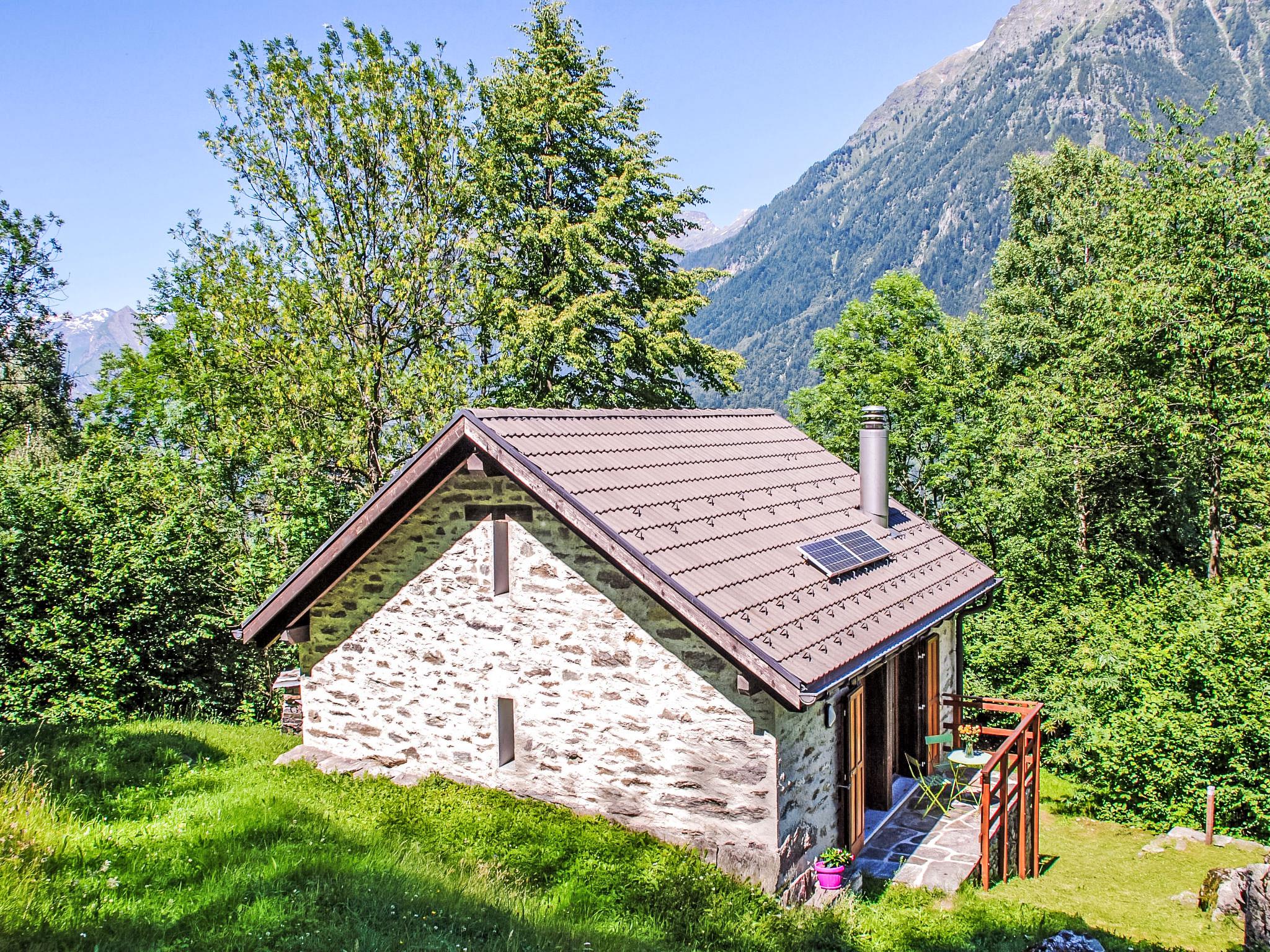 Corzoneso 10 km from Malvaglia: Note: Power is supplied by a solar panel and generator. Stove, boiler and fridge are gas-operated. Electrical appliances over 250W can not be operated! small, cosy single-family house "Rustico L'Hibou", 950 m a.s.l., surrounded by trees, meadows and fields. In the district Valle di Blenio, in a secluded, quiet, sunny position, in a cul-de-sac, in the woods. Private: natural state property 350 m2. Terrace, garden furniture. In the house: storage room for bicycles. Motor access to the house (300 m via unmade road, mountain road). 50 m footpath to the house. Parking. Grocery 2 km, supermarket 6 km, restaurant 6 km, bus stop "Cumiasca Chiesa" 900 m, railway station "Biasca FFS - SBB" 18 km. Riding stable 8 km, walking paths from the house 5 m, cable car 10 km. Nearby attractions: Museo della Valle di Blenio, Chiesa di Negrentino, Archivio Donetta, Castelli di Bellinzona UNESCO, Castello di Serravalle, Splash & Spa, Tamaro. Well-known lakes can easily be reached: Lago di Luzzone, Lago Retico, Lago Maggiore (Locarno), Lago di Lugano. Hiking paths: Valle di Blenio, Nara, Val Malvaglia, Lucomagno, Passi alpini, Strada alta, nella Leventina. Please note: car recommended. Baby equipment on request (extra). Animals in the neighbourhood.