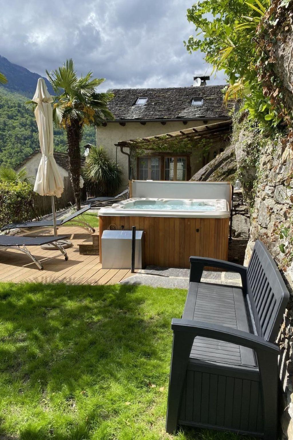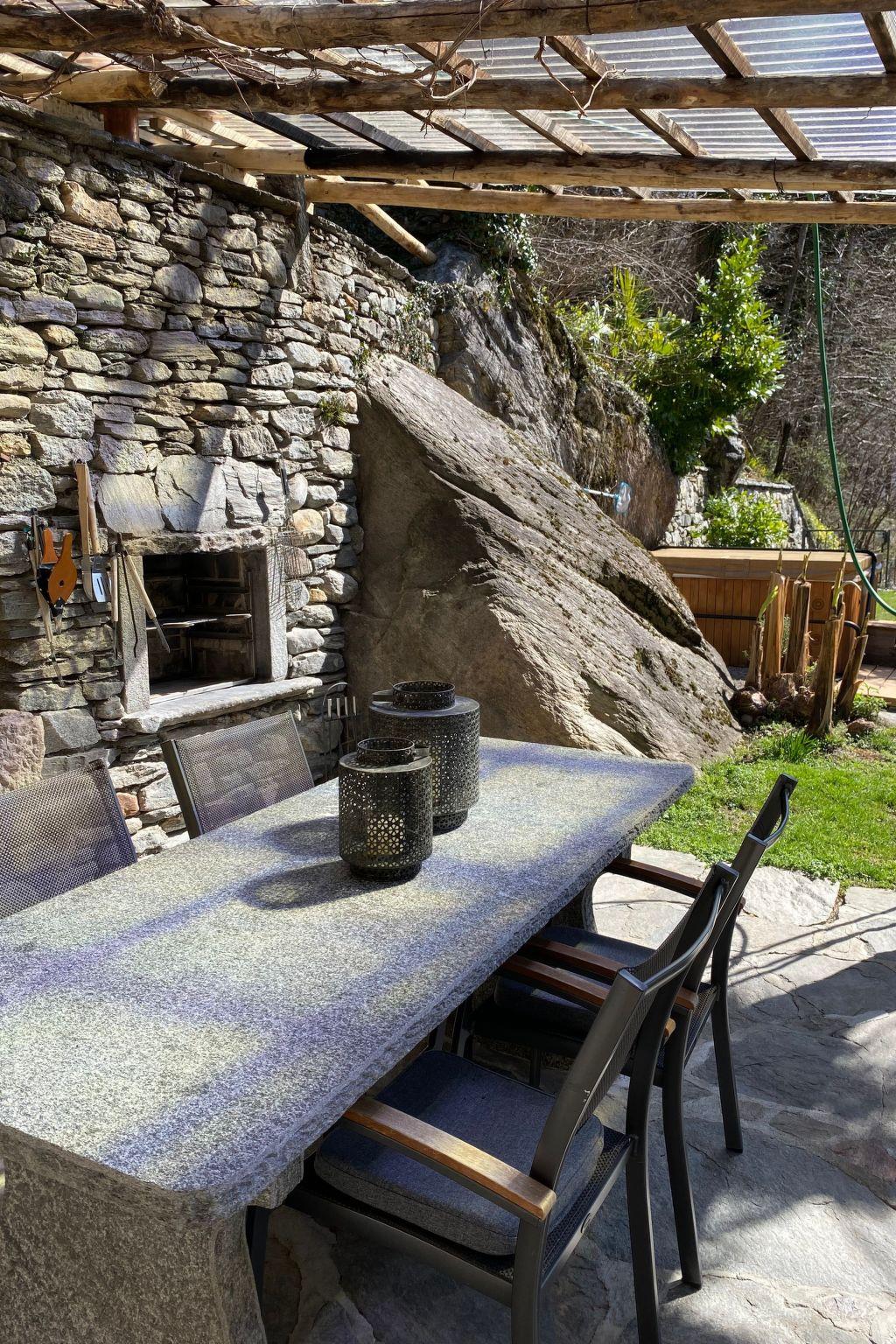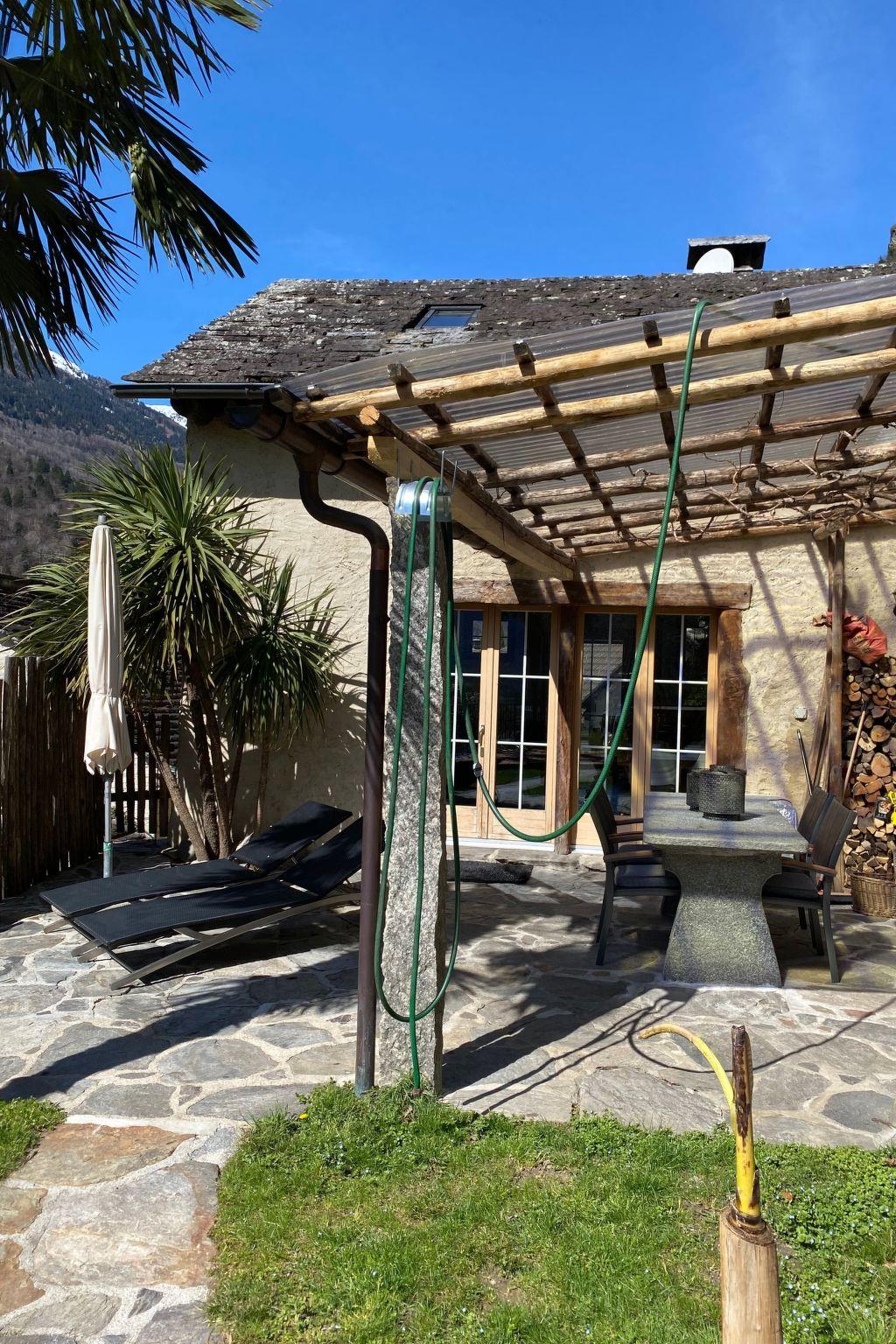 Newly built Top - Rustico, comfortable and stylishly furnished, beautiful garden with panoramic view, outdoor fireplace, pergola, located in the beautiful old village of Dongio (Val Blenio), Dongio is located in the upper Ticino 8 km from Biasca towards the Lukmanier Pass, many hiking possibilities, swimming in the river, skiing, cross-country skiing, mountain tours or just relax. Ideal also with dog, many walking possibilities and everywhere bigger or smaller rivers to drink water or to take a cool bath. In the secluded garden there is a heated whirlpool with massage jets (in operation all year round, even in winter). Outdoor sauna, 4 seats.