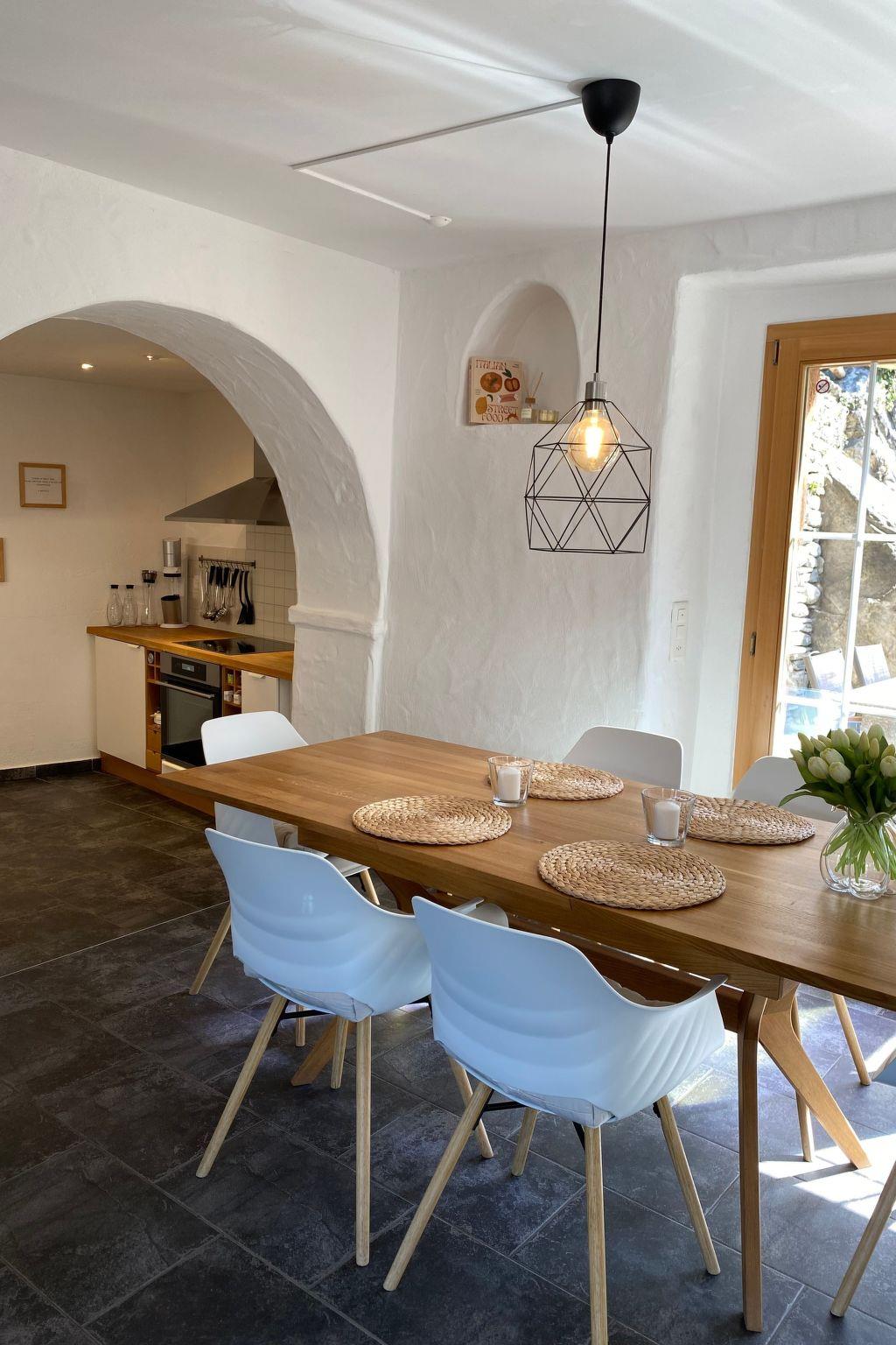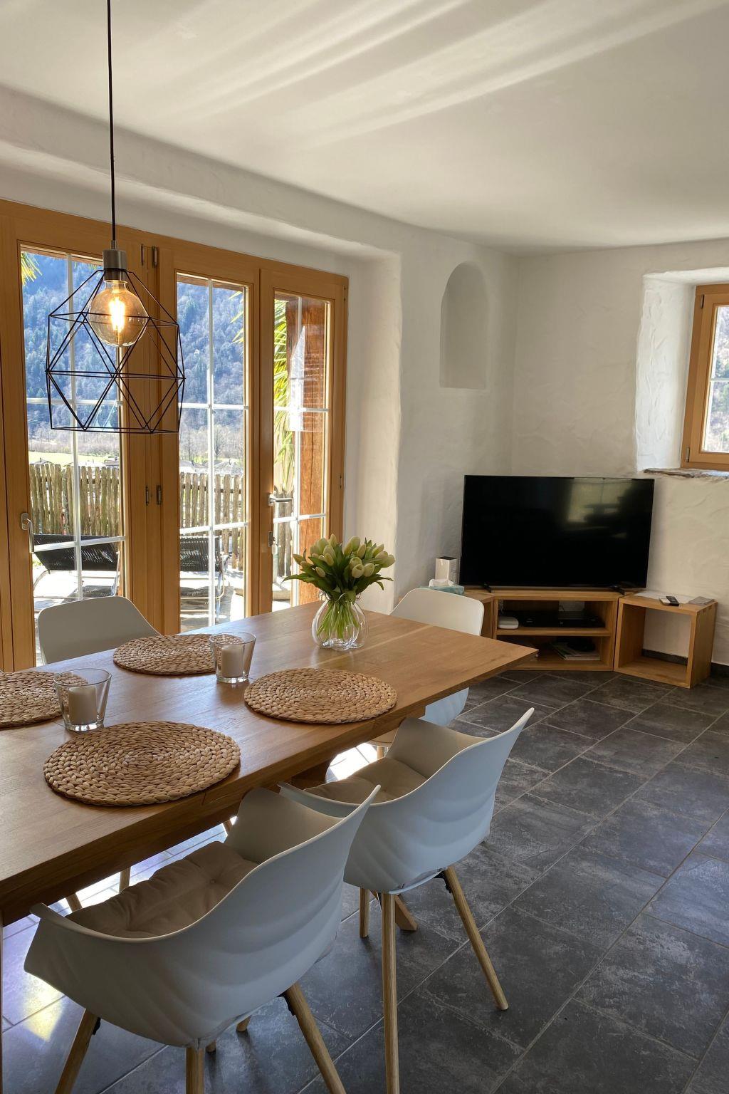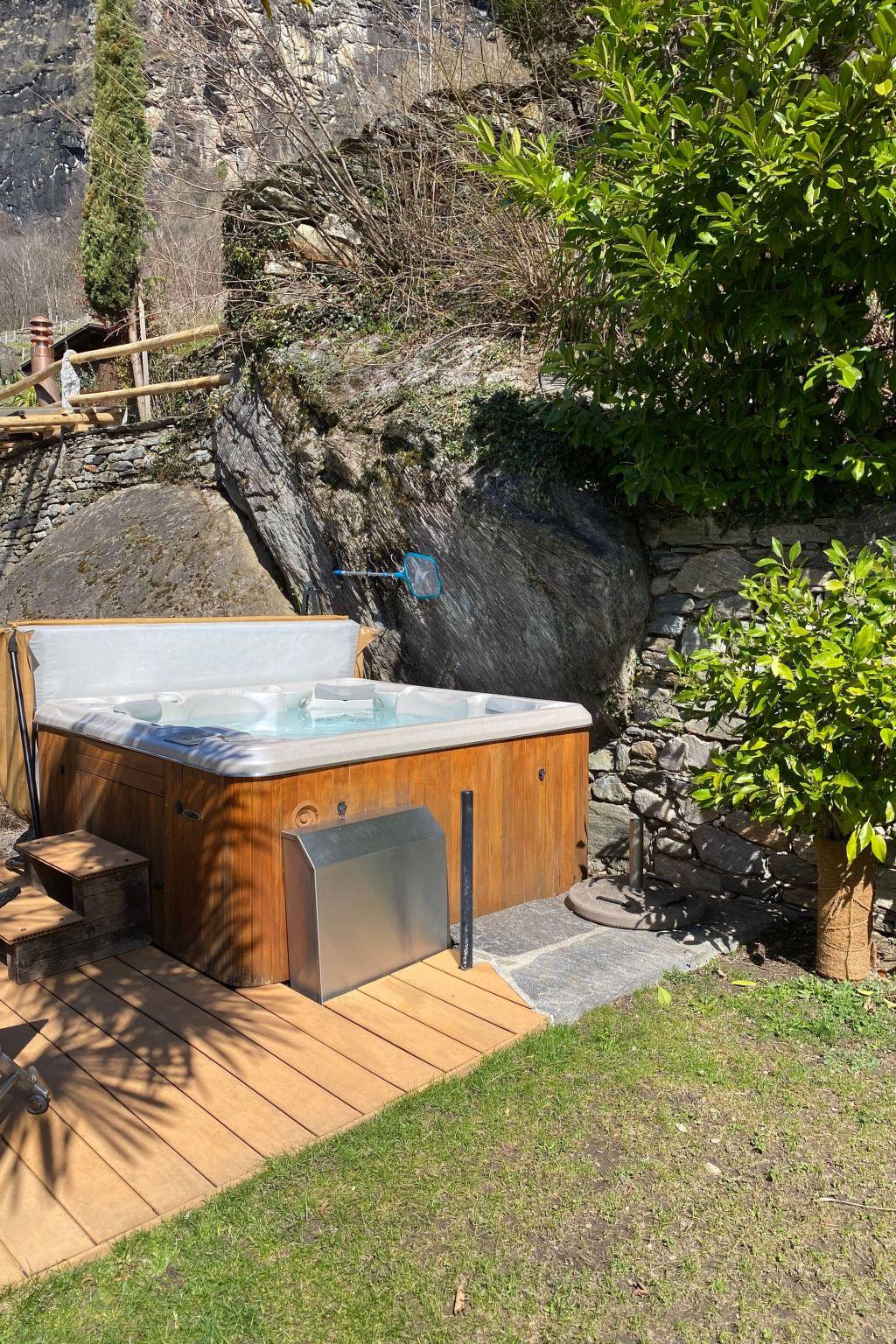 Newly built Top - Rustico, comfortable and stylishly furnished, beautiful garden with panoramic view, outdoor fireplace, pergola, located in the beautiful old village of Dongio (Val Blenio), Dongio is located in the upper Ticino 8 km from Biasca towards the Lukmanier Pass, many hiking possibilities, swimming in the river, skiing, cross-country skiing, mountain tours or just relax. Ideal also with dog, many walking possibilities and everywhere bigger or smaller rivers to drink water or to take a cool bath. In the secluded garden there is a heated whirlpool with massage jets (in operation all year round, even in winter). Outdoor sauna, 4 seats.