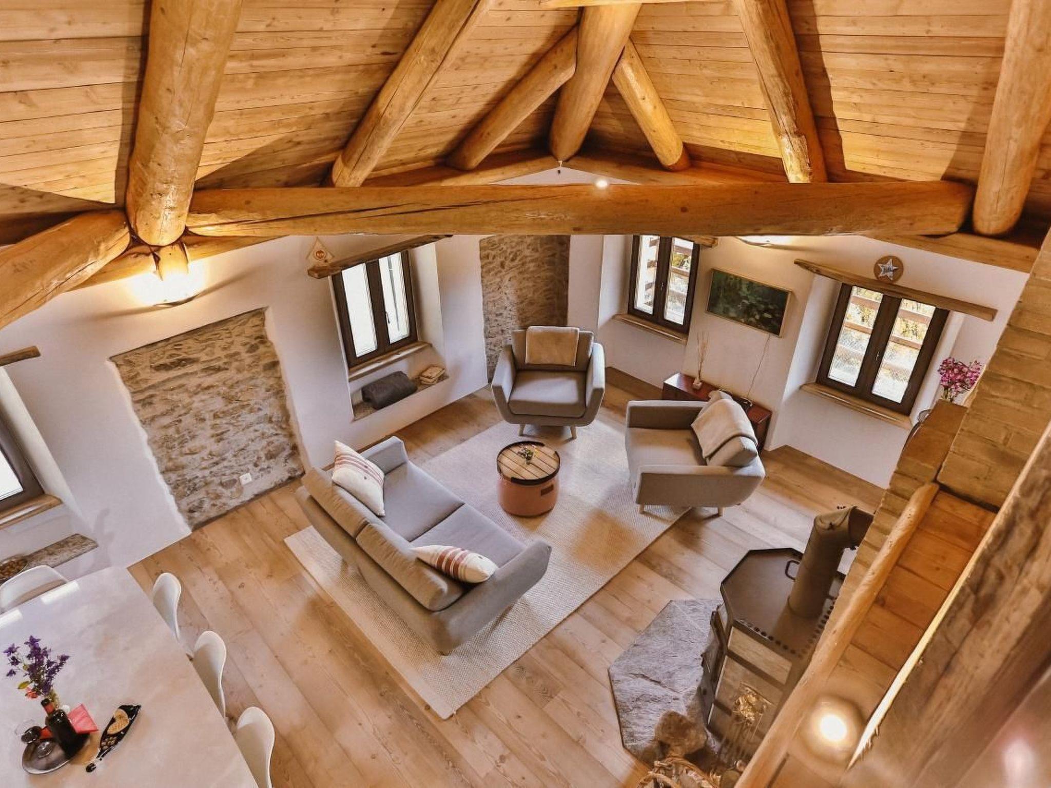 The layout is structured on two levels with an important open loft in the centre connected by an antique granite staircase. The first level houses the solid wood kitchen, the spacious living room, the master bedroom and the bathroom with a separate additional WC. The second level houses a large loft used as a reading room and a special attic room with a round bed, a third extra bed and a view of the starry sky thanks to two special ceiling windows. The flat also has an external balcony (typical period terrace) for exclusive use with a magnificent view of the panorama and the surrounding mountains. The building's ancient vaulted cellars are also accessible and offer the possibility of serving some local delicacies (cheeses, wines, etc.). From here it is possible to reach and enjoy the common garden of the house.