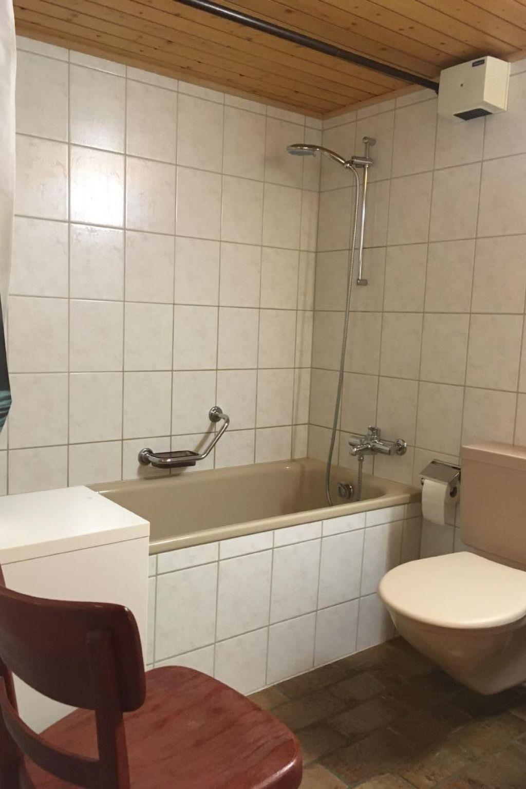 3.5 room flat in the basement of an apartment building. Living space: 93m2. Bath/shower/WC. Bedroom with 2 single beds, bedroom with 3 single beds, a cot can be added if desired. Bed linen is provided. Living/dining kitchen with oven, large refrigerator, dishwasher and extensive cookware; kitchen towels are provided. In the large living room with cable TV, WLAN and radio there is a cosy sitting area and a table with 6 chairs. Directly from the living room you come to a terrace with seating and fireplace. A large parasol can be set up if required.