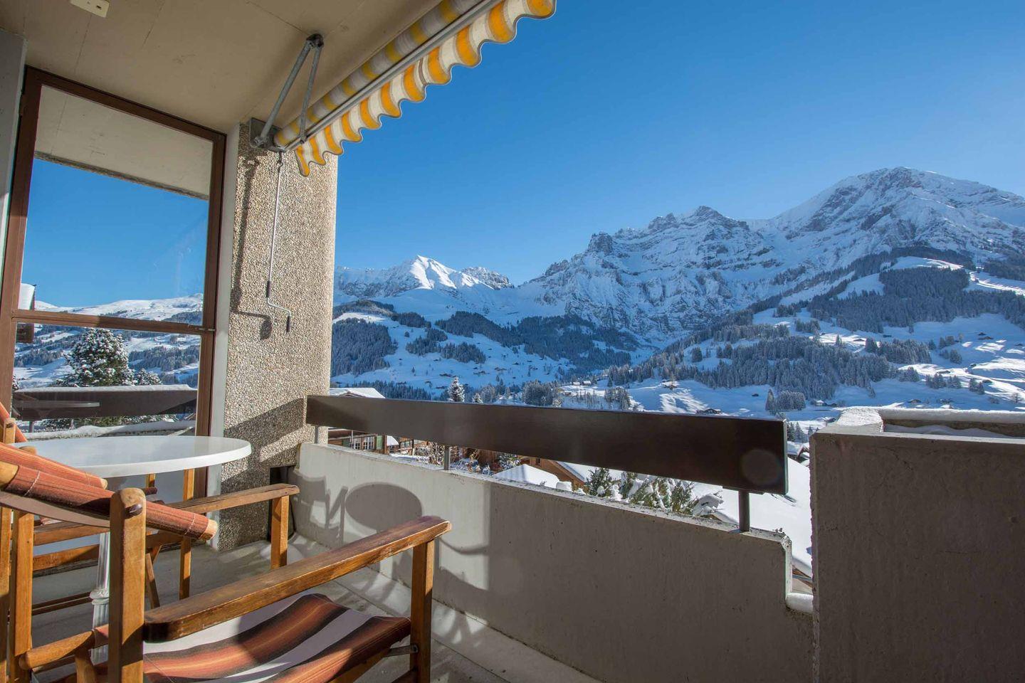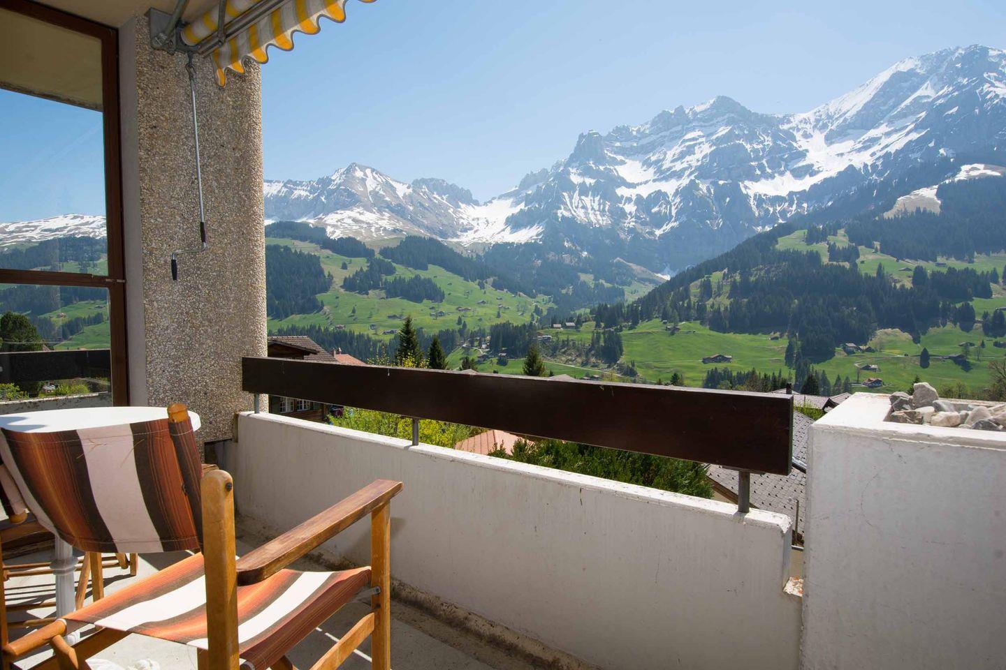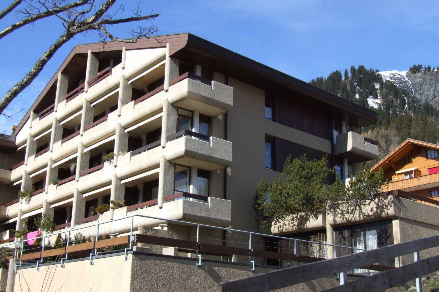 Die 3-Sterne Wohnung befindet sich im Erdgeschoss des Ferienhauses, nur rund fünfhundert Meter vom Dorfzentrum entfernt. Das grosse, helle Wohnzimmer ist eingerichtet mit einem Esstisch für 4 bis 5 Personen, einer gemütlichen Sitzgruppe, TV, Radio und W-LAN. Von hier gelangen Sie auf den Balkon mit herrlicher Aussicht auf die Berge von Adelboden. Zwei Schlafzimmer, eines mit einem Doppelbett und eines mit einem Etagenbett, bieten 4 Personen Platz. Es sind grosse Schränke und genügend Abstellmöglichkeiten vorhanden. Zum Schlafzimmer mit Doppelbett gehört ein weiterer Balkon. Die offene Küche ist ausgestattet mit Kochstelle, Backofen, Geschirrspüler und Kühlschrank. Im Bad finden Sie Waschbecken, Dusche und WC. Ein Garagenplatz mit Lift zur Wohnung und ein geheizter Ski-Raum sind ebenfalls vorhanden. Der Ski- und Ortsbus hält vor dem Haus.