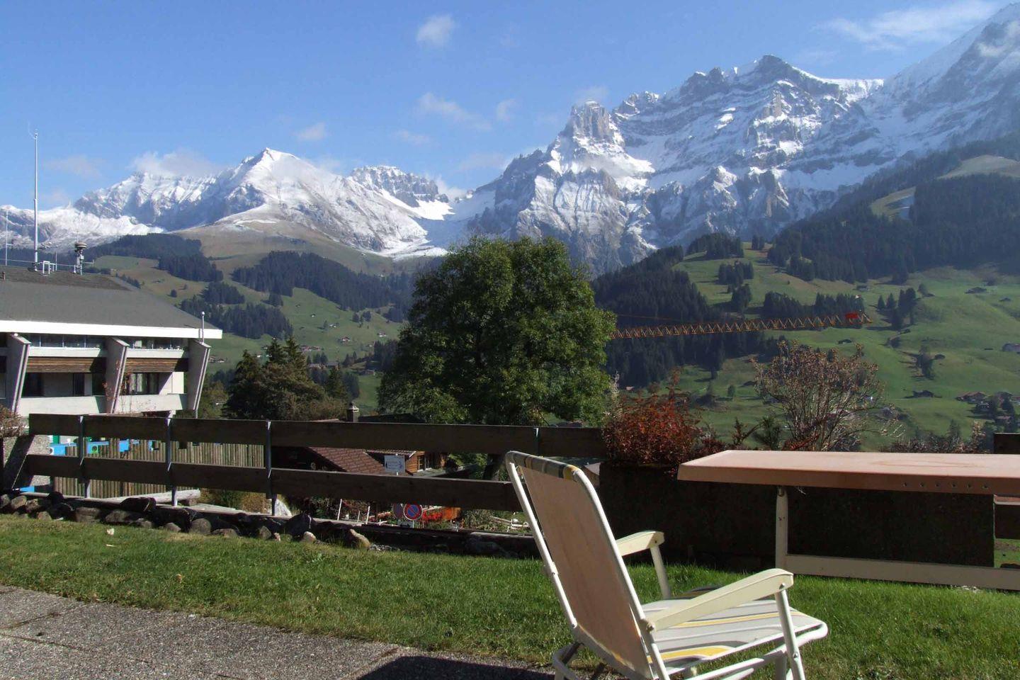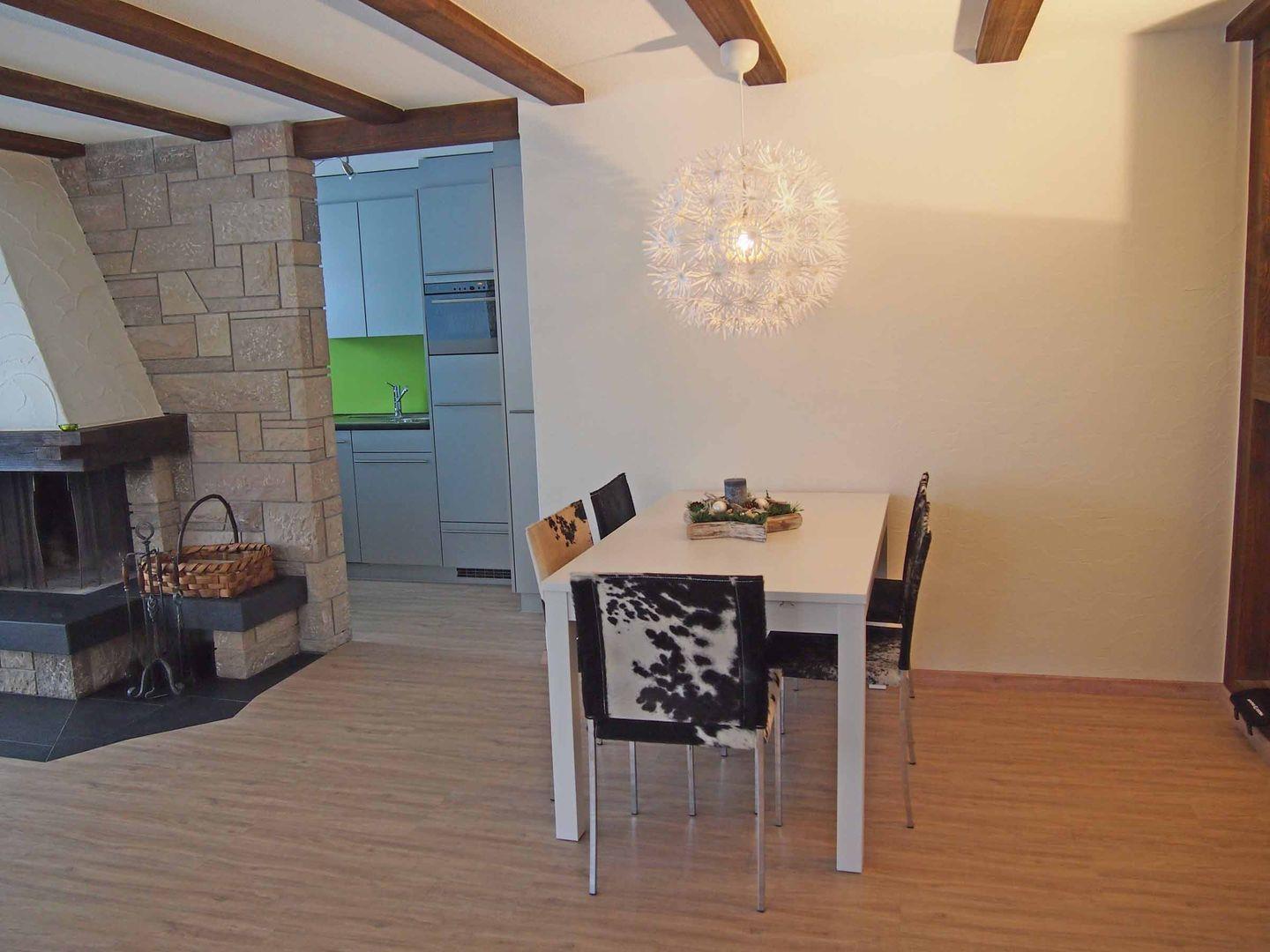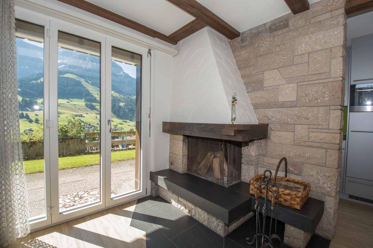 Im Parterre des Chalet Helios, nur wenige Meter von der Dorfstrasse entfernt und trotzdem ruhig gelegen, befindet sich die neu renovierte 4 Zimmer Ferienwohnung. Drei Schlafzimmer, eines mit zwei Einzelbetten, eines mit Etagenbett und eines mit einem Doppelbett, bieten Platz für 5-6 Personen. Der grosse helle Wohnraum mit Sitzgruppe, Esstisch für 6 Personen, TV/DVD, Radio/CD, Internetzugang und Cheminée, lädt ein für gemütliche Abende in der Familie. Vom Wohnzimmer gelangen Sie auf den Gartensitzplatz mit herrlicher Aussicht auf die Berge und den Wasserfall. Die Küche ist mit allem ausgerüstet was Sie brauchen: Kochstelle, Backofen, Mikrowelle, Geschirrspülmaschine, Kühlschrank, usw. Das Badezimmer ist ausgestattet mit Dusche, WC und Lavabo. Abstellraum und Garagenplatz gehören ebenfalls zur Wohnung. 100 Meter entfernt befindet sich die Dorfstrasse mit den verschiedensten Restaurant und Einkaufsmöglichkeiten. Zu Fuss erreichen Sie in 5 Minuten die Bergbahnen und gleich vor dem Haus finden Sie die Freizeit- und Sportarena, einen Kinderskilift und die Möglichkeit zum Rodeln.