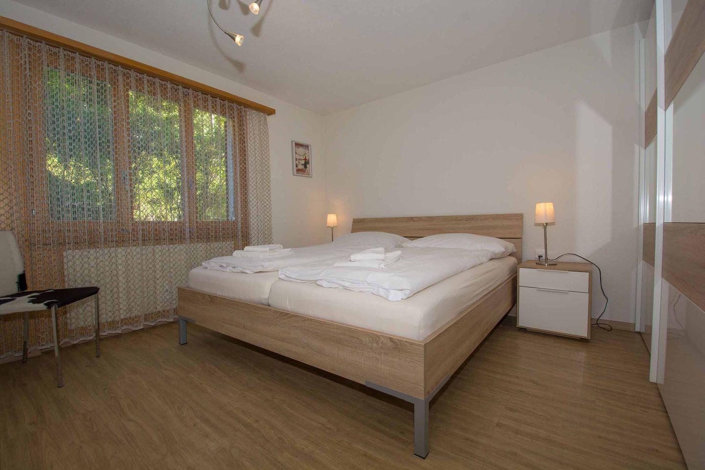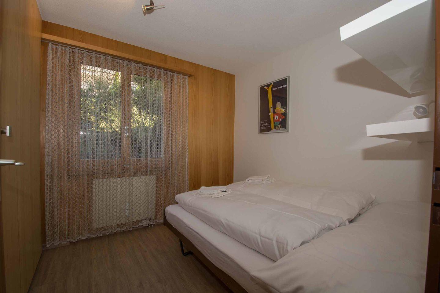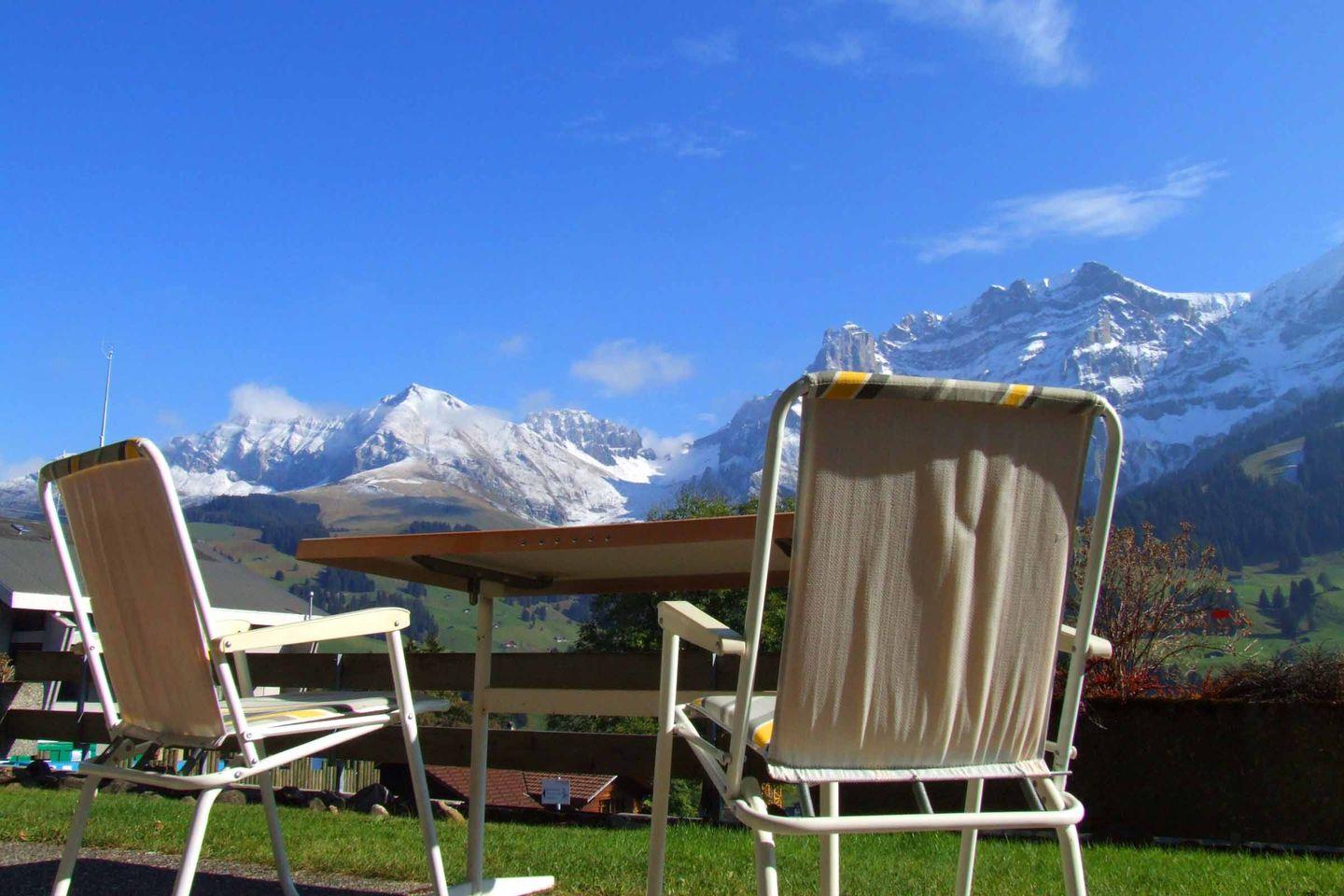 Im Parterre des Chalet Helios, nur wenige Meter von der Dorfstrasse entfernt und trotzdem ruhig gelegen, befindet sich die neu renovierte 4 Zimmer Ferienwohnung. Drei Schlafzimmer, eines mit zwei Einzelbetten, eines mit Etagenbett und eines mit einem Doppelbett, bieten Platz für 5-6 Personen. Der grosse helle Wohnraum mit Sitzgruppe, Esstisch für 6 Personen, TV/DVD, Radio/CD, Internetzugang und Cheminée, lädt ein für gemütliche Abende in der Familie. Vom Wohnzimmer gelangen Sie auf den Gartensitzplatz mit herrlicher Aussicht auf die Berge und den Wasserfall. Die Küche ist mit allem ausgerüstet was Sie brauchen: Kochstelle, Backofen, Mikrowelle, Geschirrspülmaschine, Kühlschrank, usw. Das Badezimmer ist ausgestattet mit Dusche, WC und Lavabo. Abstellraum und Garagenplatz gehören ebenfalls zur Wohnung. 100 Meter entfernt befindet sich die Dorfstrasse mit den verschiedensten Restaurant und Einkaufsmöglichkeiten. Zu Fuss erreichen Sie in 5 Minuten die Bergbahnen und gleich vor dem Haus finden Sie die Freizeit- und Sportarena, einen Kinderskilift und die Möglichkeit zum Rodeln.