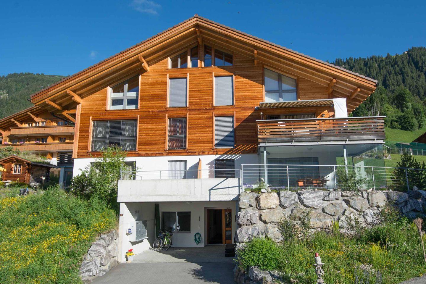 Die neue und erstklassige 4 Stern Ferienwohnung befindet sich an ruhiger Lage, nicht weit vom Dorfzentrum. 4 Schlafzimmer bieten bis zu 8 Personen Platz. Im geschmackvoll eingerichteten und hellen Wohnraum finden Sie eine Polstergruppe, TV, Internet, einen Schwedenofen und einen Esstisch für 8 Personen. Aus den grossen Fenstern des Wohnzimmers, wie auch von der grosszügigen Terrasse, geniessen Sie eine herrliche Aussicht auf die Berge, den Wasserfall und die Ski Weltcuppiste von Adelboden. Die moderne Küche ist mit allem ausgerüstet was Sie brauchen: grosse Kochstelle, Backofen, Kühlschrank, Mikrowelle, Geschirrspüler, usw. Die Wohnung hat zwei Badezimmer, eines mit Badewanne, eines mit Dusche, beide mit WC und Lavabo. Zur Verfügung stehen ebenfalls Ski-und Abstellraum und Einstellhallenplatz. Die Ski/Orts-Bus Haltestelle ist 100 Meter vom Haus entfernt. 400 Meter entfernt befindet sich die Dorfstrasse mit den verschiedensten Restaurant und Einkaufsmöglichkeiten.