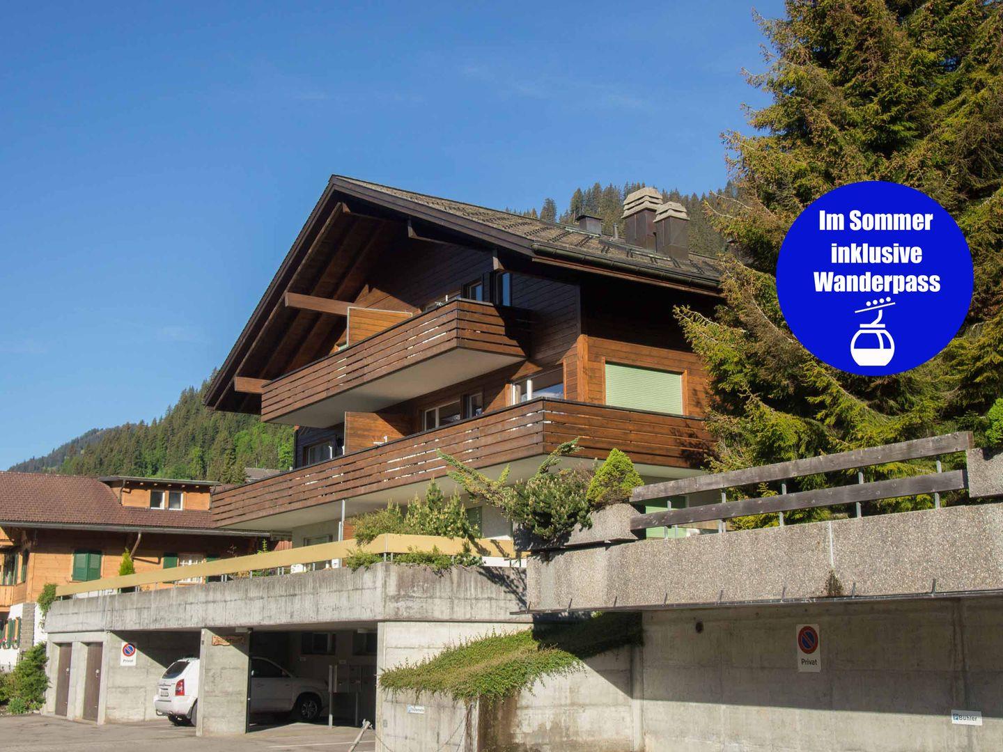 Nur wenige Meter von der Dorfstrasse entfernt und trotzdem ruhig gelegen, befindet sich die neu renovierte 3-Zimmer Ferienwohnung Titschermatte. Zwei Schlafzimmer mit je zwei Einzelbetten, bieten Platz für 4 Personen. Der helle Wohnraum mit Sitzgruppe, Esstisch für 6 Personen, TV/DVD, Radio, Internetzugang und Cheminée, lädt ein zu gemütlichen Abenden in der Familie. Vom Wohnzimmer gelangen Sie auf den Balkon mit herrlicher Aussicht auf die Berge und den Wasserfall. Die Küche ist mit allem ausgerüstet was Sie brauchen: Kochstelle, Backofen, Geschirrspülmaschine, Kühlschrank, usw. Das Badezimmer ist ausgestattet mit Badewanne, WC und Waschbecken. Abstellraum und Parkplatz gehören ebenfalls zur Wohnung. 100 Meter entfernt befindet sich das Dorfzentrum mit den verschiedensten Restaurants und Einkaufsmöglichkeiten. Zu Fuss erreichen Sie in 5 Minuten die Bergbahnen und gleich vor dem Haus finden Sie die Freizeit- und Sportarena, ein Kinderskilift und die Möglichkeit zum Rodeln.