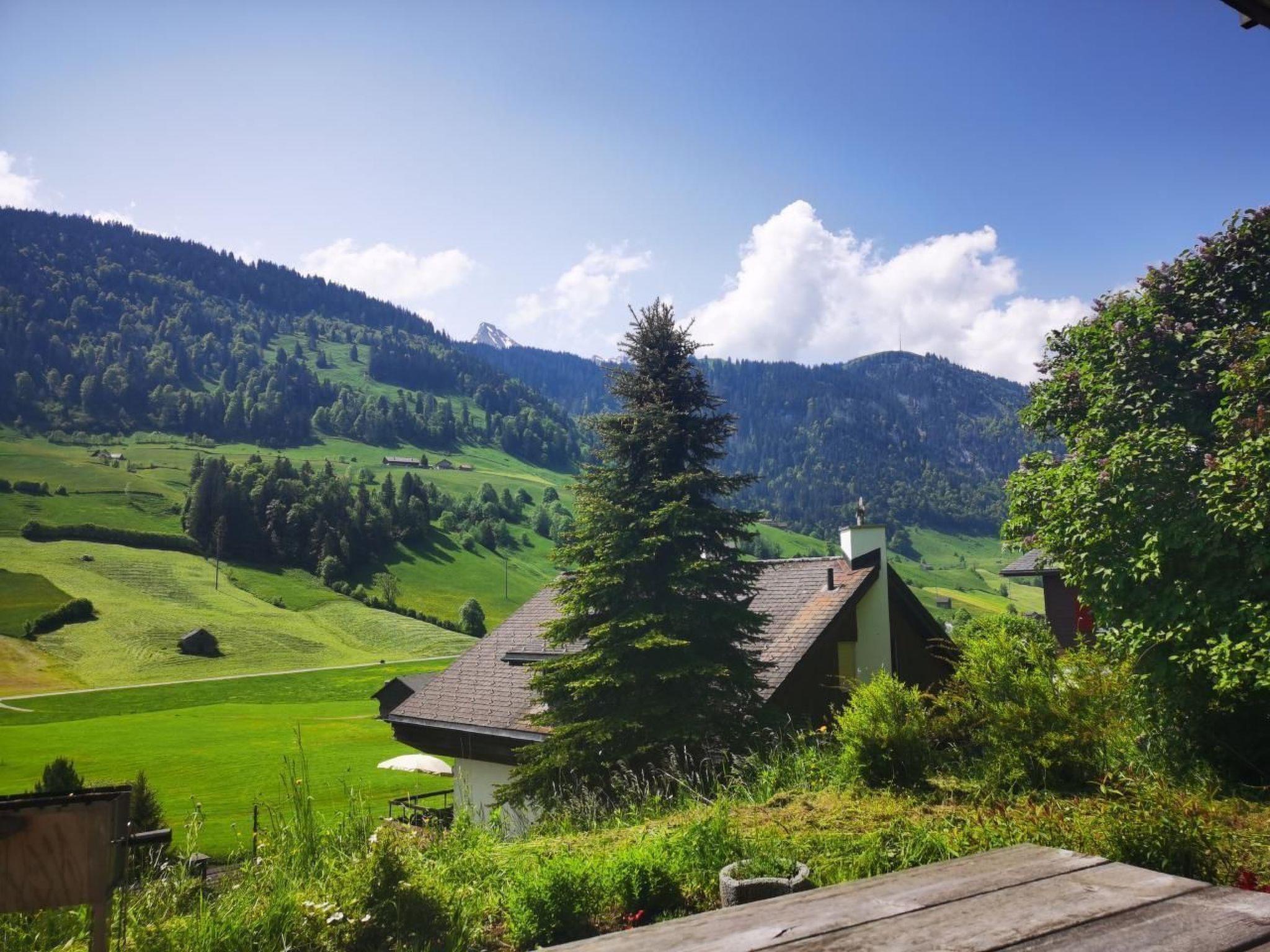 The apartment is located on the first floor of our vacation house with two separate apartments in Alt St. Johann in the beautiful Toggenburg in a quiet location opposite the Churfirsten. The apartment has 50 m2 and has a separate entrance and a sunny sitting area with a view of the ski slope and cross-country ski trail. The entire property can be enjoyed in peace alone, as we are only occasionally on site. The surrounding area is ideal for hiking, cycling and skiing. The accommodation Vacation apartment with two separate bedrooms, a large bathroom and a spacious connected living , dining and cooking area. The terrace with unobstructed views of the mountains is suitable for barbecuing and sunbathing or relaxing. The garage offers ample space for winter equipment or the bicycles. The covered staircase will bring you dry to the apartment in case of rain or snow. Access for guests There are two parking spaces and a small garage. Other important information The possible tourism tax in Wildhaus-Alt St. Johann is not included and will be charged additionally. We ask you to note that our beautiful vacation apartment is located at just under 1000 m above sea level in a quiet and elevated location with beautiful views of the surrounding mountains. Accordingly, due to the landscape, access from the parking lot is via a covered staircase (protected from rain, storms and snow) and rather unsuitable for people with walking and stair climbing limitations. The lift can be used for luggage after consultation and instruction. In addition, there is no tourism tax, which is included and must be paid on site. Information is available from the tourist office in Wildhaus.