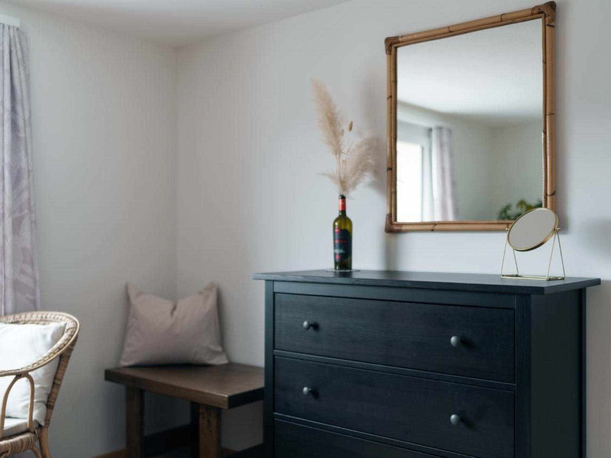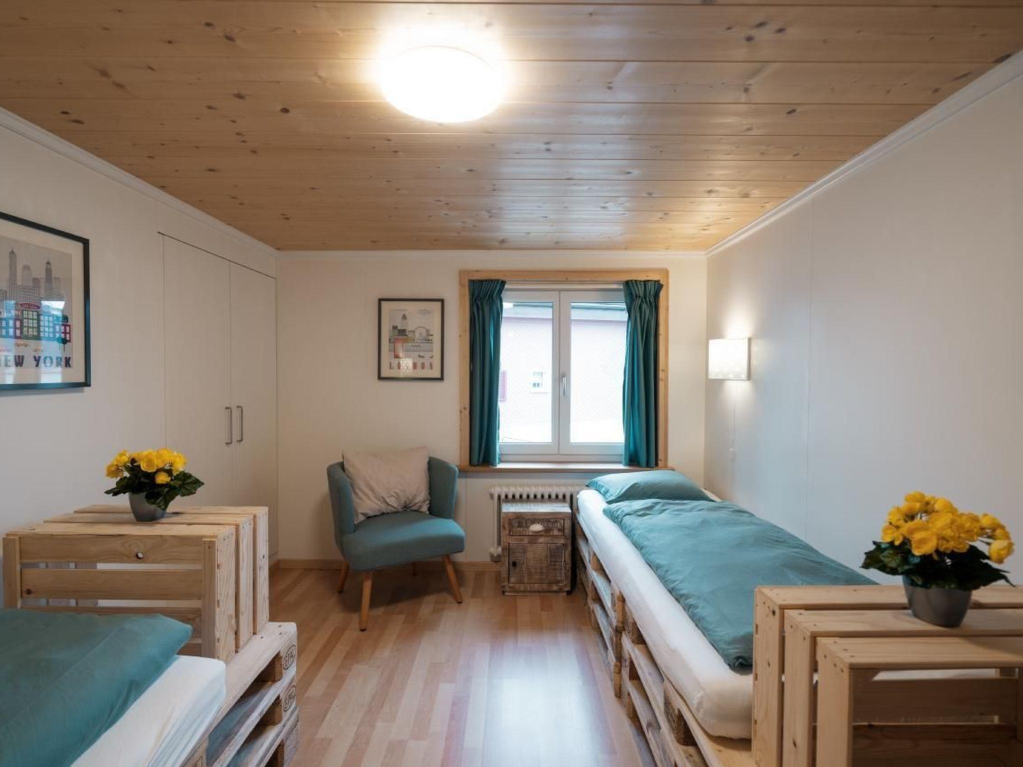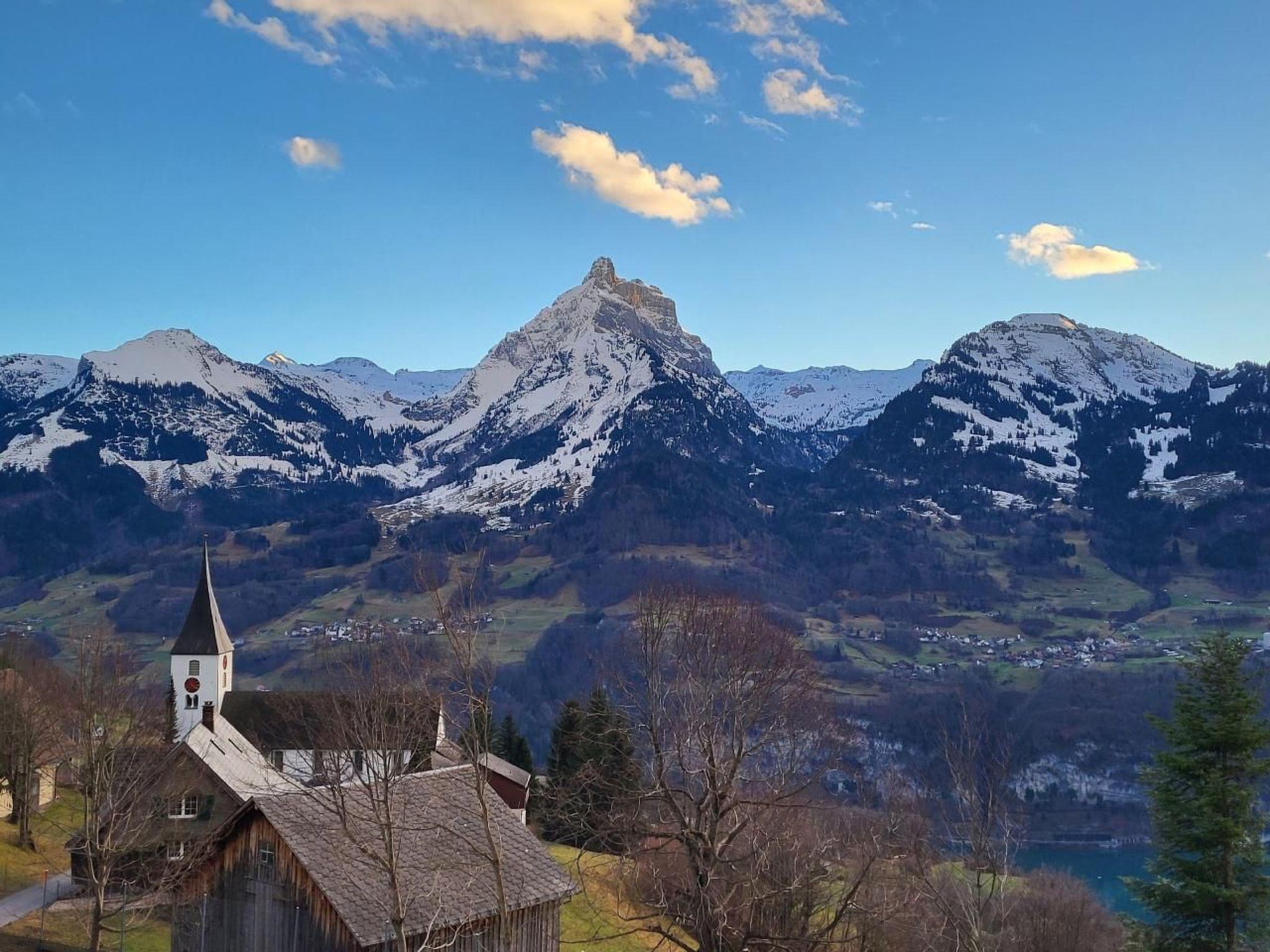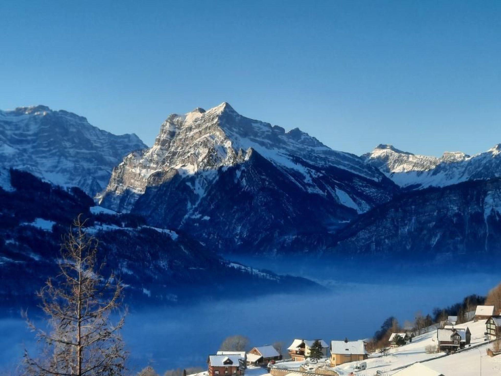 Welcome to Amden! "My brothers, friends and I absolutely loved the views from the balcony. The accommodation has a great location and is very spacious. There are a few supermarkets in the immediate vicinity. The chairlift is also just a few minutes' walk away. P.e.t.e.r. and V.e.r.e.n.a. were totally friendly and helpful! Whenever we had questions or needed anything, they helped us. Thank you for your hospitality! :)" LG S. December 2022 Relax with your family and friends in our 110m2 flat. We have a comfortable 5 room flat with 4 bedrooms with 2 beds each, 2 double beds and 4 single beds. From the living room, the balcony and the master suite you can enjoy beautiful sunsets over the mountains. The large dining table is ideal for fondue or raclette. The 4 bedrooms have different furnishings and designs. In the master bedroom there is a double bed with a view of the stars when conditions are clear. There are also 2 chairs with a small table and a chest of drawers. There is also enough space here for a baby cot, which we can provide. The 2nd room with a double bed is our panelled room, in which everything is made of wood and which feels very cosy. In this room we also have the traditional red and white chequered bed linen and curtains. In our pallet room there are 2 pallet beds that smell of fresh wood. This room is equipped with bed linen and curtains in turquoise. This room is also suitable for children. The children's room with 2 low beds also has red and white chequered bed linen and curtains as well as two beautiful pictures. The dining area with the huge table offers comfortable seating for all guests to enjoy a delicious fondue or raclette and toast. The living area is right next to the dining area and is furnished with 2 beautiful sofas and an armchair. Of course, there is also a TV, free WiFi and plants. You can relax on the balcony and end the evening with a beer or glass of wine, admire the sunset or grill something on the gas barbecue. The kitchen is fully equipped and there are always some basic foodstuffs such as sugar, coffee/tea, but also vinegar, oil, pepper, spices etc. in stock. The flat has a bathroom with bath, double washbasin and toilet. Towels and drying cloths are provided.