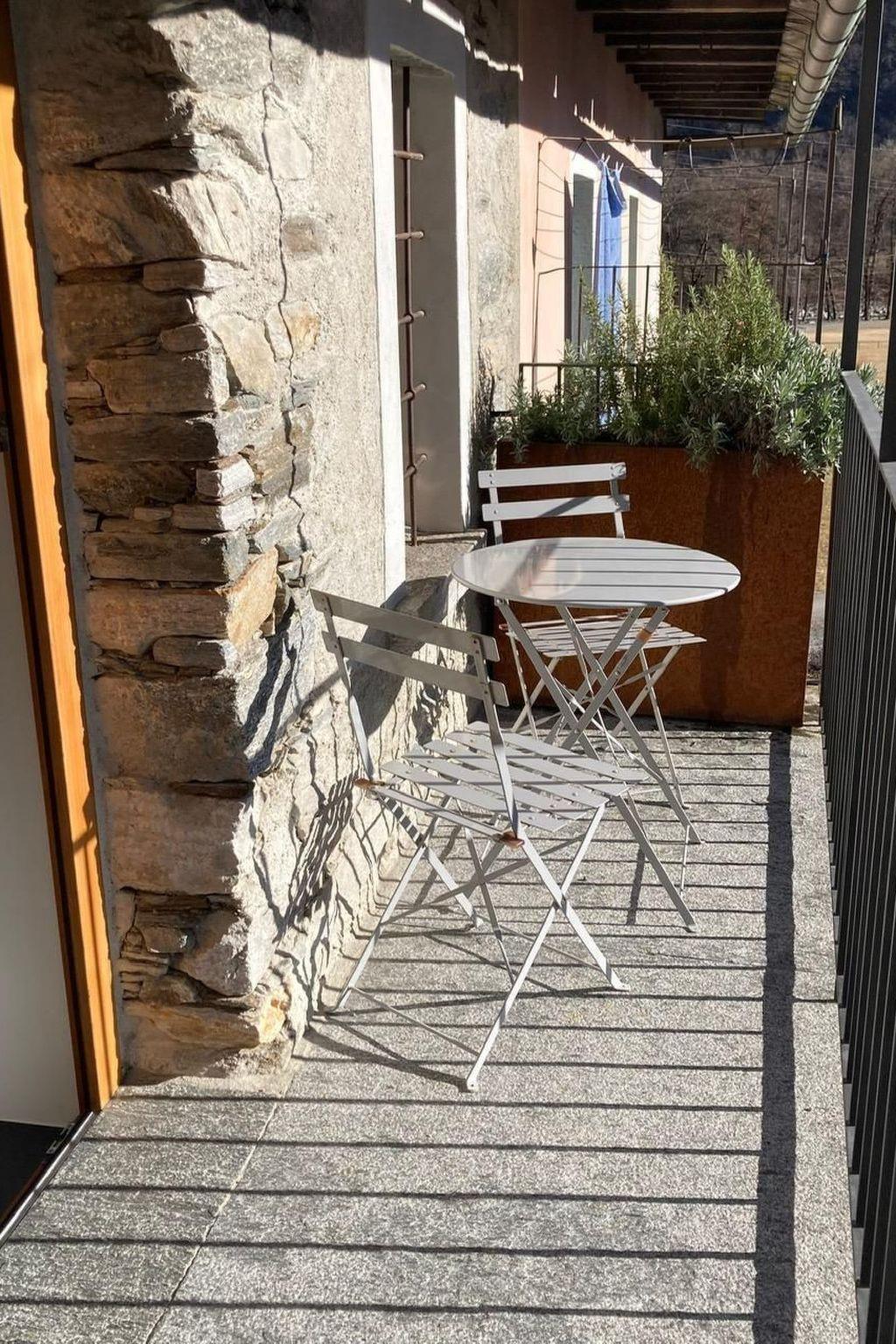 The apartment is in an old house, completely renovated in 2014, in the little village of Moghegno in the Maggia valley.4 ( 6 )people can stay confortably.This apartment is better for a family's holiday, in contact with the nature.On the main floor there is the entrance hall.On the first level there's a living room with a dining table, a couch which can be opened into a bed, therefore two people can comfortably sleep on it, cable TV (Bluewin TV), and naturally there is internet WI-FI. In the modern kitchen there is a dishwasher, fridge,microwave,toaster, coffee machine((Chicco d'Oro), tea kettle and every tool that serves the confort of the guests.On the second level there is the bedroom with a double bed ( 180x200), and the bathroom.In the bathroom there is a modern shower with glass paneling and a sink beside it with a big mirror and the hair dryerUpstairs there are two single beds (80x200) which can be naturally put beside each other to make a double bed.The house has a balcony which has a beautiful view of the village.The apartment is ideal for a relaxing holiday, faraway from the city and the traffic.During your stay, we will be always be available for question, or any other needs you may have.If you like walking and hiking, there's many beautiful mountains and hiking paths.In 5 minutes you can reach the Maggia river and have a refreshing swim in it.Bus stop, Supermarkets (Coop and Migros), Post office are a 5-10 minute walk from home.20 minute from Locarno and 15 from Cevio.Parking near by.The price includes, bedding, bath linen, kitchen linen, WI-FI.The holiday tax is not includes, to be paid on the spot.The final cleaning is 130 fr.Smoking in the house is prohibited.Animals are not allowed.