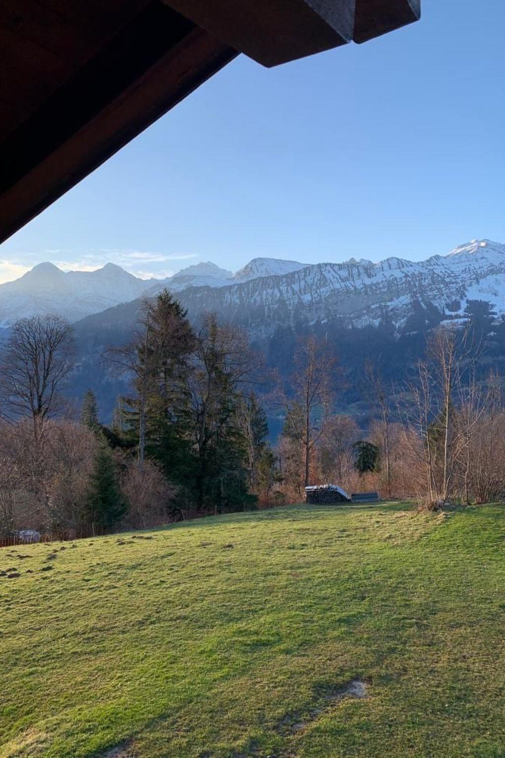 Newly renovated charming detached chalet next to Camping Wang with wonderful views of the Eiger Mönch and Jungfrau mountains. The chalet offers a beautiful living room and two bedrooms. The kitchen is fully equipped and there is a bathroom with shower. In the private garden you can barbecue in the fire bowl or relax on a deckchair. Chalet Felsli is located directly at Camping Wang - a small, natural farm campsite. The campsite has sheep, a playground and a neighbouring forest. Perfect for a family holiday. Our local mountain "Niederhorn" offers beautiful hiking possibilities, paragliding or scootering and in Interlaken there is a huge range of leisure activities such as excursions to Grindelwald, Lauterbrunnen, Top of Europe, Adventure or to the capital Bern or Lucerne in 1.5 hours and much more. We are 25 minutes away from Lake Brienz or Lake Thun. A perfect place to stay. We look forward to welcoming YOU!