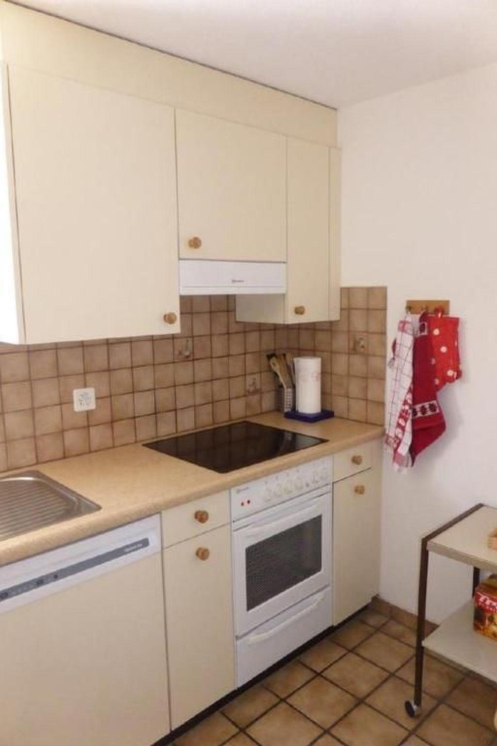 Cosy, comfortable and panoramic 3.5-room holiday flat with garden. Non-smoking flat. Only approx. 3 minutes walk to the railway/bus station. In a quiet, sunny location in a block of flats. Total living area approx. 70m2. Lockable underground car park. Private garden seating area with garden chairs and sun blinds. Shared use of pavilion, garden furniture, barbecue and swing for children. Cosily furnished living/dining room with radio, Swisscom TV, W-LAN and direct access to the terrace. Well-equipped kitchen with dishwasher, 4 hobs, oven, fridge with freezer compartment, espresso machine and a Tassimo capsule machine, kettle, toaster, blender, cheese and fondue set, grill and raclette set etc..