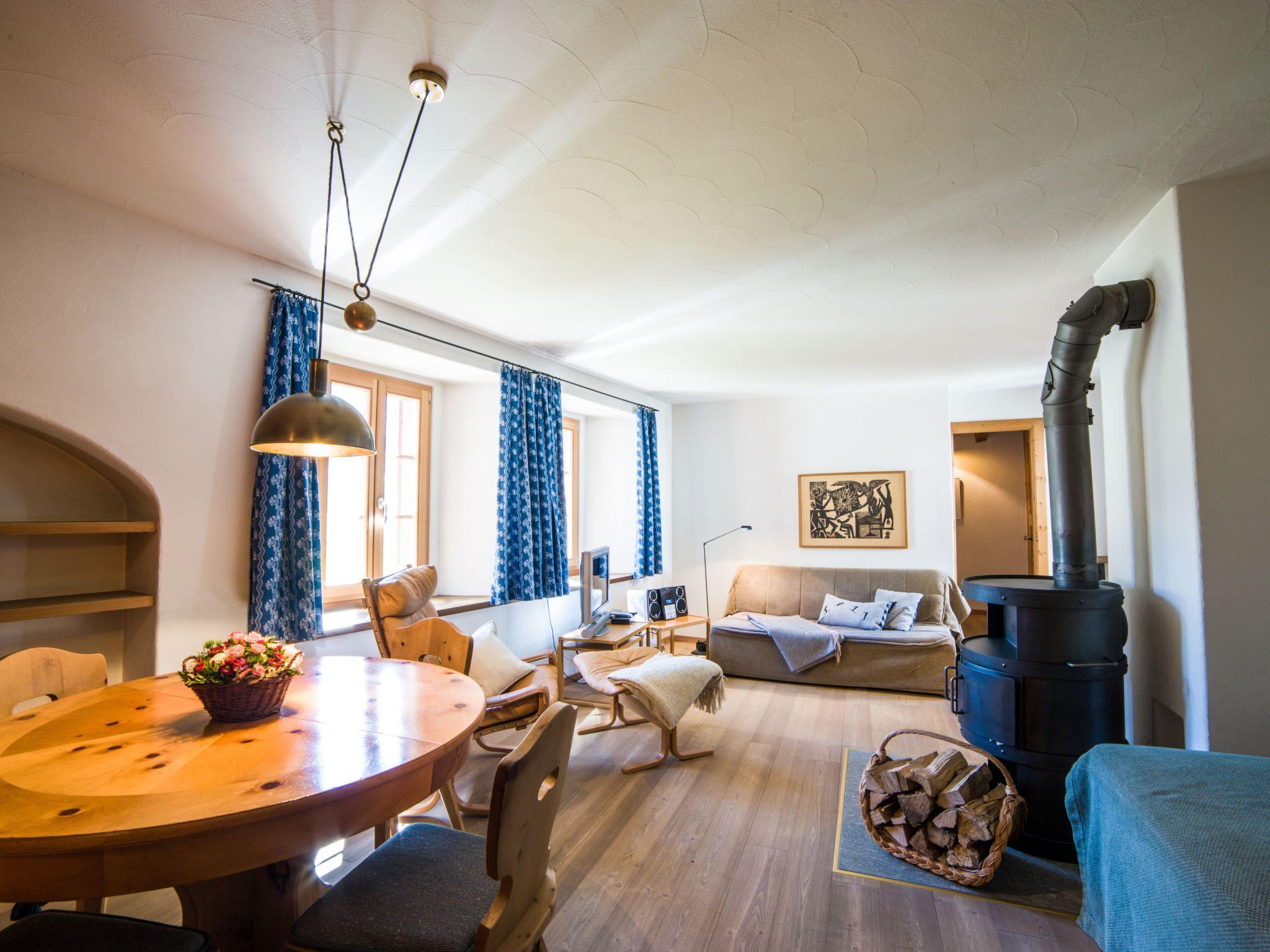 Maximum 3 pets/ dogs allowed. The Chesa Michel from 1786 is a listed Engadine house in the village center of Bever. The combined apartment Roseg %26 Nair (83 m2) can accommodate up to 6 people. Two connected units with open kitchen-living room, Swedish stove, several sleeping areas and two bathrooms offer a lot of flexibility. Underfloor heating, fast Wi-Fi, parking available and good public transport connection. Ideal for families or groups.