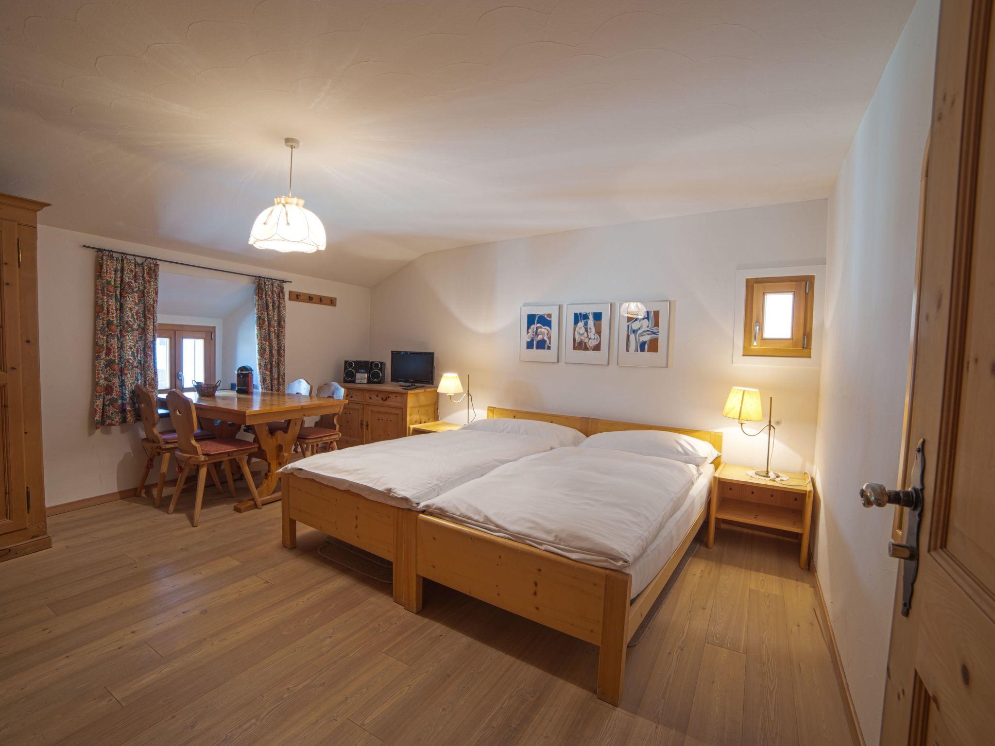 The combination of the 2½-room apartment Roseg (59 m2) and the Studio Nair (24 m2) is located on the 1st floor of the historic Chesa Michel and together offers a spacious home for up to 6 people. Both units are connected internally and furnished in the traditional Engadine style with pine and antique furniture.