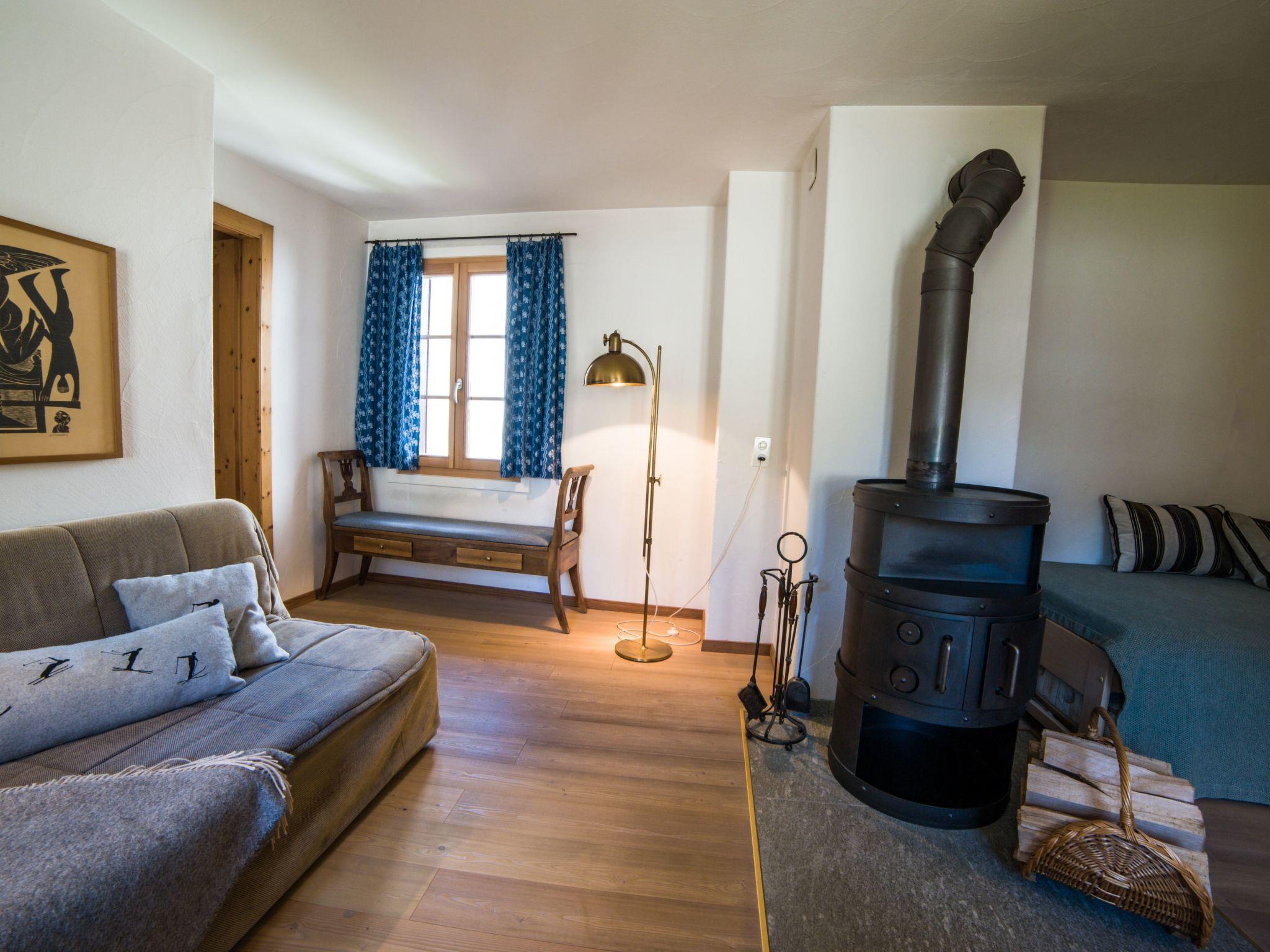 The combination is particularly suitable for families or groups who value time together and at the same time retreat opportunities. Parquet and floor slabs, underfloor heating and radiators ensure a pleasant indoor climate in both units. Historical photographs make reference to Bever and the Upper Engadin.