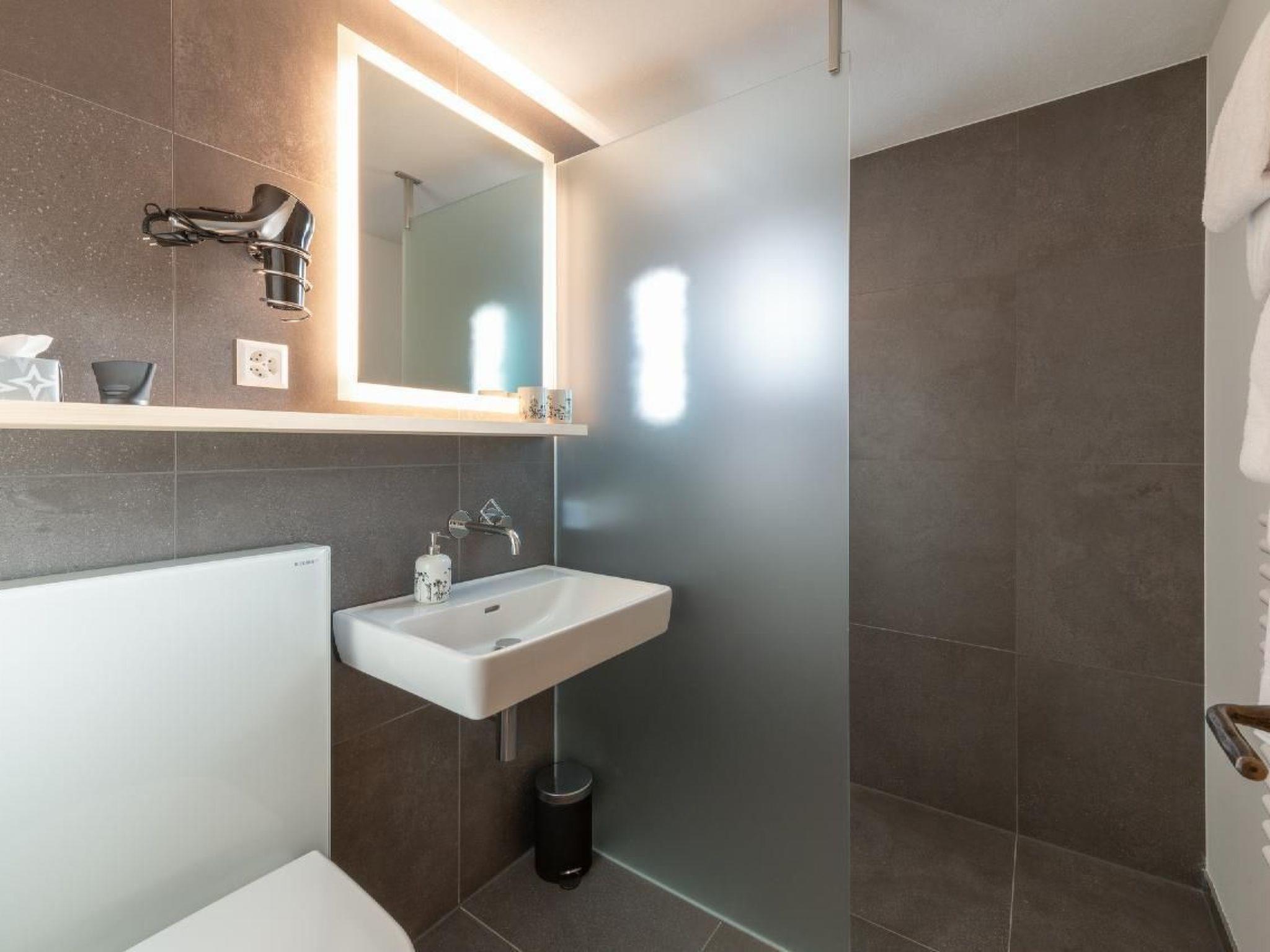 Inside, you will find amenities that will make your stay unforgettable. The kitchen, with a beautiful Swiss stone pine dining area, is fully equipped - including a fridge with freezer compartment, oven, dishwasher and a fully automatic coffee machine for whole beans. In the living room, a green sofa, a cosy reading chair and a TV invite you to relax. A cosy wooden floor harmoniously connects all the rooms, complemented by a bathroom with a walk-in rain shower that leaves nothing to be desired.
