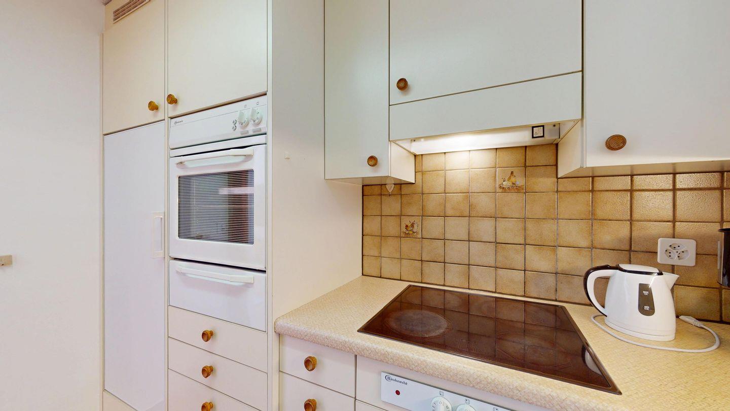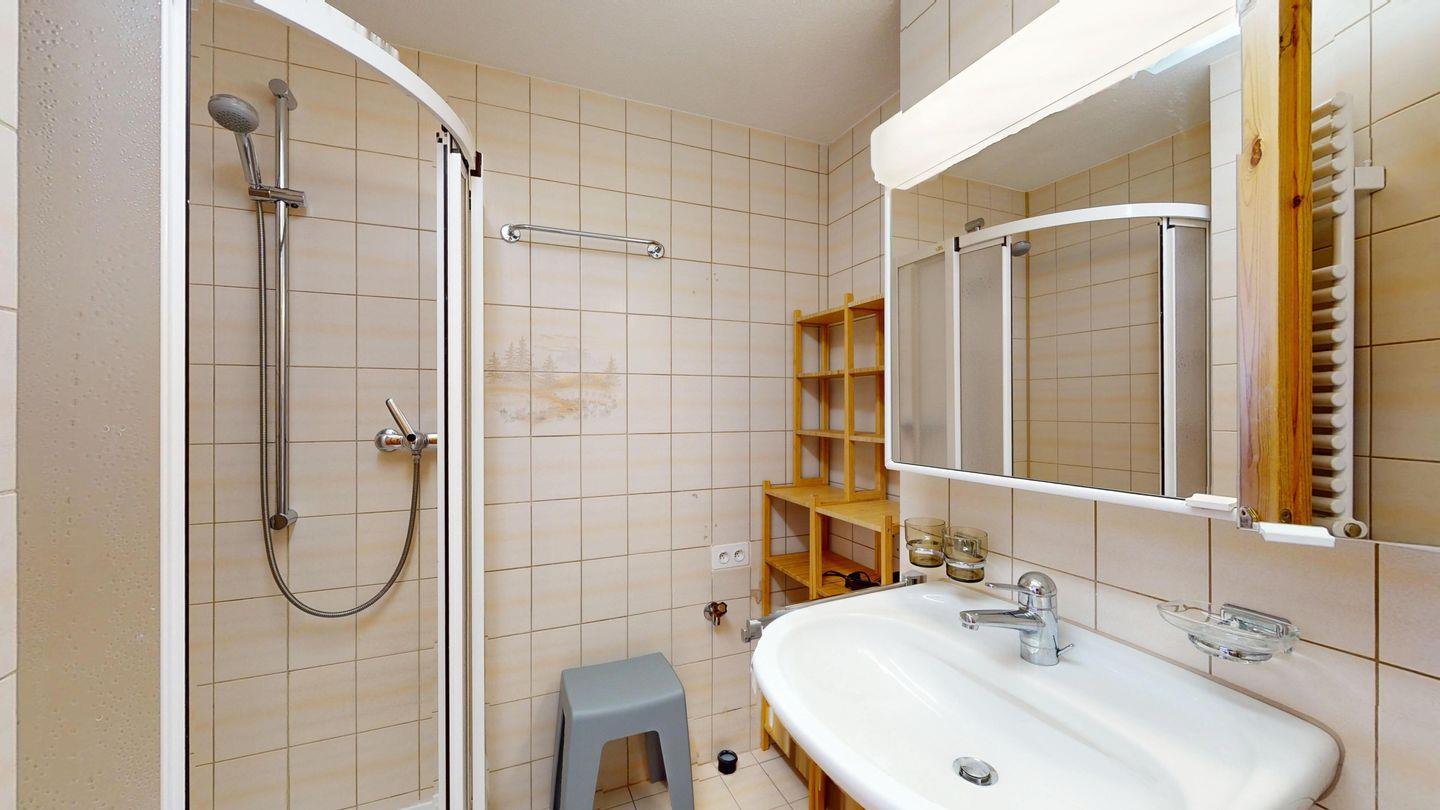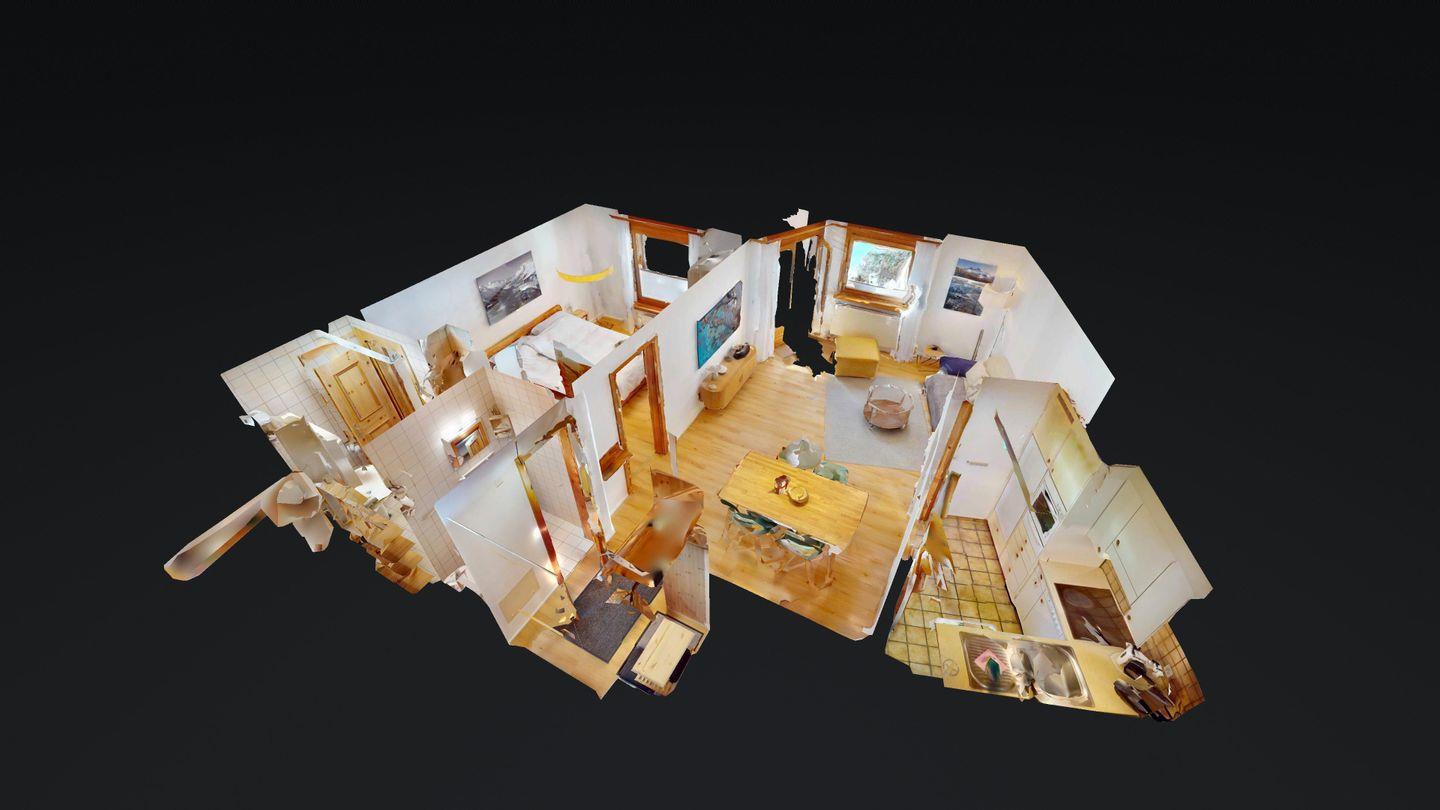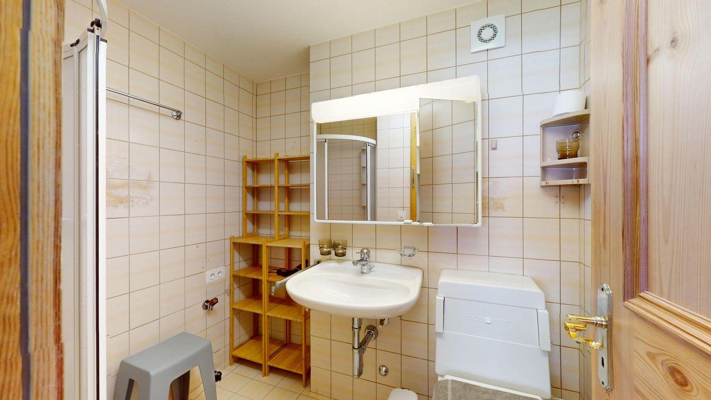 Helle 2-Zimmerwohnung im Erdgeschoss, 59 m², mit Wohn-/Esszimmer, Essecke, TV, Internet und sonniger Terrasse mit Bergblick. Geschlossene Küche mit Backofen und Geschirrspüler. Ein Doppelzimmer. Badezimmer mit Dusche/WC/Lavabo. Separates WC. Ein Garagenplatz. Haustiere sind erlaubt. Gemeinschaftlicher Skikeller und Waschküche.
