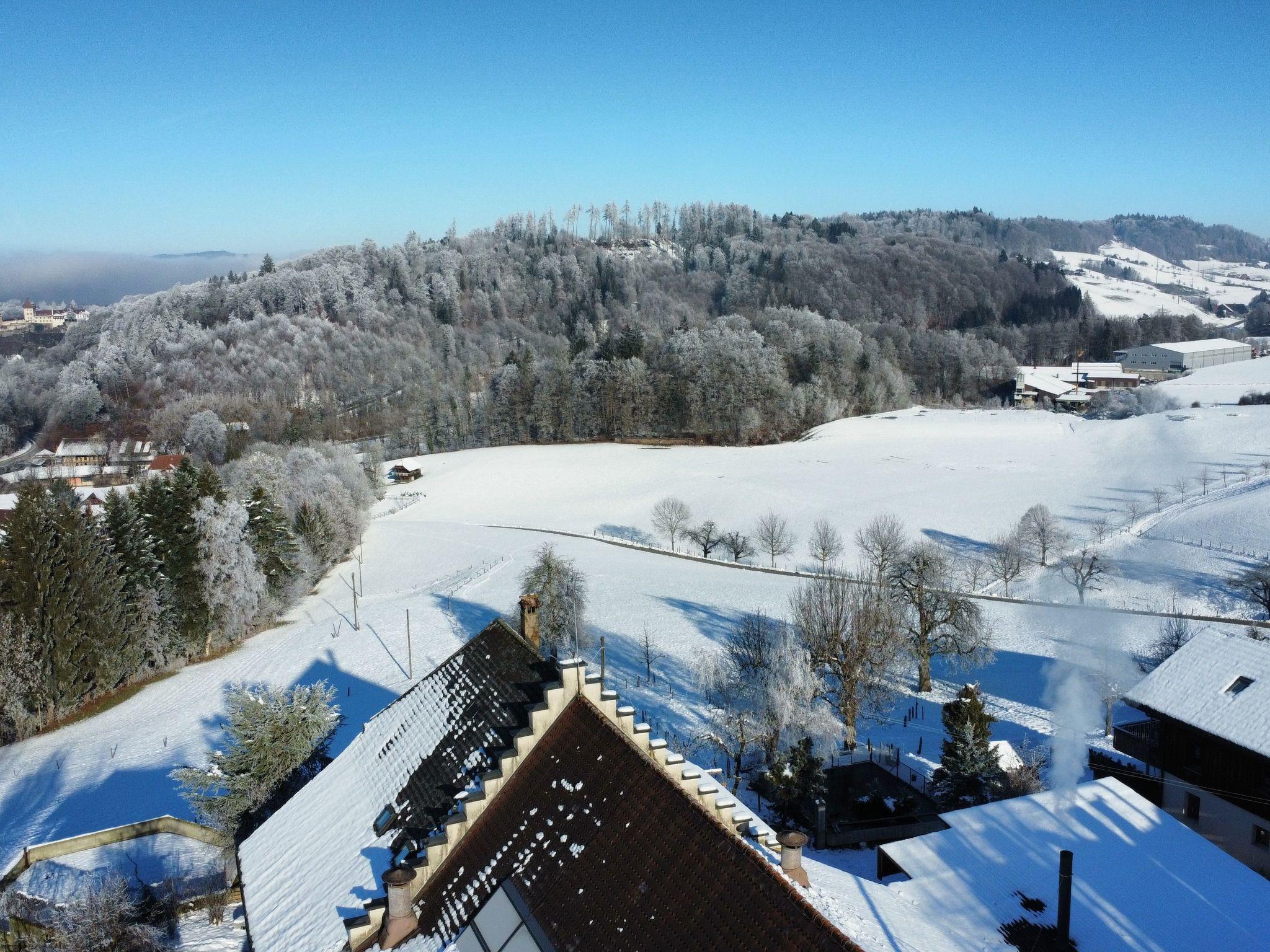 Discover the idyllic tranquillity and picturesque views of our 300-year-old sandstone farmhouse. Situated in a panoramic location, it offers an unrivalled view of the town of Burgdorf and the Jura mountains. Nestled in the traditional landscape, our farm offers a cosy 3½-room flat on the 2nd floor, perfect for a break in harmony with nature and the agricultural way of life.
