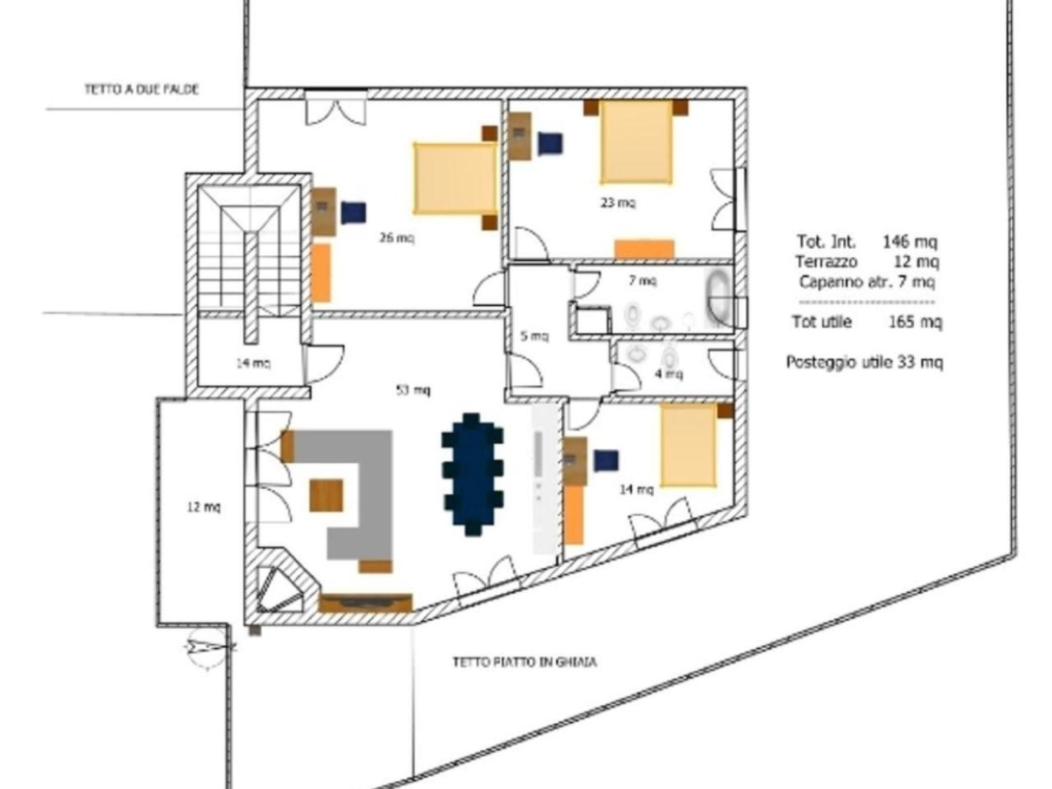 The 33 sqm reserved parking space can accommodate two or three cars (depending on the type of car) further parking spaces on request.