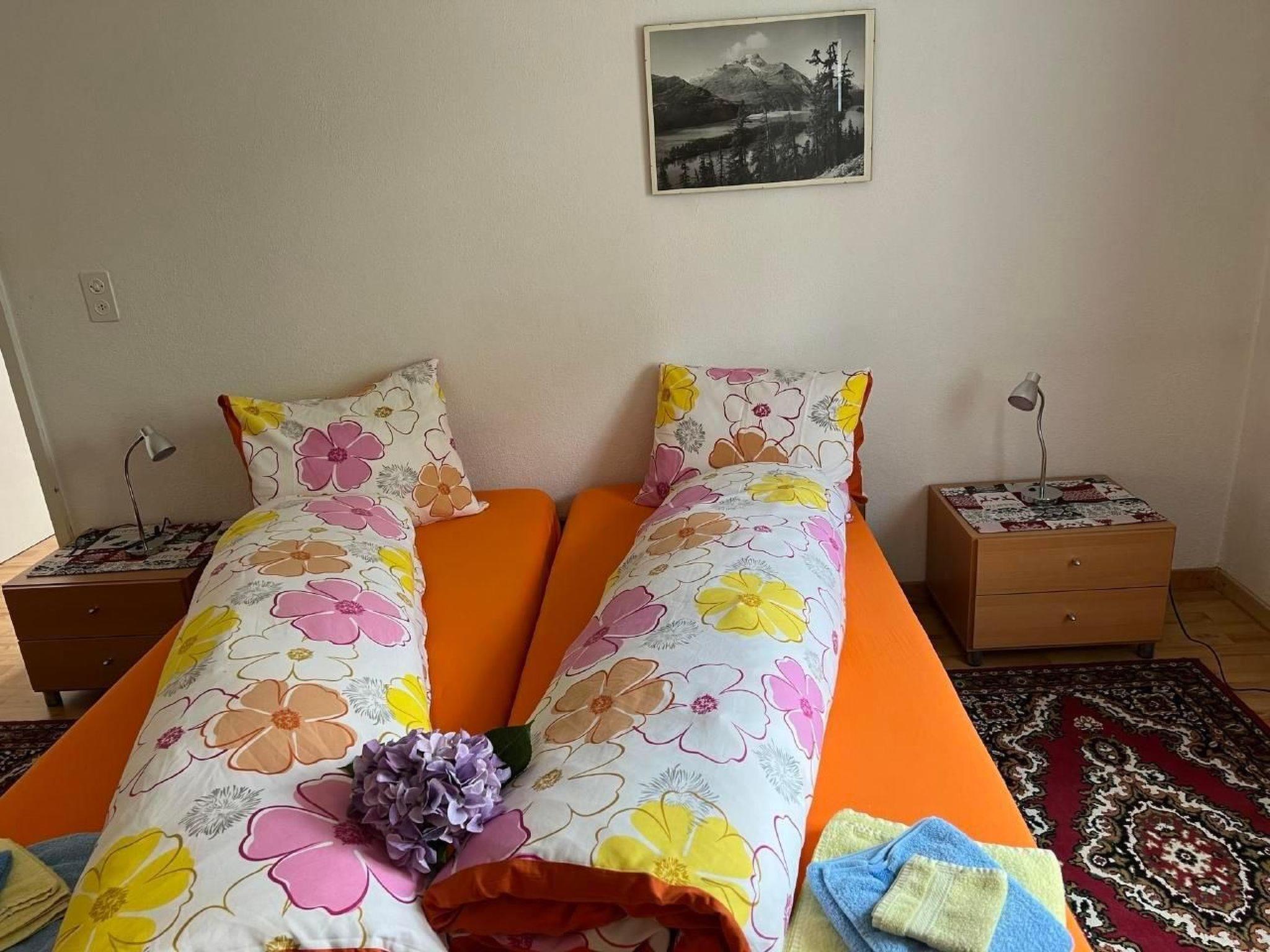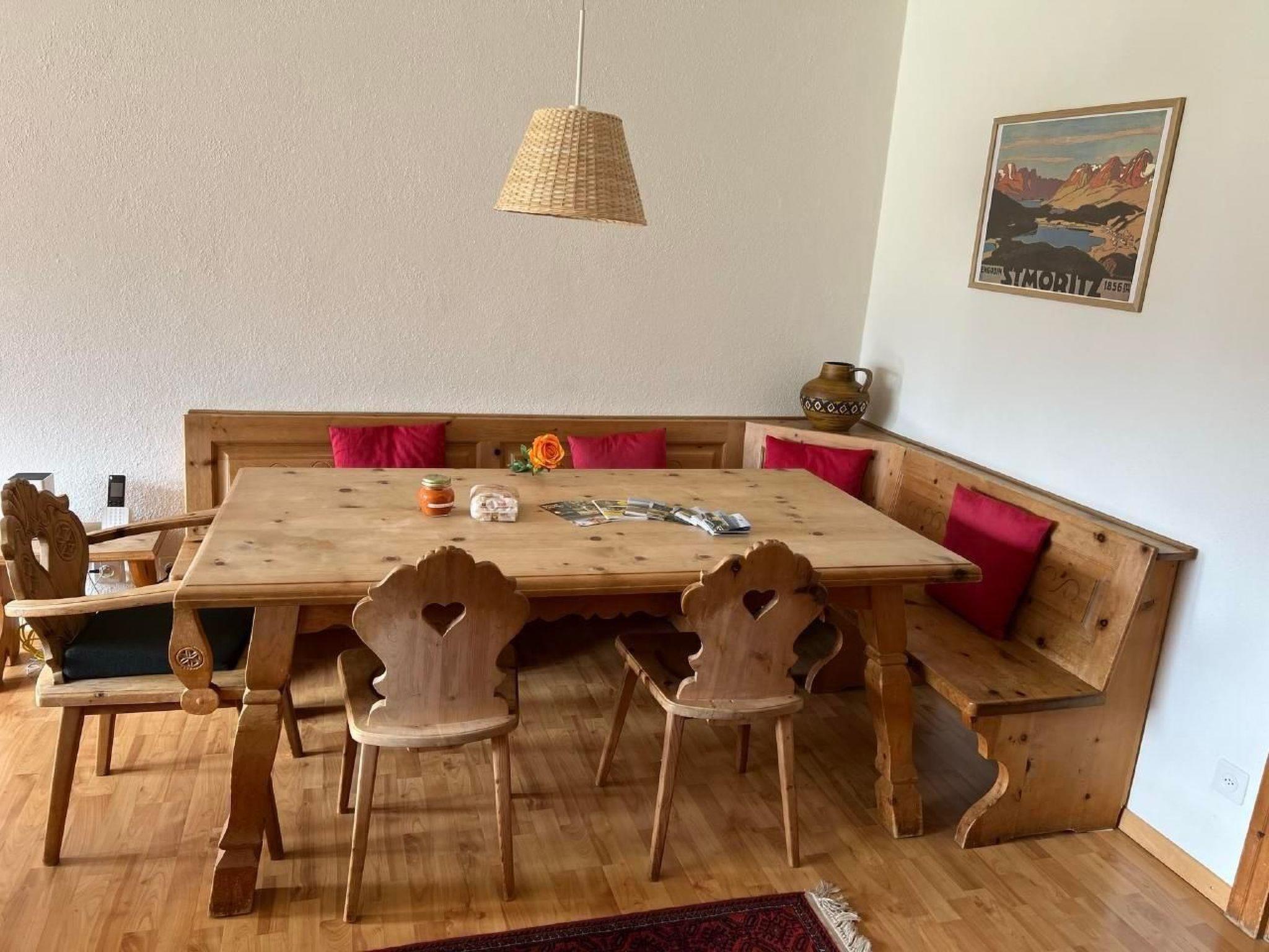 4-room apartment on the ground floor. 3 x 2 beds in 3 bedrooms. In 2 rooms 2 beds put together as a double bed, and in one room 2 single beds. All in Nordic equipment. The living room has direct access to the outdoor seating area with a beautiful view towards Celerina. Likewise, in the apartment it has Wi-Fi, satellite TV.The seating - dining area invites you to a cozy get-together. It has a bathroom with toilet, 2 washbasins and a bathtub, a small bathroom with toilet and washbasin. And a bathroom with a shower and washbasin. The apartment has a laminate floor. In the entrance area it has a stone floor.The kitchen is equipped with a dishwasher, Nespresso coffee machine, kettle and toaster are available. In about 5 minutes walk to the cable car Corviglia / Marguns and 10 minutes walk to the village, bus or ice rinkCenter da Sport, as well as to the cross-country ski trails.
