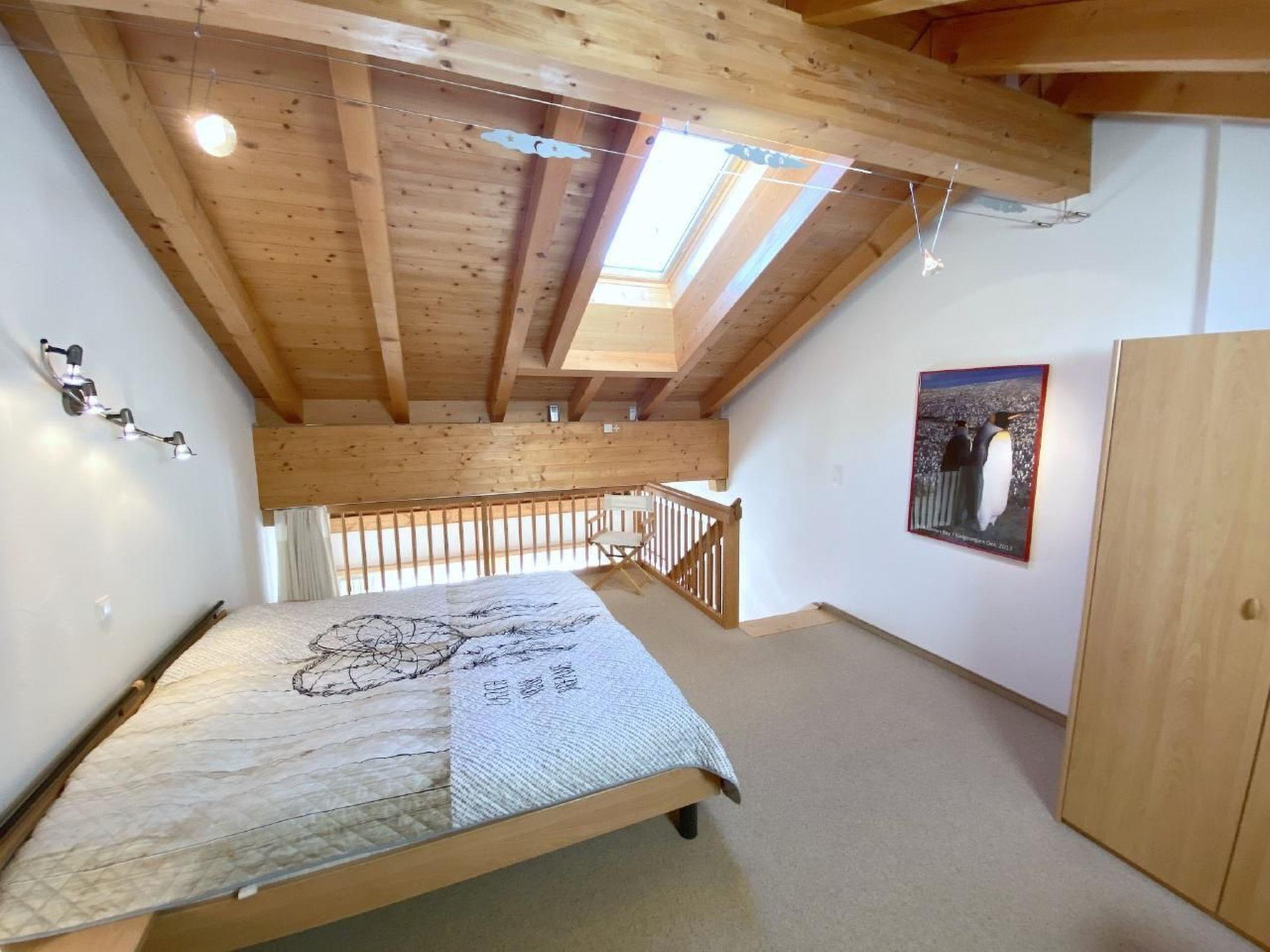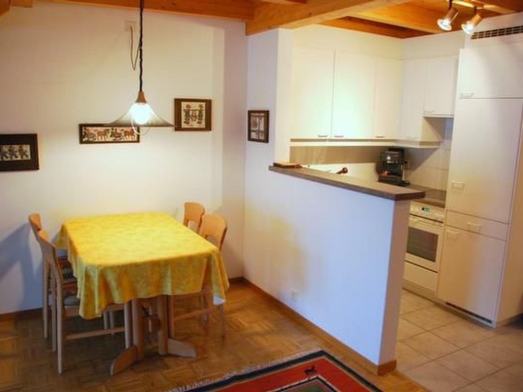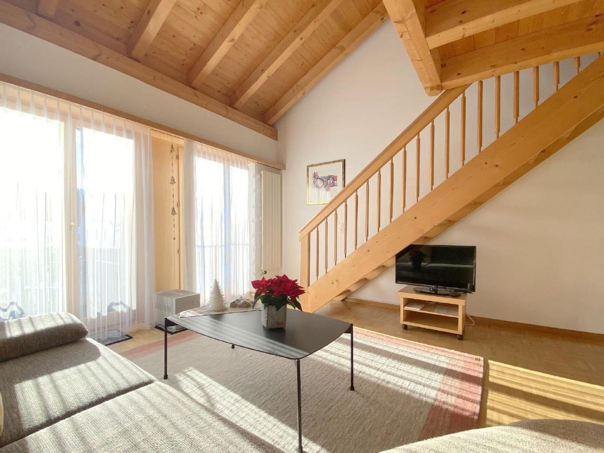 Bright, generously furnished penthouse flat on the 2nd floor (65m2). Quietly located with sunny balcony. The cosy living room with parquet floor is furnished with local spruce wood and a seating area. Large double bedroom with 2 single beds and spacious wardrobe on the gallery (carpeted floor) accessible via an internal staircase. The gallery has a skylight that can be opened in summer. The flat offers free WLAN and Swisscom TV. The flat also has a dining area and an open-plan kitchen with a generous inventory. The kitchen is separate and equipped with 4 hotplates, oven, microwave, dishwasher, fridge with freezer compartment and Nespresso coffee machine. In the entrance area (floorboards) there is an open wardrobe with cupboard. The bathroom has a shower with glass walls, WC and washbasin.