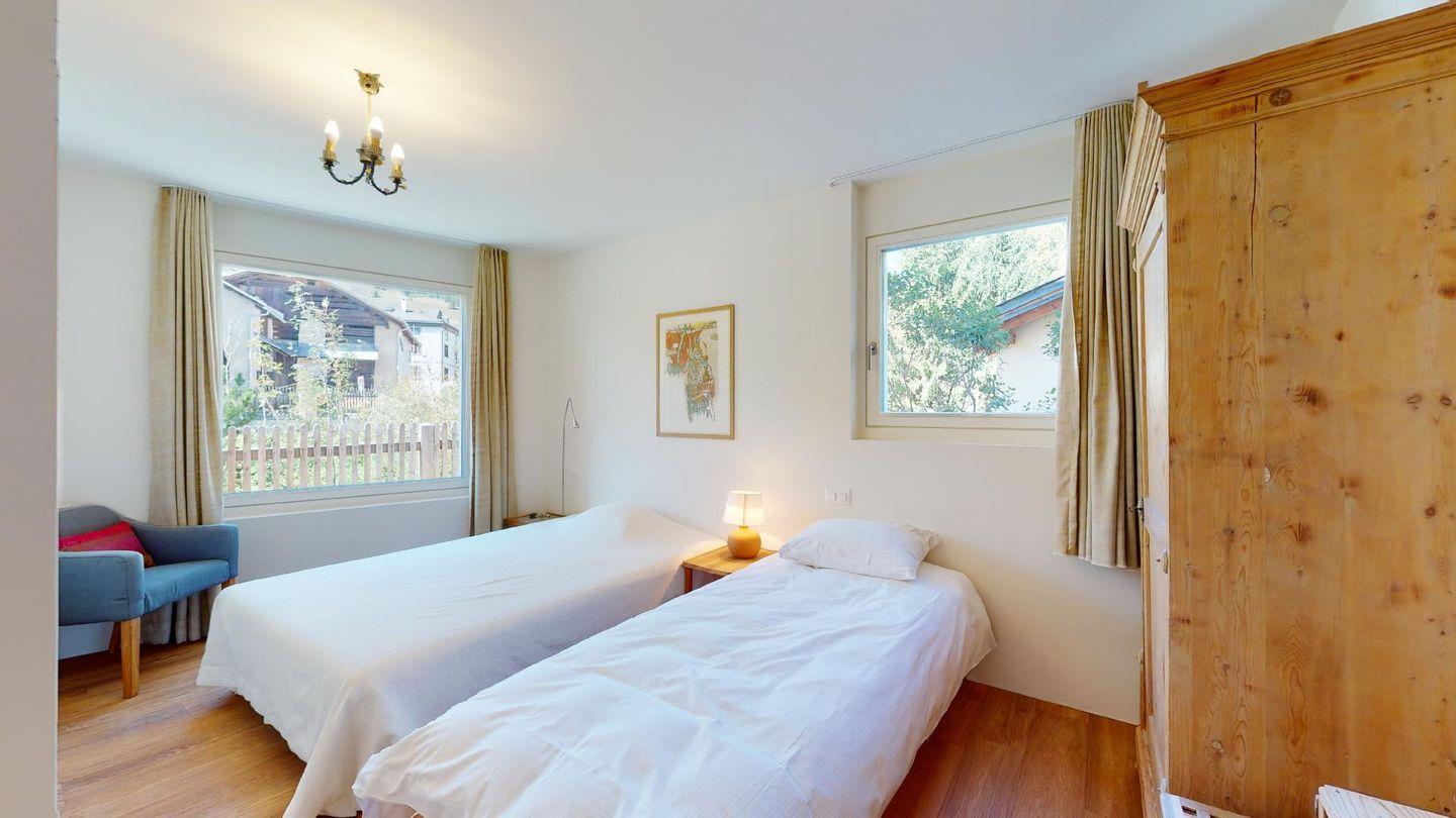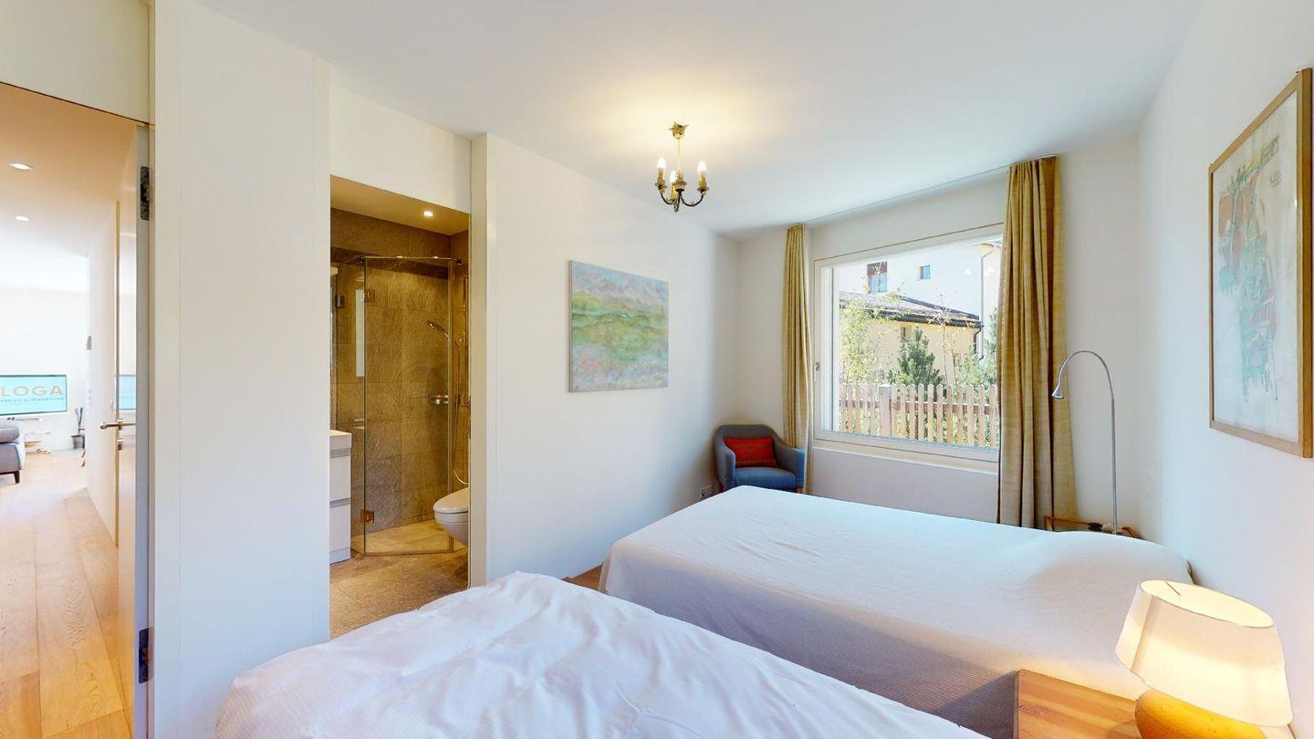 Eingang mit Garderobe. Grosses helles Wohnzimmer mit Schwedenofen, Ausgang auf die Terrasse mit schöner freien Aussicht auf die Berge, den Inn und die Kirche San Gian. TV und Internet. Offene Küche mit Backofen, Combisteam, Kühlschrank, Gefrierschrank, Geschirrspülmaschine, Kaffeemaschine Chicco d'Oro. Essecke mit Aussicht. Ein Doppelzimmer mit 2 Einzelbetten und eigenem Bad mit Badewanne/WC/Lavabo. Ein Zimmer mit Queensizebett (140/200) und eigenem Bad mit Dusche/WC/Lavabo. Ein Garagenplatz (E-Ladestation gegen Aufpreis vorhanden). Waschküche und Skiraum zur Mitbenutzung. Haustiere sind nicht erlaubt. Nichtraucher Wohnung.