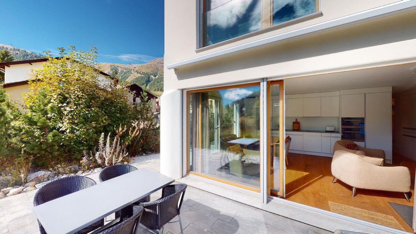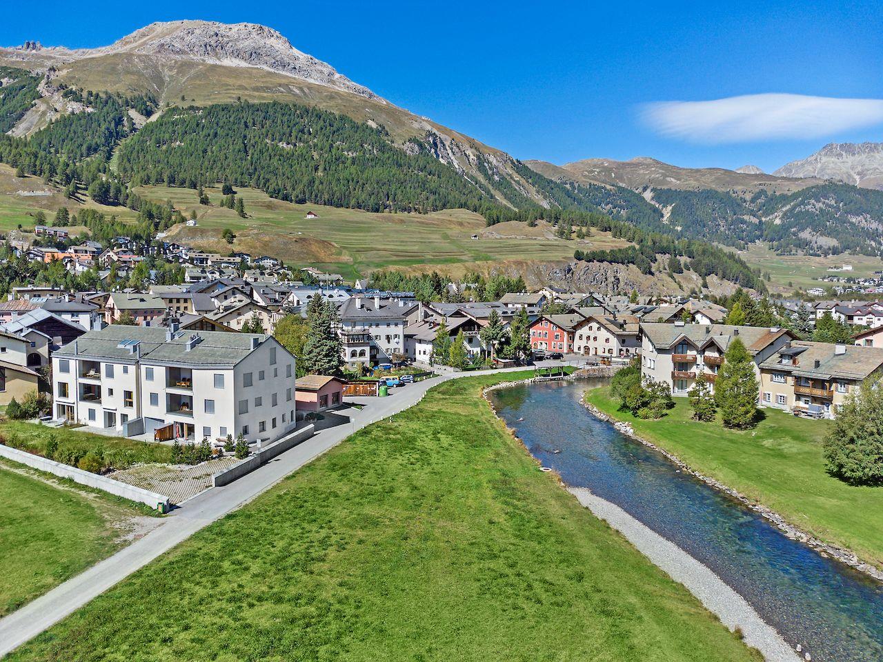 Neubau-Wohnung an idyllischer Lage direkt am Inn mit Aussicht. Post und Bahnhof sind ca. 200m entfernt. Die Bergbahn Saluver/Marguns ist ca. 500m entfernt und mit dem gratis Sportbus erreichbar. Die Langlaufloipen befinden sich vor dem Haus.