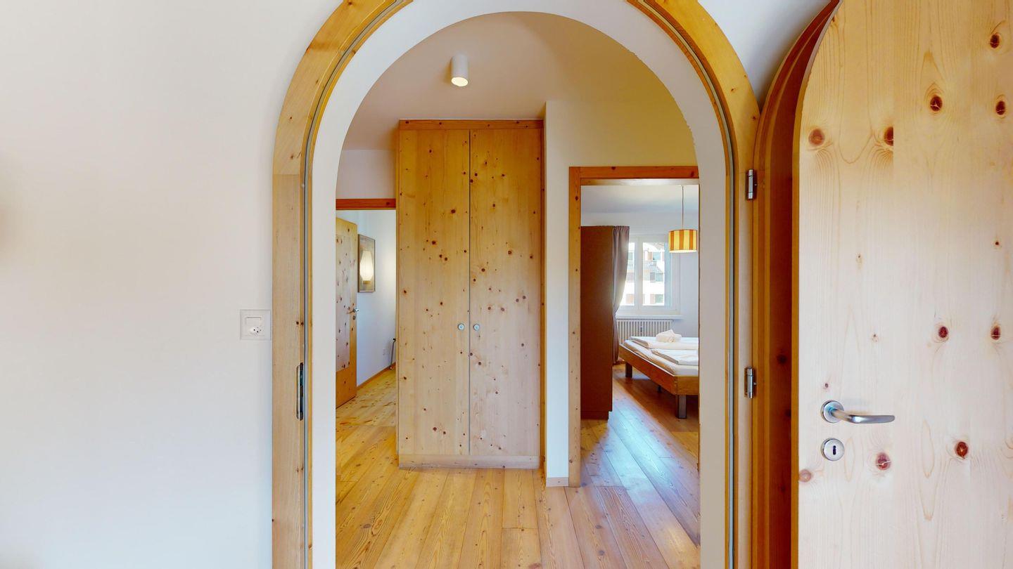 Die 3-Zimmerwohnung im Dachgeschoss, ca. 50 m², wurde Anfangs 2024 gänzlich umgebaut und renoviert. Eingang mit Garderobe. Wohnzimmer mit Südbalkon und offener Küche mit Herd, Combi-Mikrowelle, Geschirrspülmaschine, Chicco d'Oro Kaffeemaschine und Kühlschrank. Ein Schlafzimmer mit Doppelbett. Ein Schlafzimmer mit Etagenbett. Bad, WC und Lavabo. Internet und TV. Einfache Einrichtung. Garagenplatz (enge Einfahrt). Waschküche zur Mitbenützung. Haustiere sind nicht erlaubt.