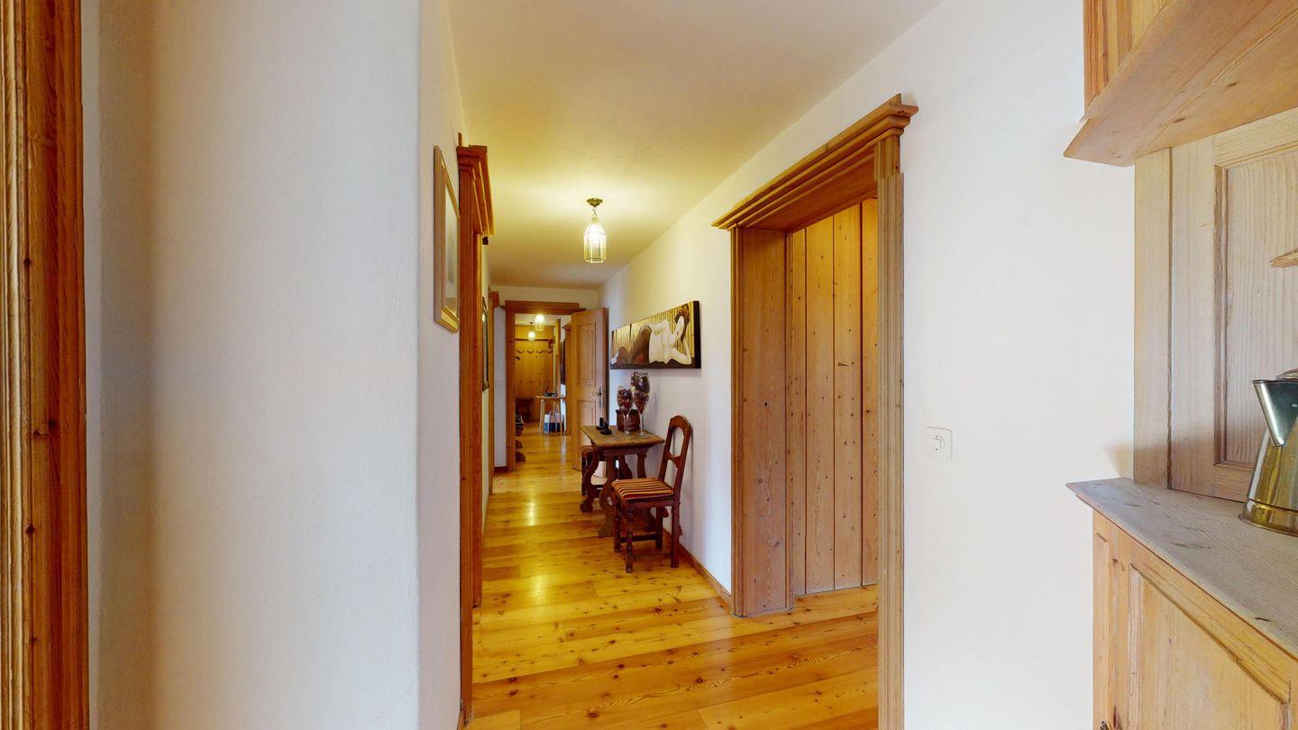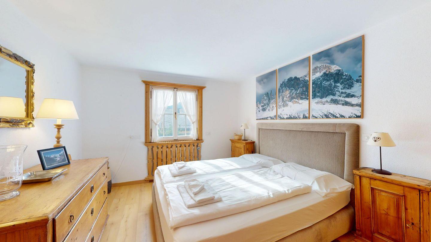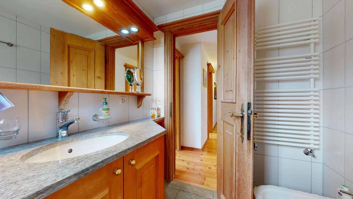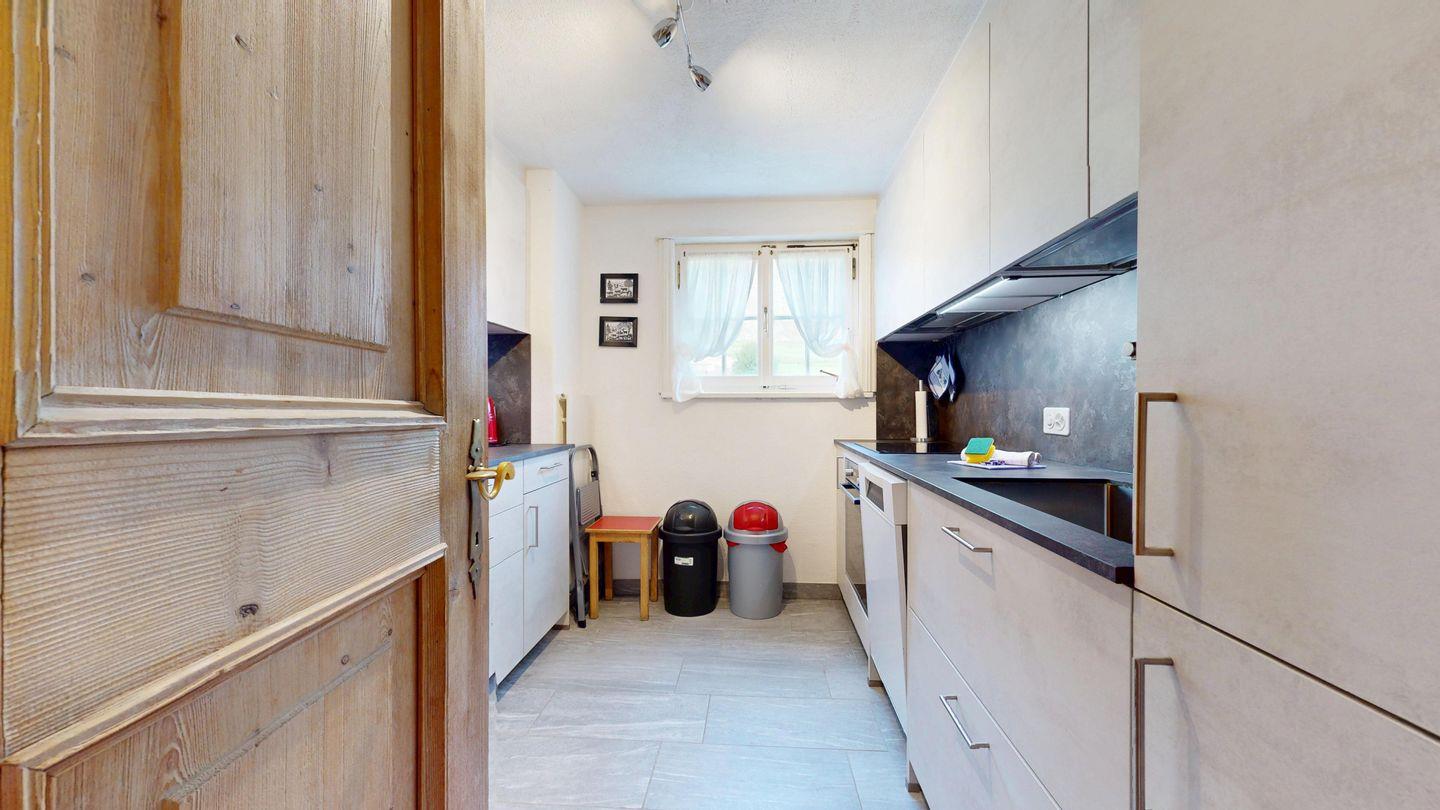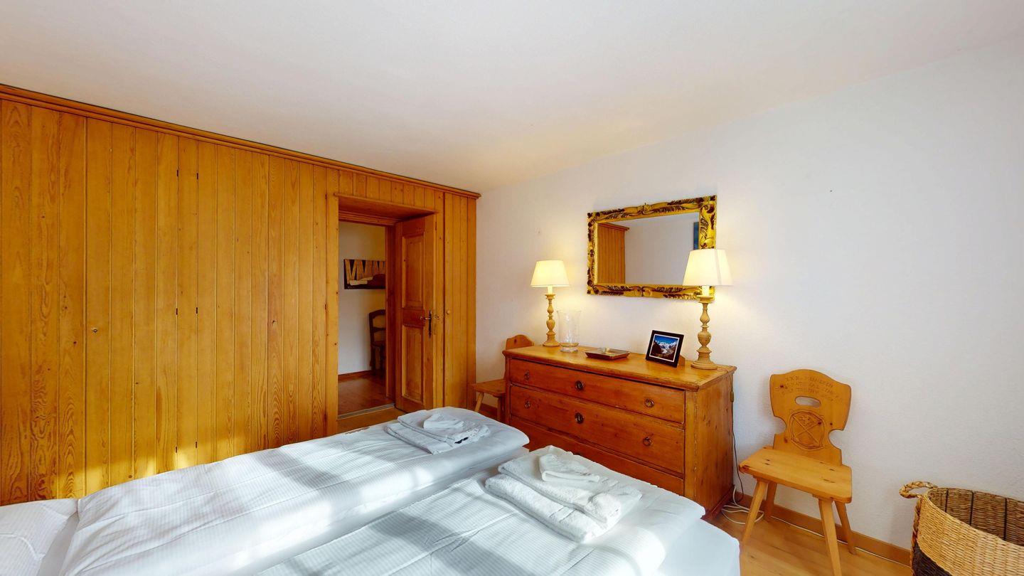 6-Zimmerwohnung im Erdgeschoss. Entree mit Garderobe. Wohn-/ Esszimmer mit Terrasse und Bergsicht, separate Küche mit Backofen, Kühlschrank, Chicco d'Oro Kaffeemaschine und Geschirrspülmaschine. Zwei Schlafzimmer mit je einem Doppelbett. Zwei Zimmer mit je zwei Einzelbetten. Ein Zimmer mit zwei Kinderbetten. Drei Badezimmer mit Badewanne/WC/Lavabo. TV und Internet. Holzböden im Schlaf- und Wohnzimmer. Garagenbox für ein Fahrzeug. Garage für ein Fahrzeug. Aussenparkplatz vor der Box. Ski und Skischuhe können im Skiraum oder in der Garage deponiert werden. Nichtraucherwohnung. Haustiere sind nicht erlaubt.